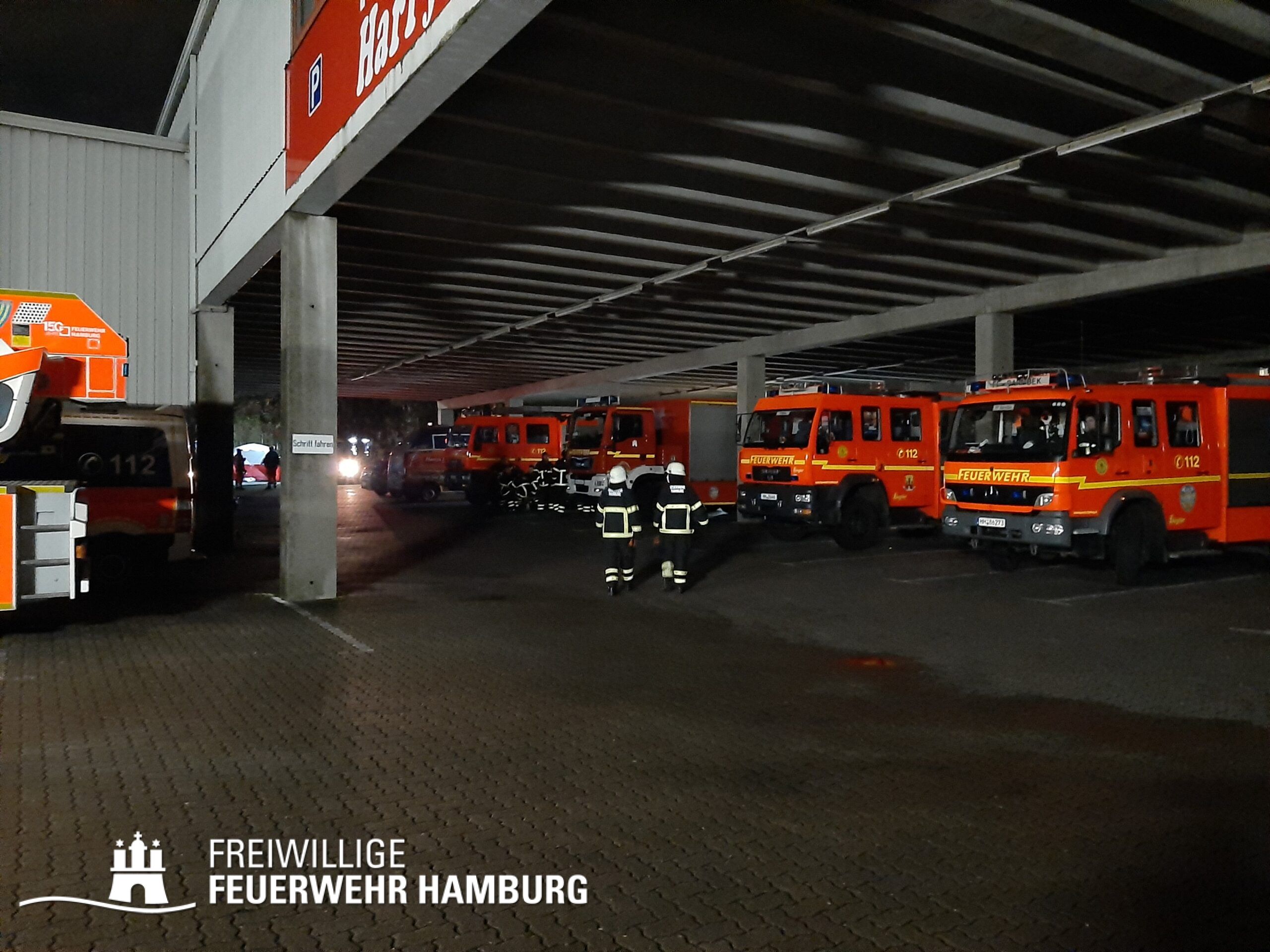 Bei diesem Einsatz waren 13 Einheiten und verschiedene Führungskräfte der Freiwilligen Feuerwehr im Einsatz für Hamburg.