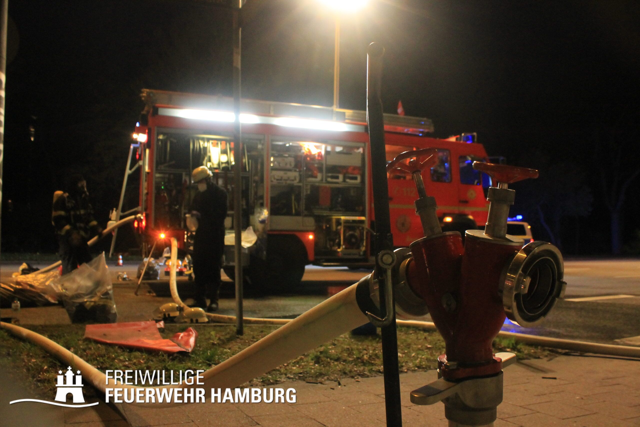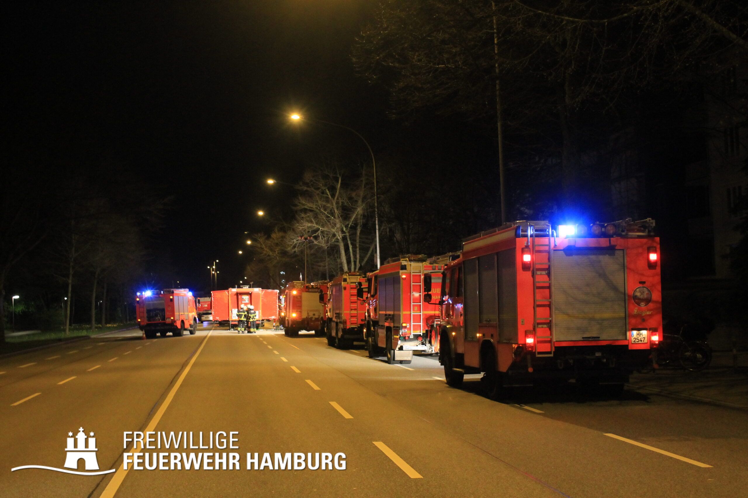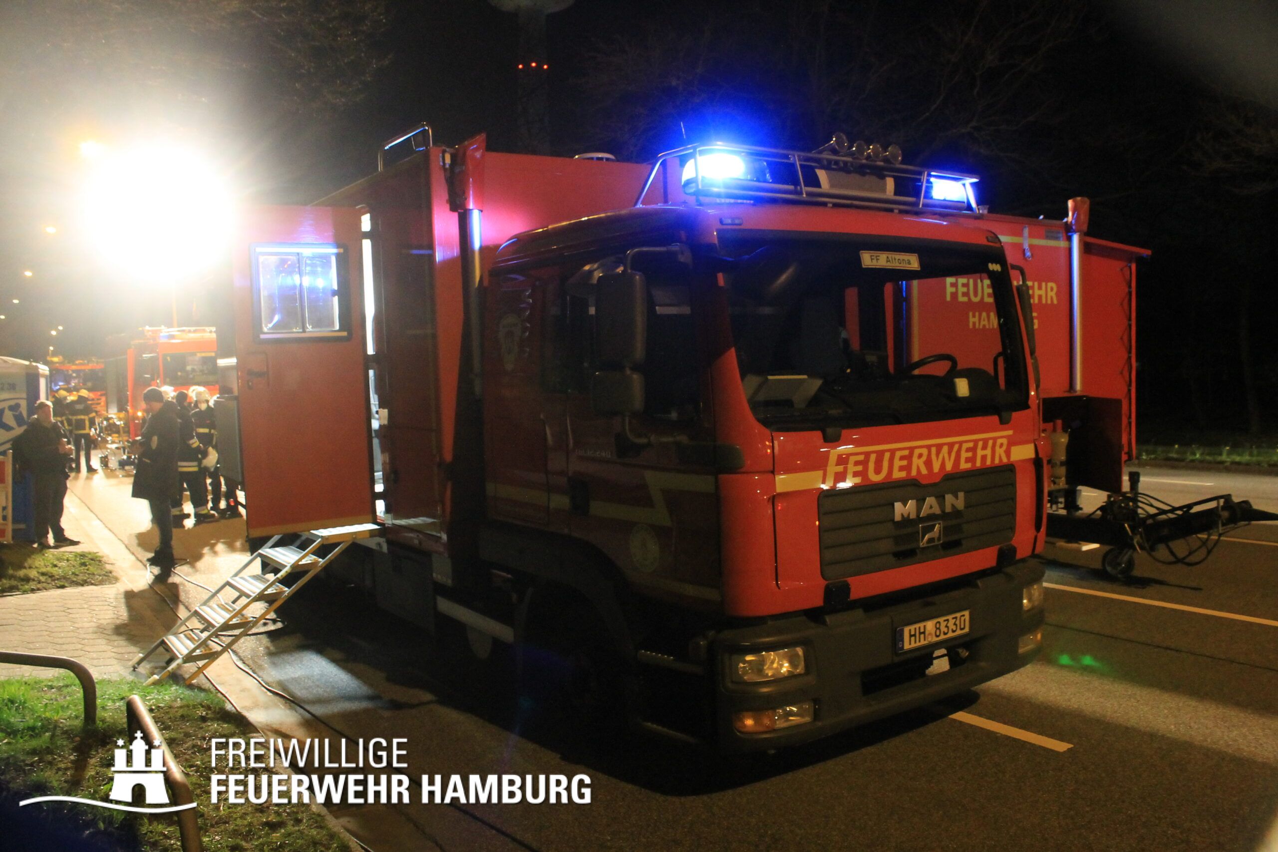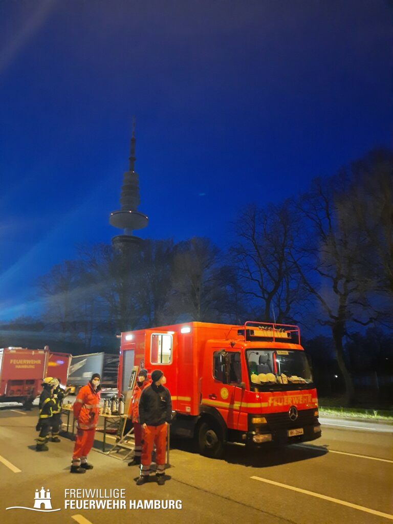 Neben dem Bereichsführer Eimsbüttel, welche für die Kräftekoordinierung seitens der Freiwilligen Feuerwehr vor Ort war, unterstützte die FF Altona mit ihrem Personal sowie dem GW-FM und dem Anhänger Führung und Lage.
