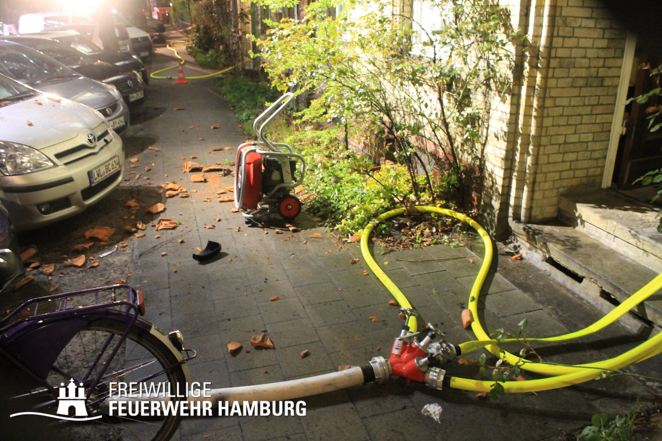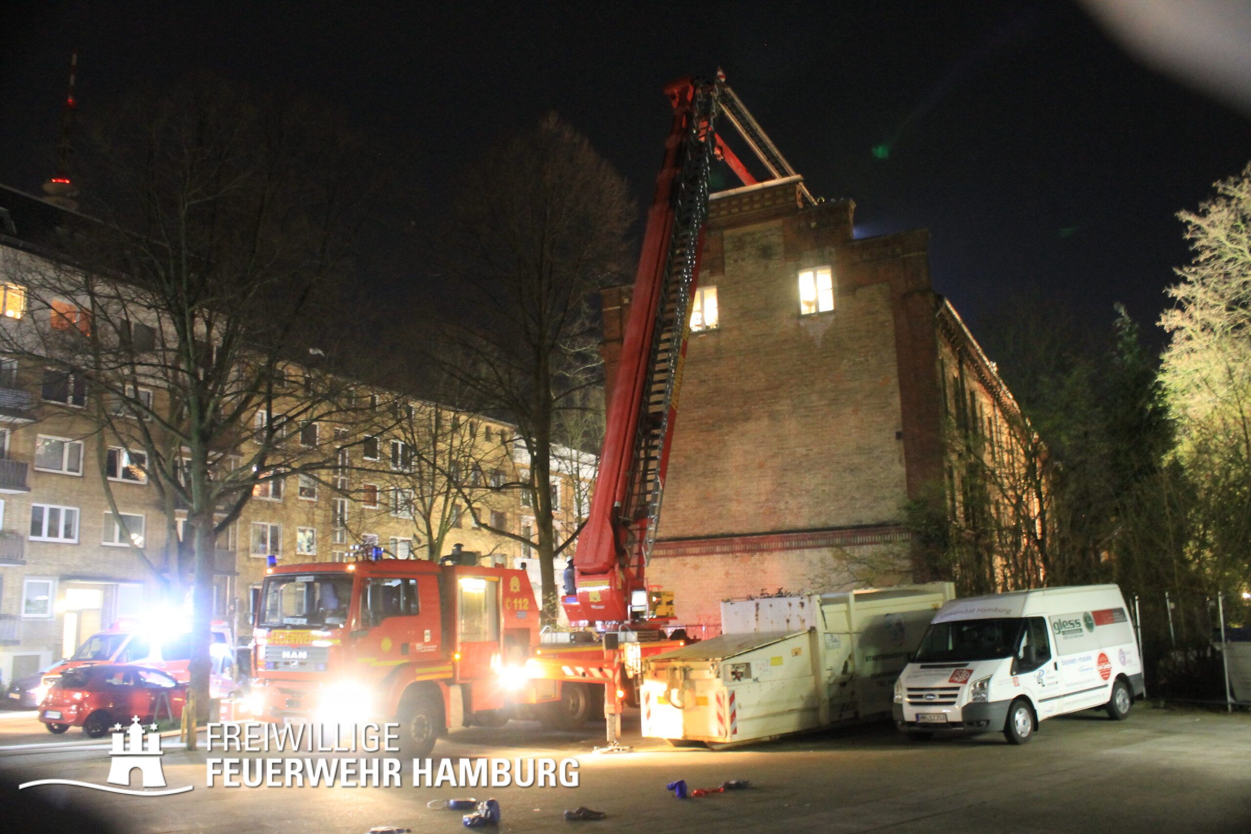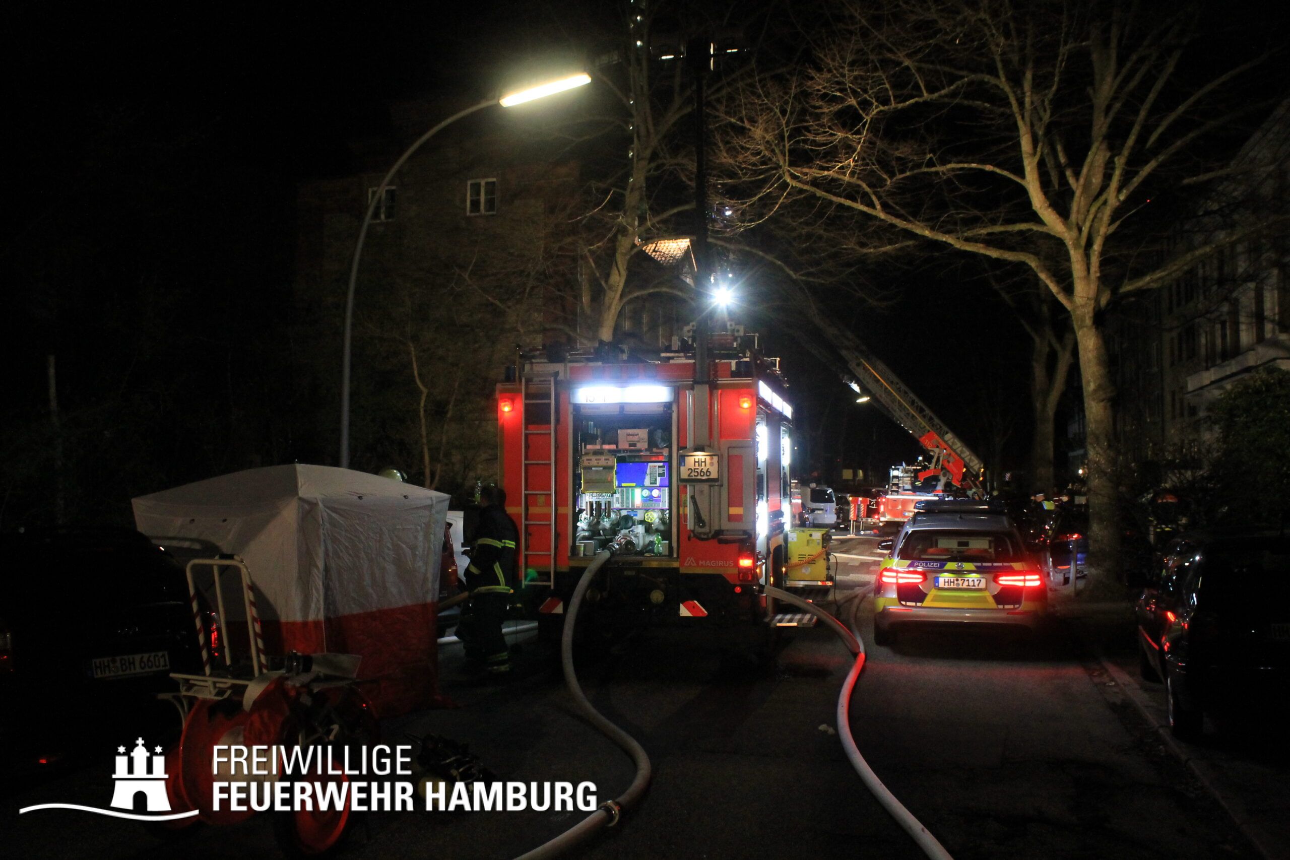 Neben dem Bereichsführer Eimsbüttel, welche für die Kräftekoordinierung seitens der Freiwilligen Feuerwehr vor Ort war, unterstützte die FF Altona mit ihrem Personal sowie dem GW-FM und dem Anhänger Führung und Lage.