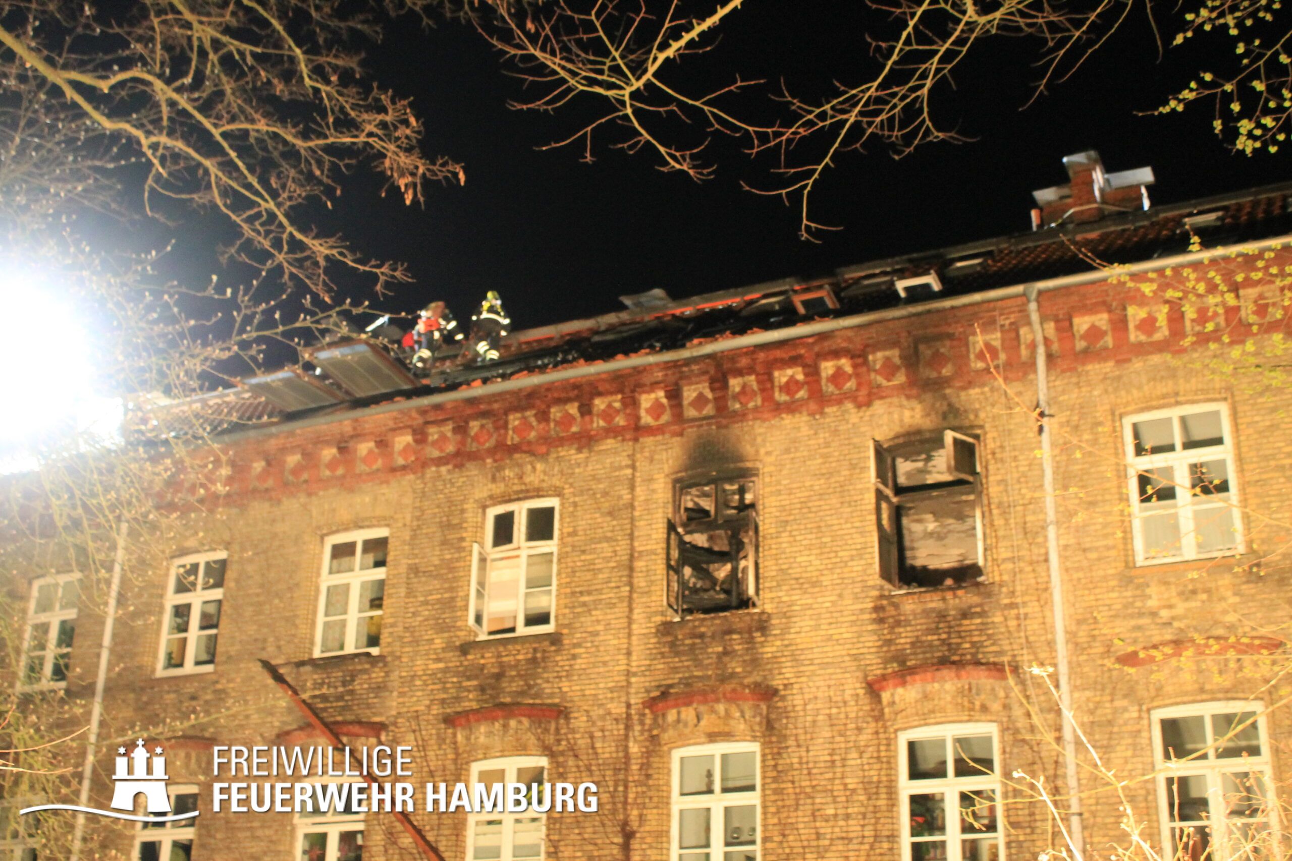 Feuerwehr Hamburg rettet acht Menschen. Ein Mann verstirbt bei Wohnungsbrand, der auf den Dachstuhl des historischen Gebäudes übergreift.