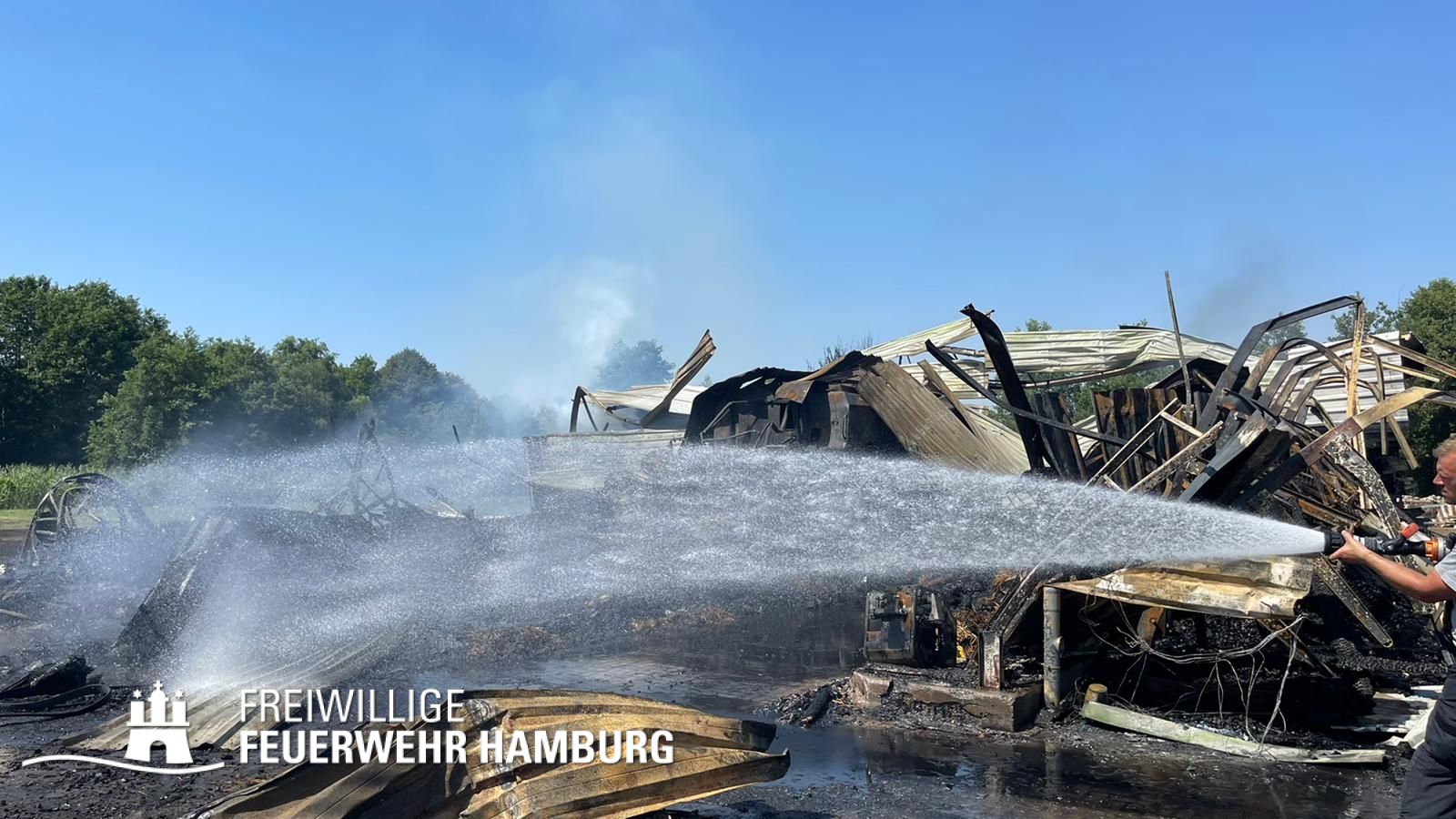 Am Vormittag des 20.07.2022, einem heißen Sommertag, kam es in Altengamme zum Brand eines Reifenstapels, der sich auf eine Halle mit verschiedenen maschinellen Arbeitsgeräten und Bauutensilien ausbreitete. Zusammen mit der Berufsfeuerwehr waren zwölf freiwillige Feuerwehren sowie Führungskräfte der FF im Einsatz für Hamburg.