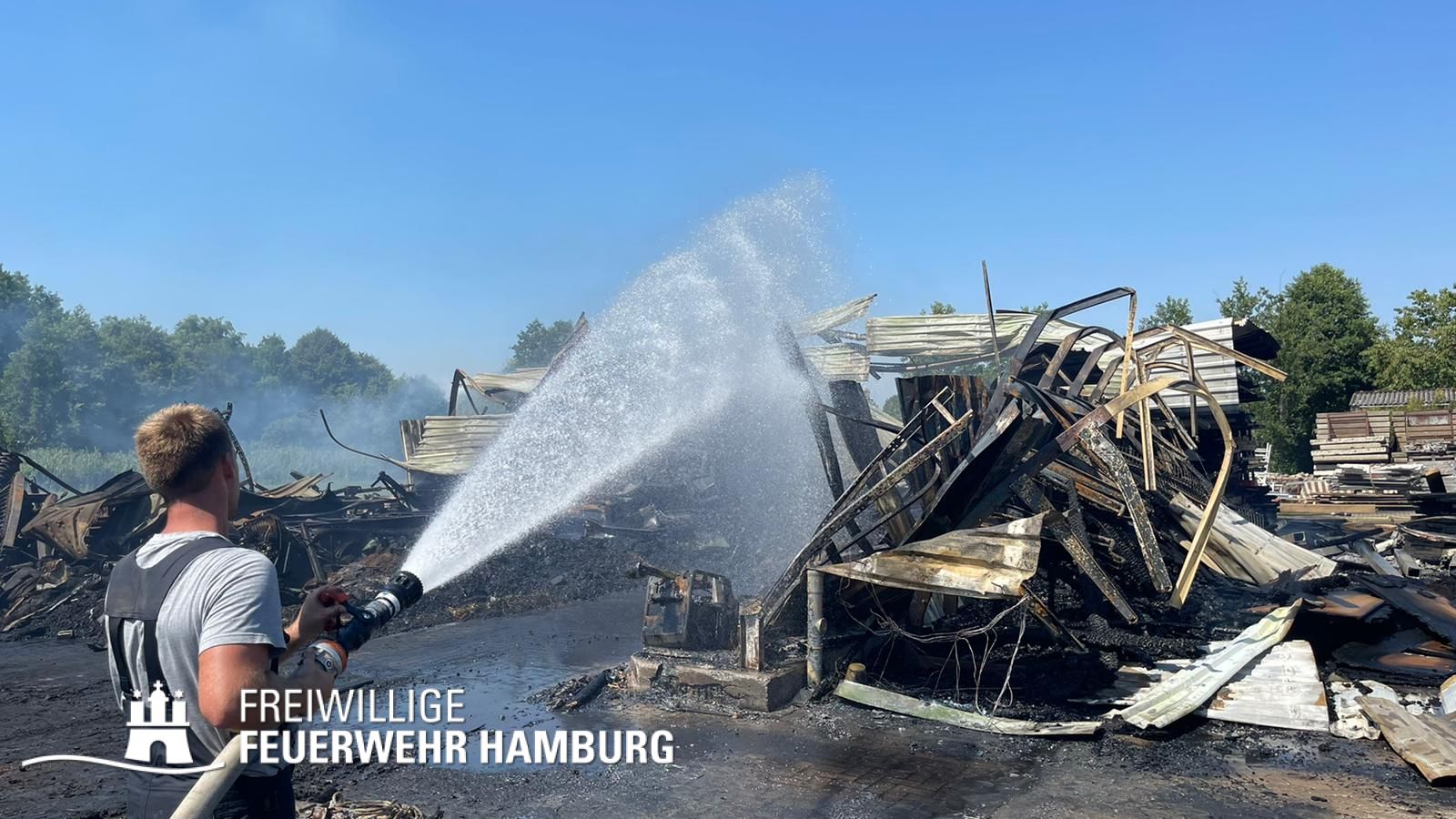 Hallenbrand – 3. Alarm bei 40°C Hitze fordert Feuerwehr alles ab