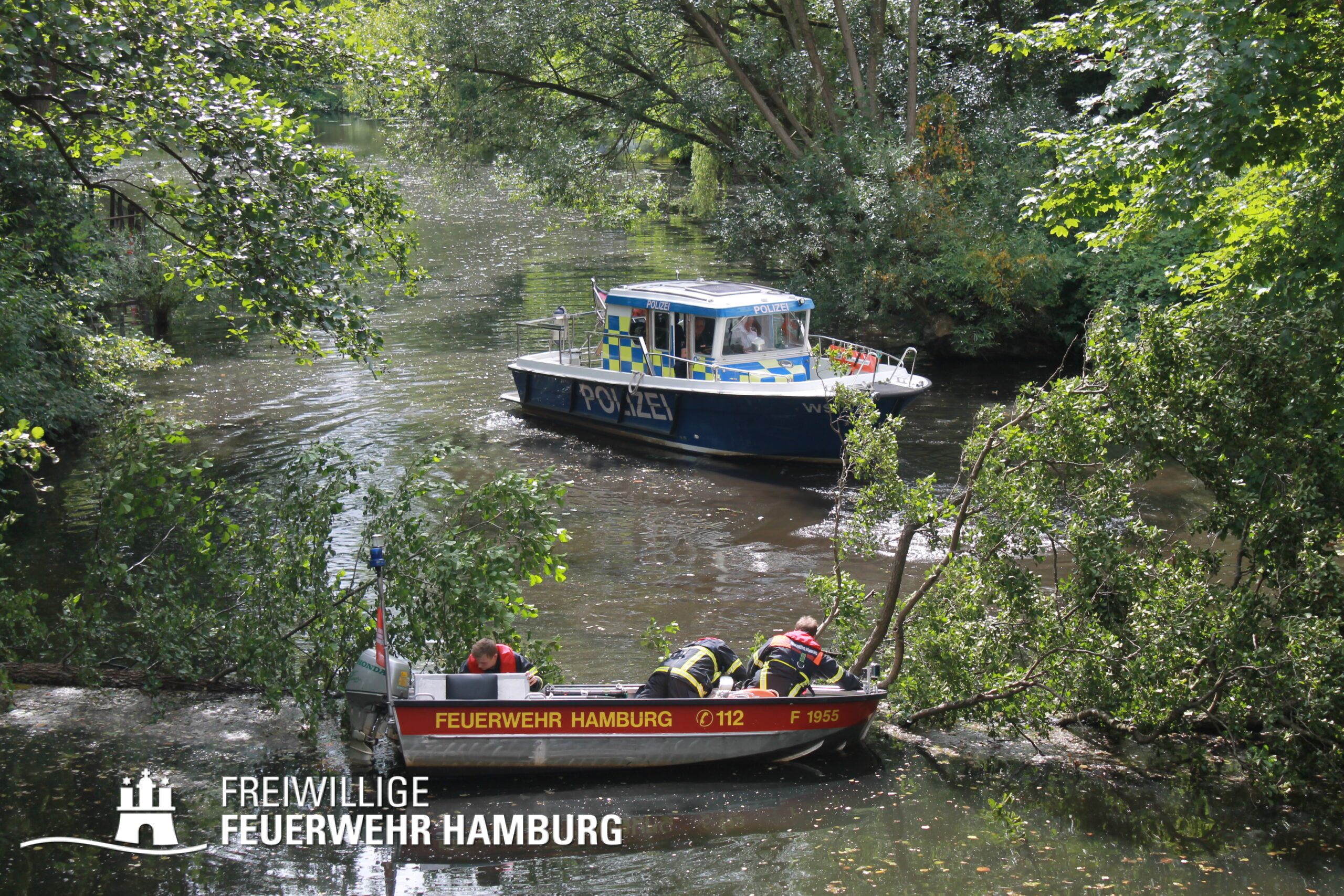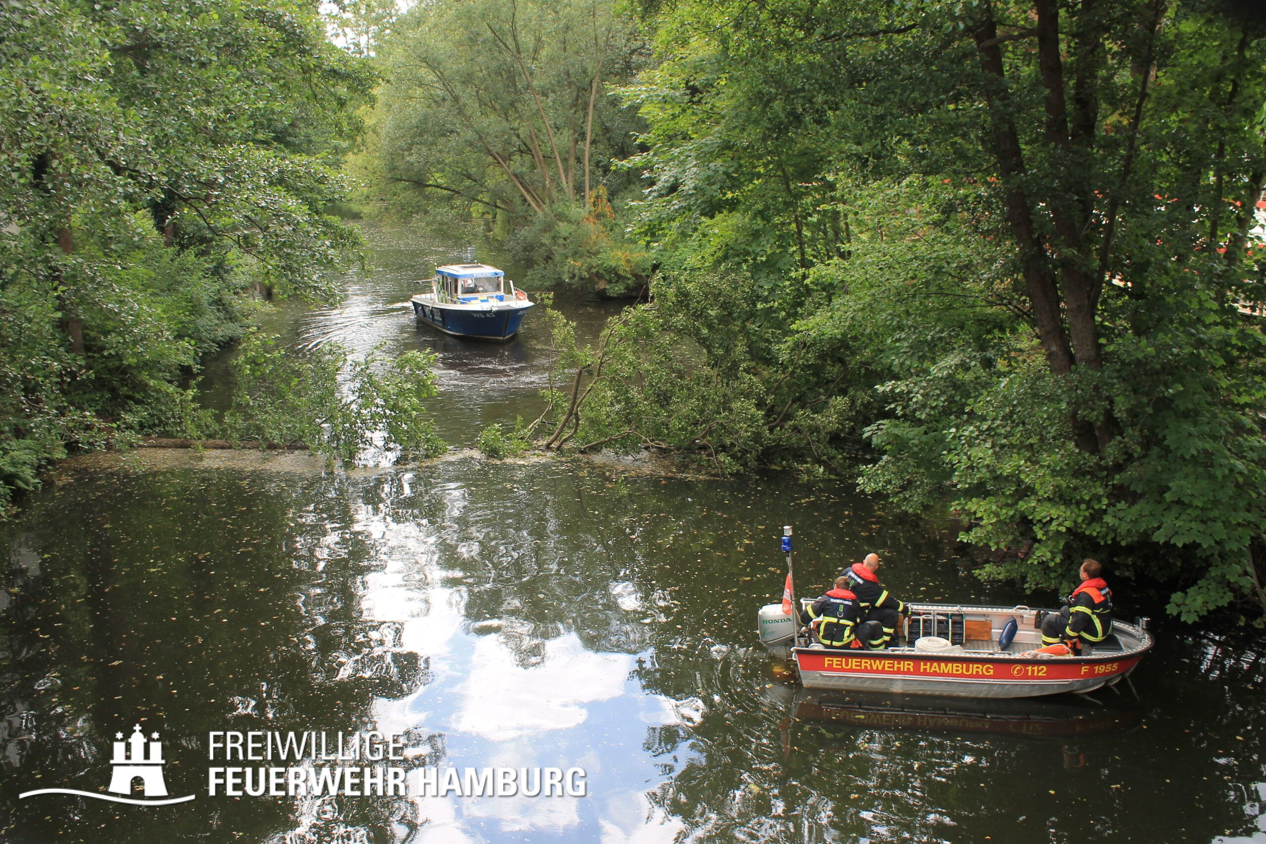 Am Freitagnachmittag, den 22.07.2022 wurde die FF Alsterdorf mit ihrem Kleinboot von der bereits vor Ort befindlichen Berufsfeuerwehr Alsterdorf nachgefordert. Am Ufer eines Alsterkanals war ein Baum in die Alster gefallen und versperrte auf gesamter Breite den Kanal. Allein durch die Einsatzkräfte an Land war eine Beseitigung des Baumes unmöglich.