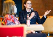 Das nun aus dem Arbeitskreis resultierte Event ermöglichte nach Aussage der Teilnehmerinnern und Teilnehmer „einen wichtigen und lebendigen Austausch“. Hier wurden die Ergebnisse des Arbeitskreises in einem neuen Format an die Kameradin und an den Kameraden gebracht: In einer Art „Talkrunde“ haben sich fünf Mitglieder der Freiwilligen Feuerwehr zu der Thematik unterhalten – untereinander und mit dem Plenum. Die Teilnehmerinnen und Teilnehmer wurden von Alina Schefler, Ansprechpartnerin für Personalmarketing und Öffentlichkeitsarbeit in der Geschäftsstelle, durch die Veranstaltung geleitet. Landesjugendfeuerwehrwart-Vertreter Henrik Strate sowie Wehrführer der Freiwilligen Feuerwehr Eimsbüttel, Tobias Moll, teilten ihr Expertenwissen zu Themen wie Statistiken, Ü15-Diensten und Praktika bei der Einsatzabteilung. Außerdem saßen die beiden Landesjugendsprecher Rupert Kempe und Nils Pank auf der Bühne, um die Gespräche aus der Perspektive der Jugendlichen zu beleuchten. Mit diesem neuen Format wurde einem intensiven und offenen Austausch zu der Thematik auf der Bühne wie auch im gesamten Plenum Raum gegeben.