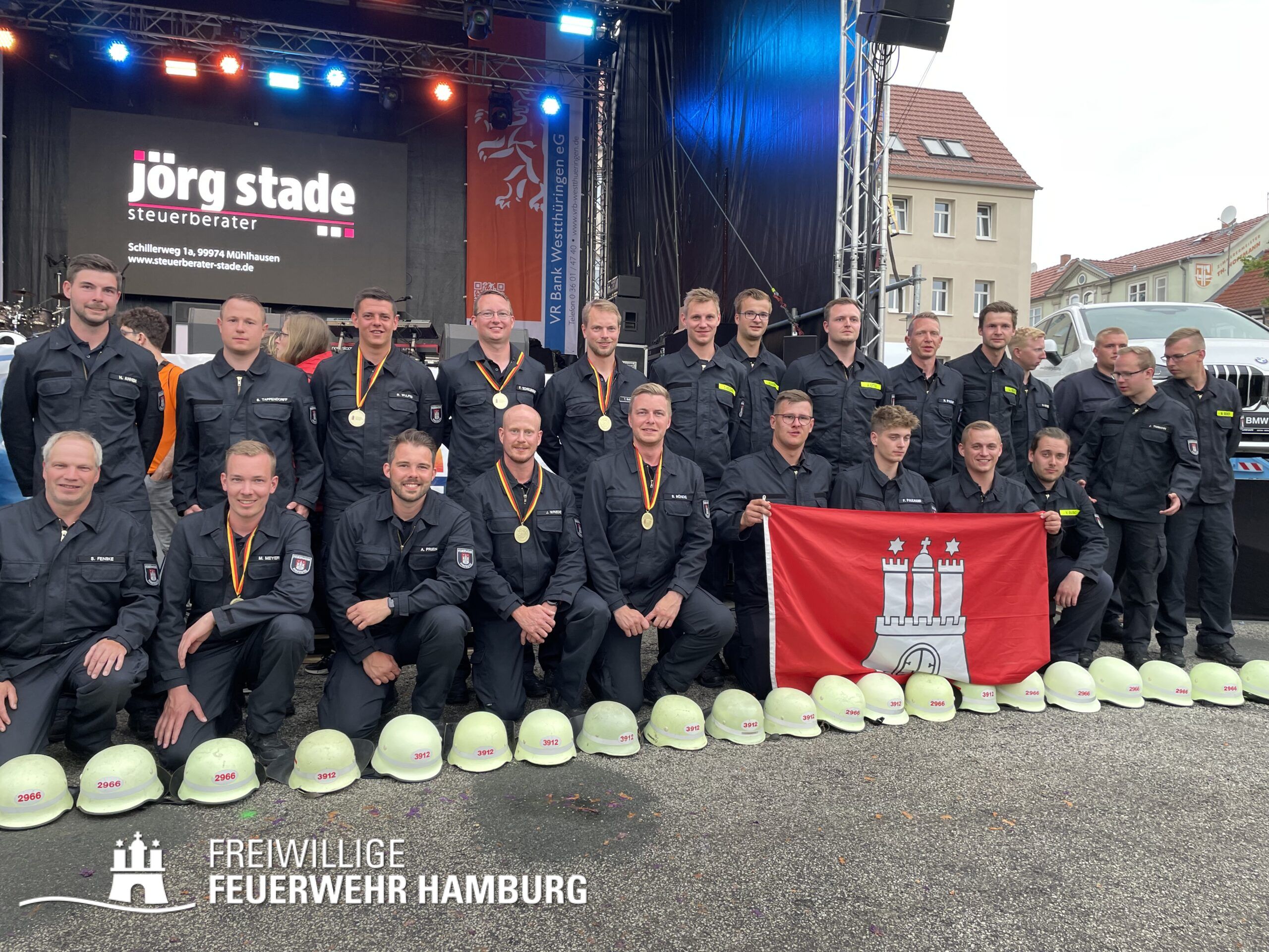 Erstmals in der Geschichte der seit 1961 ausgetragenen Wettkämpfe konnten sich Mannschaften aus Hamburg für die Teilnahme an einer Olympiade qualifizieren (Wir berichteten bereits am 10. Juni darüber). Im Bereich Freiwillige Feuerwehren A (Feuerwehr Herren ohne Alterspunkte) konnten sich dort nicht nur eine, sondern mit den Feuerwehren aus Hamburg Spadenland und Hamburg Moorwerder, gleich zwei Wehren einen der sieben heiß umkämpften Startplätze in ihrer Wertungsklasse sichern (Moorwerder 5.; Spadenland 6. von 30 teilnehmenden Mannschaften aus dem gesamten Bundesgebiet).