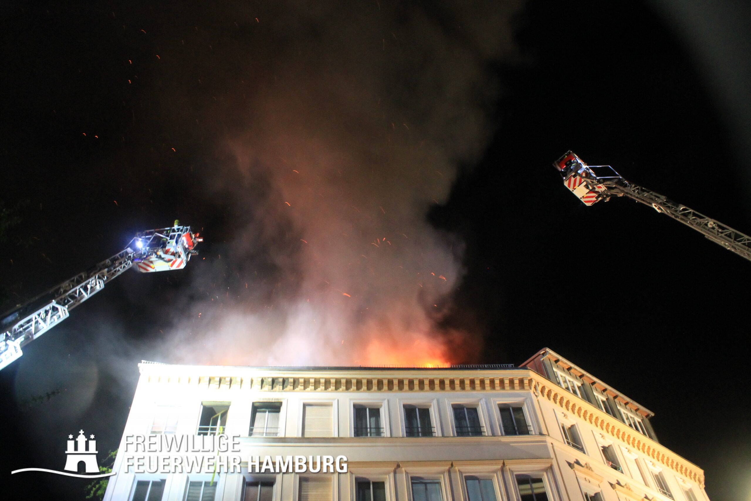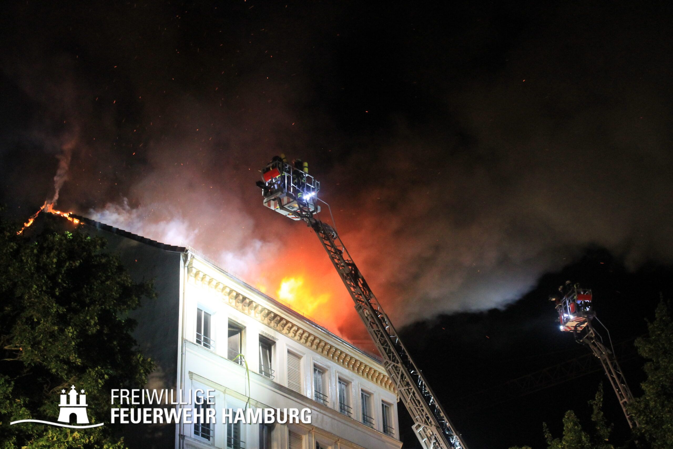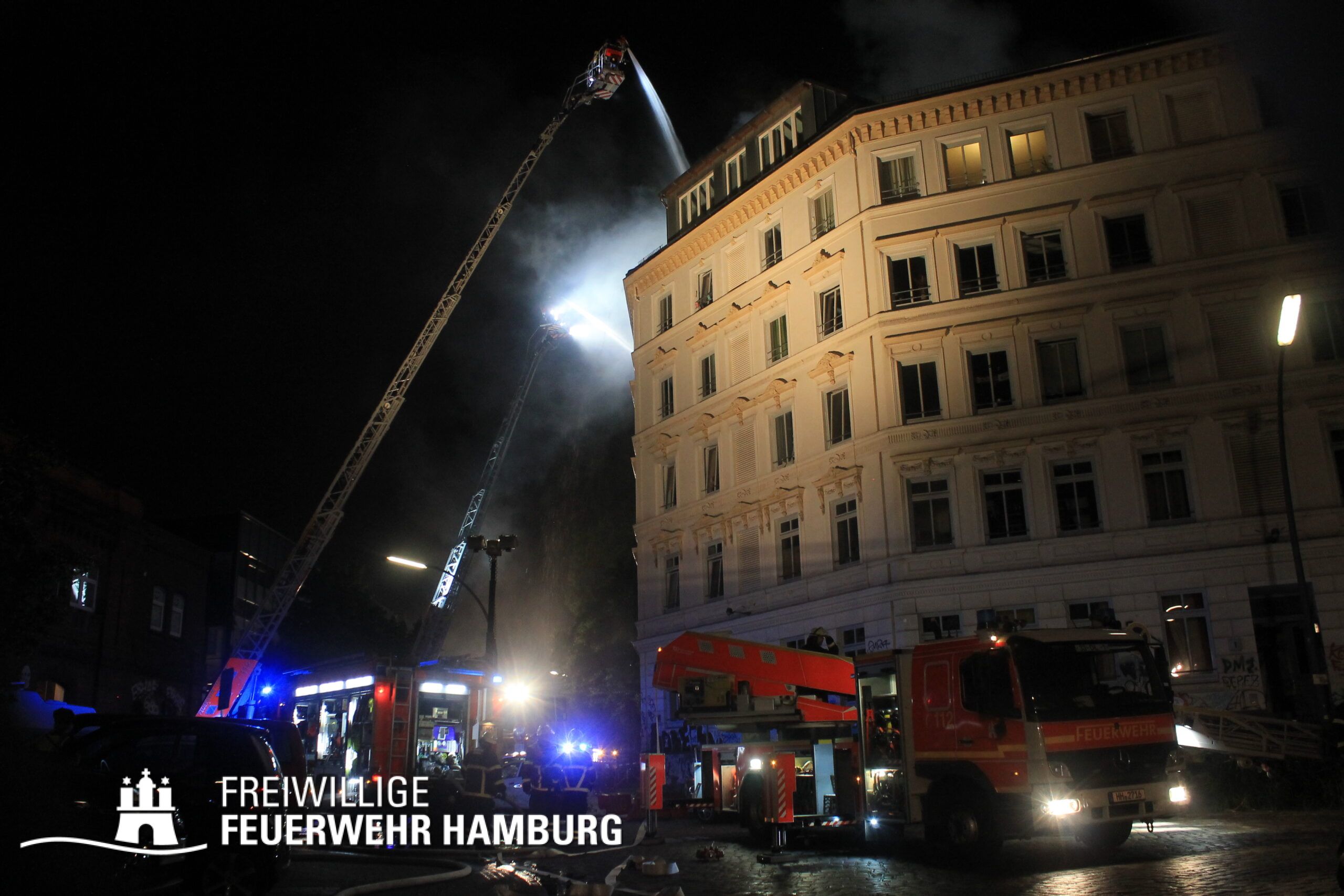 Wohnungsbrand greift auch Dachstuhl in der Schanze über.