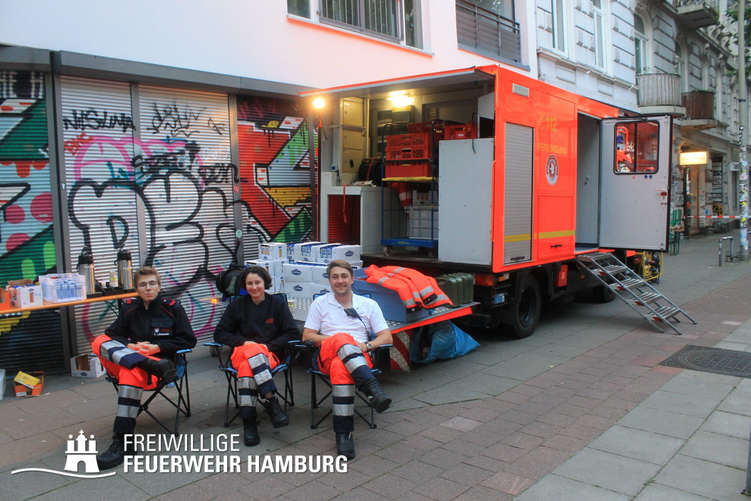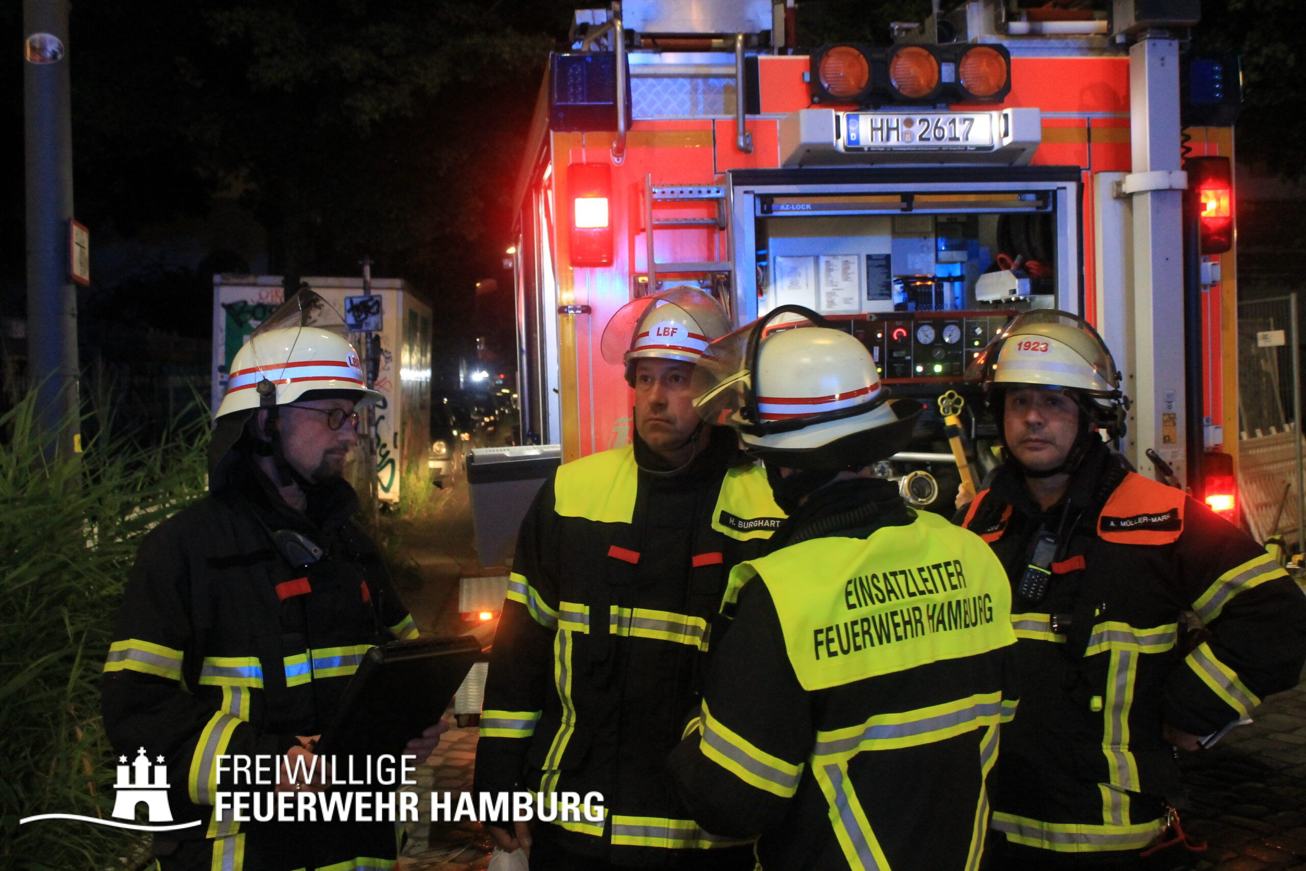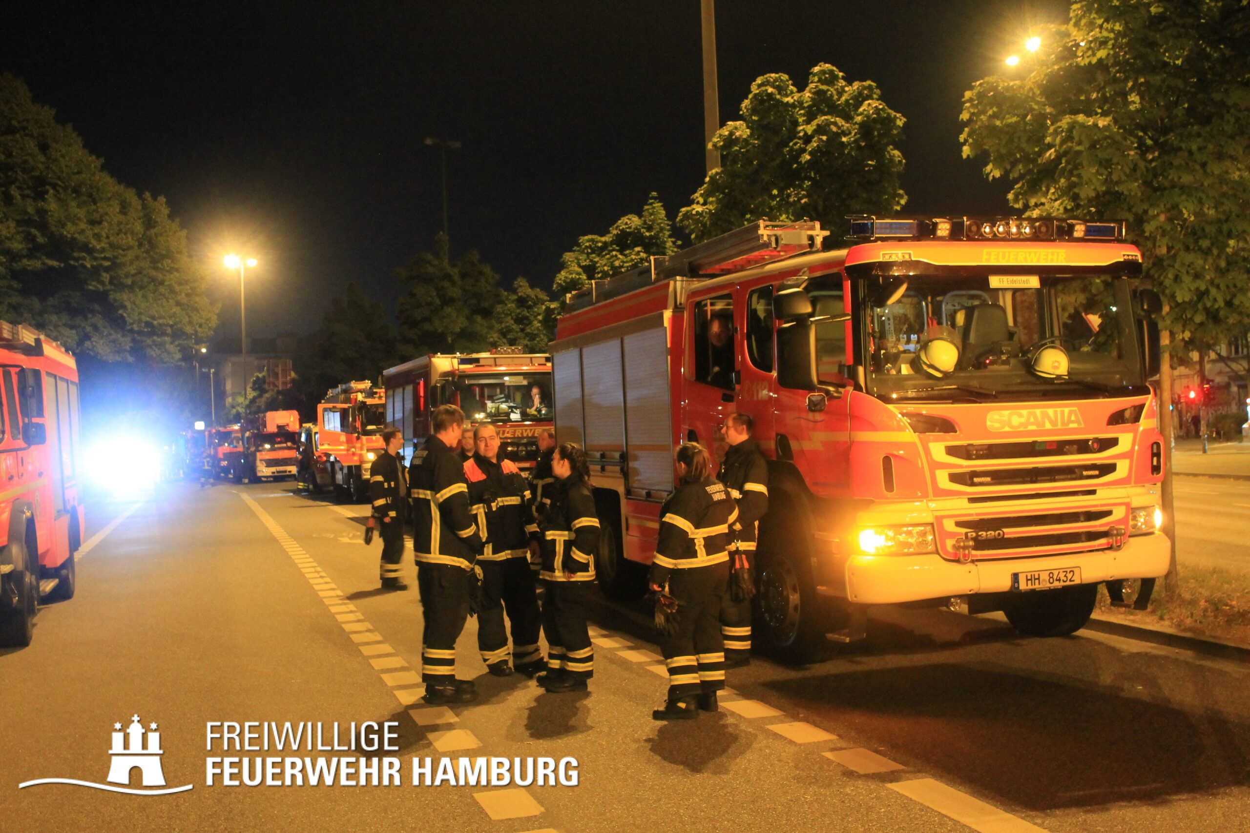 Über den gesamten Einsatz waren ca. 140 Ehrenamtliche Einsatzkräfte der Freiwilligen Feuerwehr Hamburg an diesem Einsatz beteiligt!