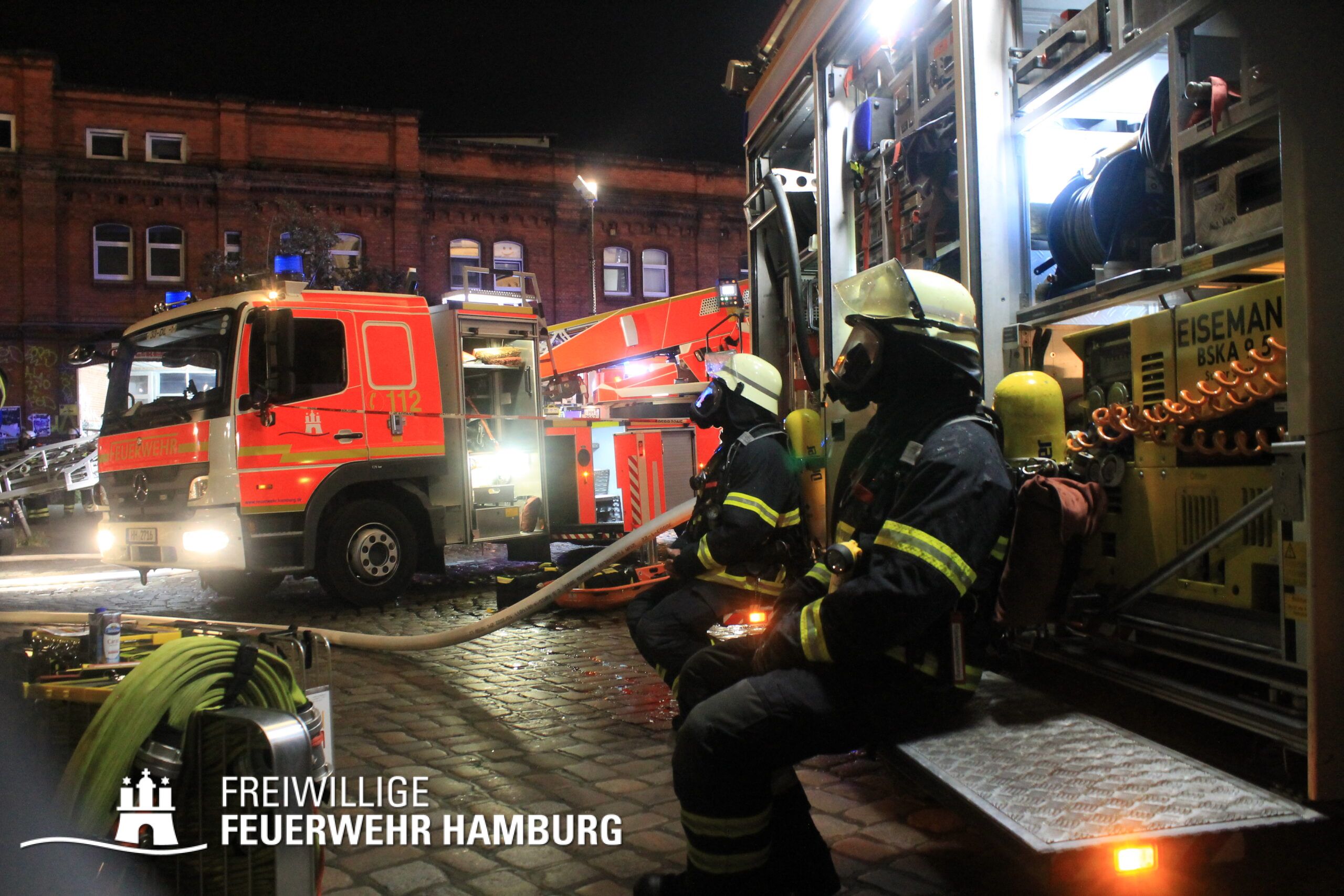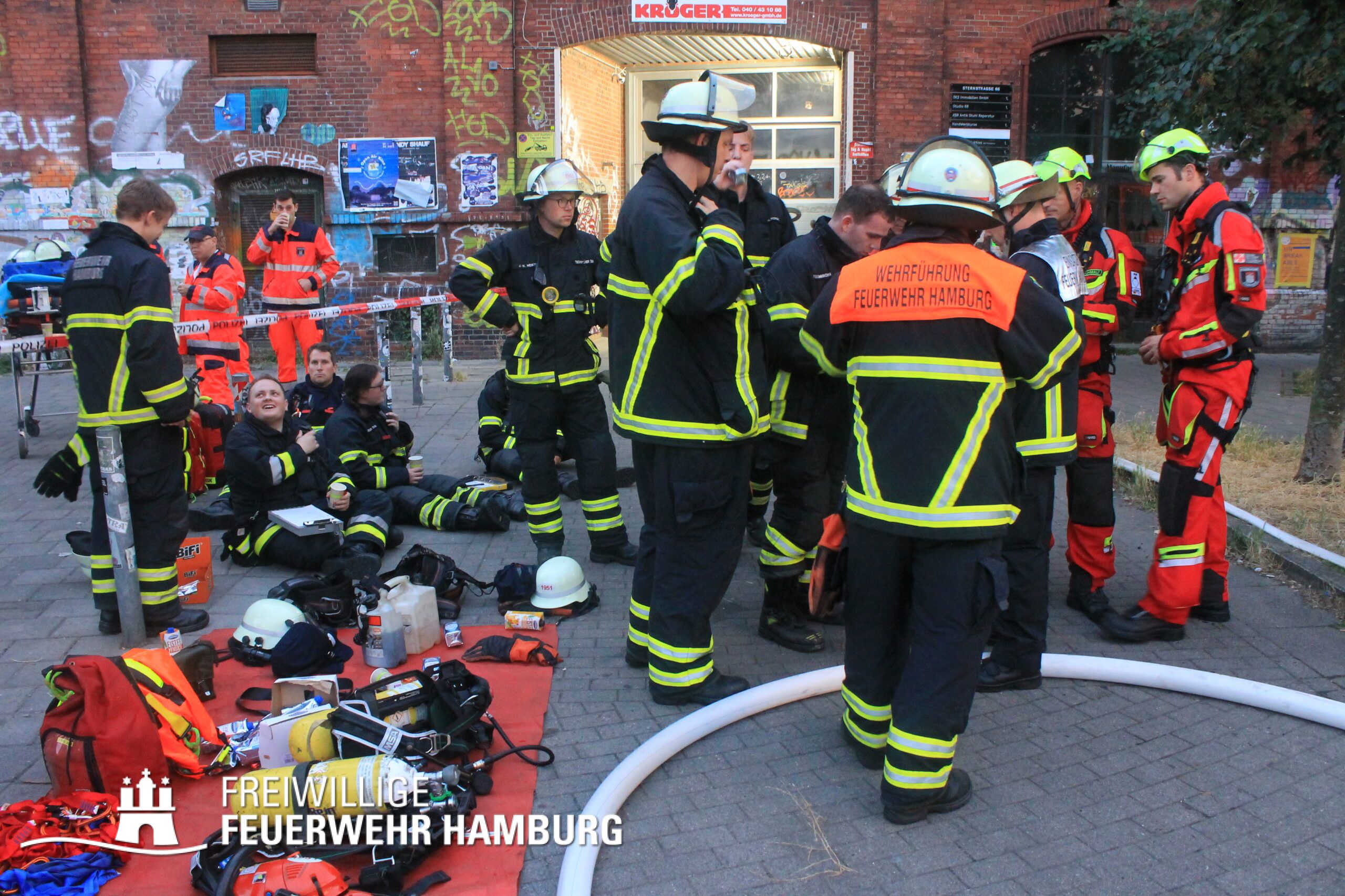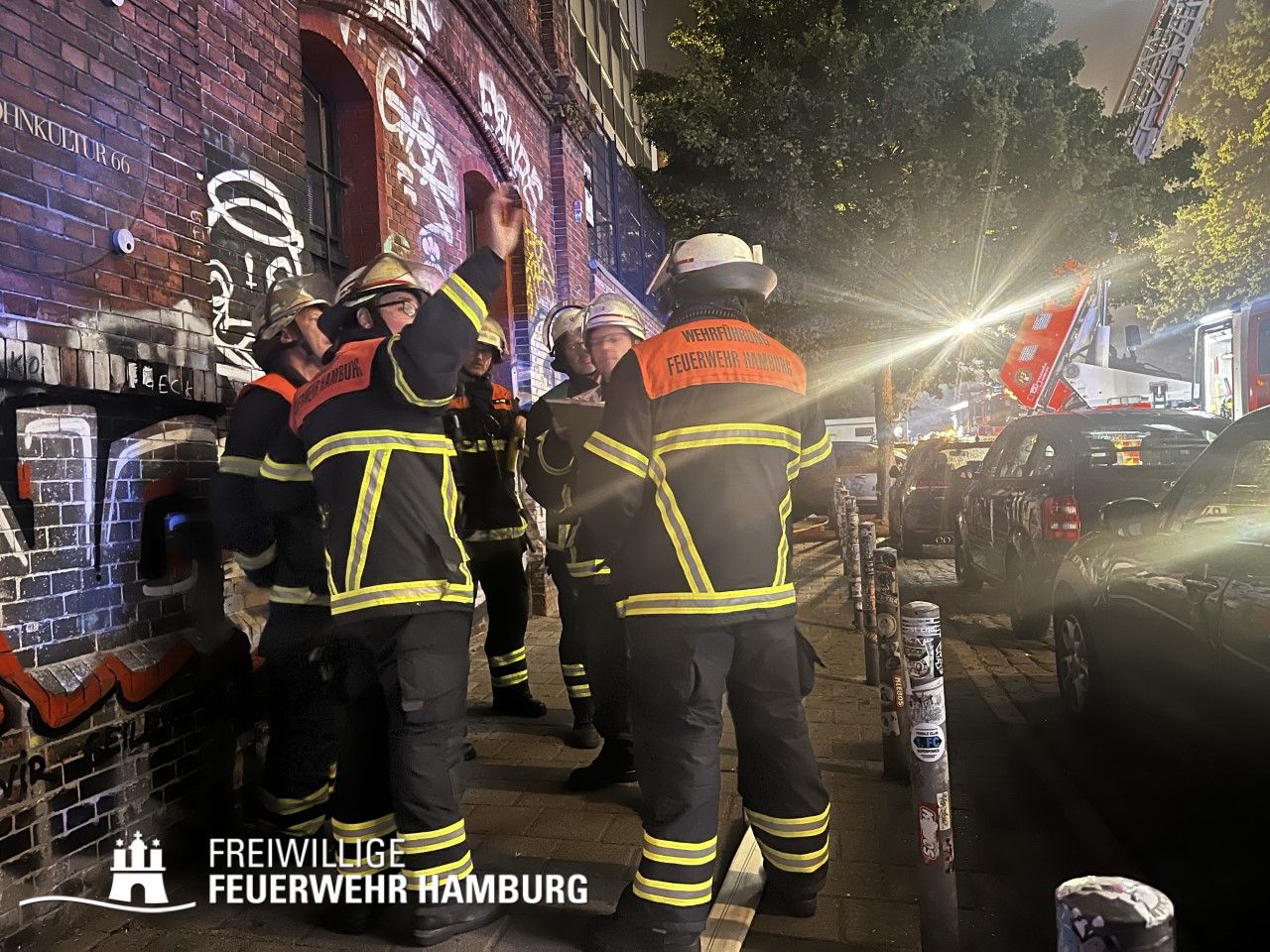 Die FF Pöseldorf, FF Stellingen und FF Groß Flottbek unterstützten mit diversen Trupps unter Atemschutz bei der Brandbekämpfung und stellten ebenfalls die Wasserversorgung her. Der Bereichsführer Eimsbüttel sorgte gemeinsam mit dem Landesbereichsführer für die Einsatzleitung auf der Seite der Freiwilligen Feuerwehr. Die FF Altona sorgte mit ihrem Gerätewagen-Fernmelde (GW-FM) im Bereitstellungsraum an der Schanzenstraße für eine gute Organisation und machte mit ihrer Drohne Aufnahmen von der Einsatzstelle. Die FF Ottensen-Bahrenfeld versorgte die Einsatzkräfte vor Ort mit Snacks und Frühstück aus ihrem Gerätewagen-Versorgung. Um besser an die Glutnester im Dach zu kommen wurde die FF Eppendorf zur Unterstützung alarmiert. Diese öffnete gemeinsam mit der Höhenrettung und mit Hilfe von Trennschleifern und Rettungssägen die Dachhaut. Die Wehren Eidelstedt, Alsterdorf, Osdorf sowie die FF Berliner Tor lösten im späteren Verlauf gemeinsam mit dem Bereichsführer Nord die erst alarmierten Einsatzkräfte ab.