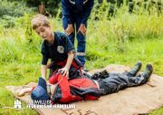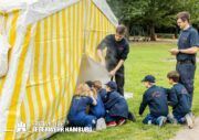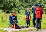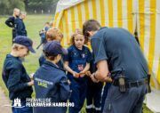 So durften die Kinder z.B. ihre Geschicklichkeit bei der Benutzung eines Schlauches, ihr Können in der Ersten-Hilfe bei der Versorgung eines Bewusstlosen und nicht zuletzt ihre Teamarbeit bei diversen Geschicklichkeitsaufgaben beweisen.