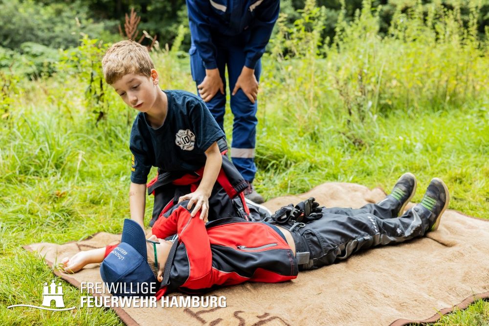 So durften die Kinder z.B. ihre Geschicklichkeit bei der Benutzung eines Schlauches, ihr Können in der Ersten-Hilfe bei der Versorgung eines Bewusstlosen und nicht zuletzt ihre Teamarbeit bei diversen Geschicklichkeitsaufgaben beweisen.