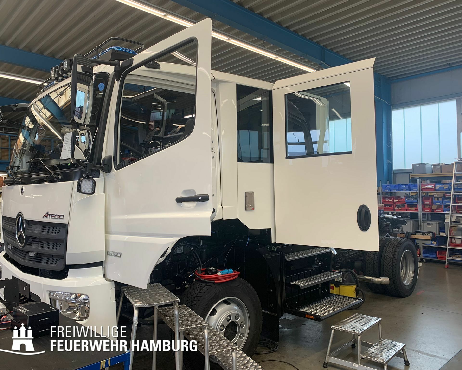 Sie sollen die LF 16/12 auf dem ersten Stellplatz ablösen. Dabei stehen sie in Sachen Ausstattung den aktuellen HLF in nichts nach und weisen sogar einige extra Features auf, wie eine Leiterentnahmehilfe. Mit ihrer modernen Ausstattung werden die 41 neuen HLF 20 ein nützliches und wichtiges Einsatzmittel bei unserer Arbeit sein. Bevor sie übergeben werden können, müssen wir uns allerdings noch etwas gedulden. Bis dahin versorgen wir euch mit Impressionen aus der Produktion.