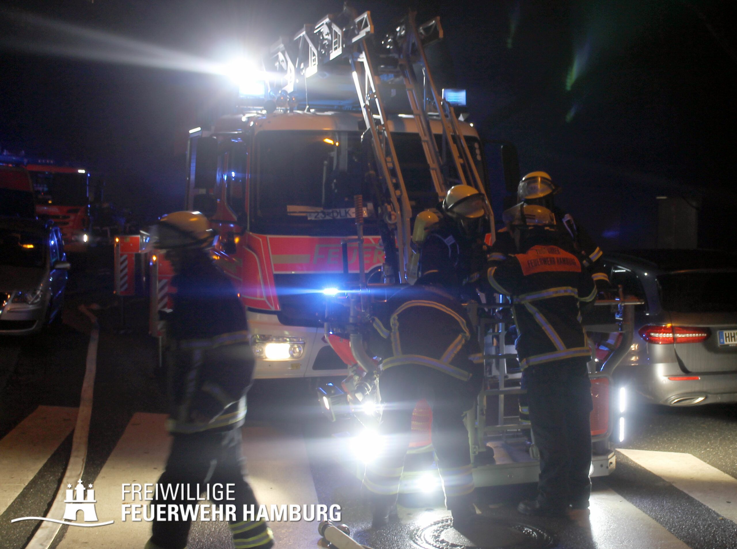 Die FF Fuhlsbüttel unterstützte beim Aufbau der Wasserversorgung und mit einem Atemschutztrupp beim Kontrollieren des Treppenhauses nach Personen. Die FF Bramfeld unterstützte ebenfalls mit mehreren Atemschutzgeräteträgern bei der Kontrolle des Gebäudes. Die FF Wellingsbüttel musste nicht tätig werden, befand sich jedoch in Bereitstellung an der Einsatzstelle. Der Bereichsführer Alstertal Sven Kasch koordinierte die Kräfte der Freiwilligen Feuerwehr.