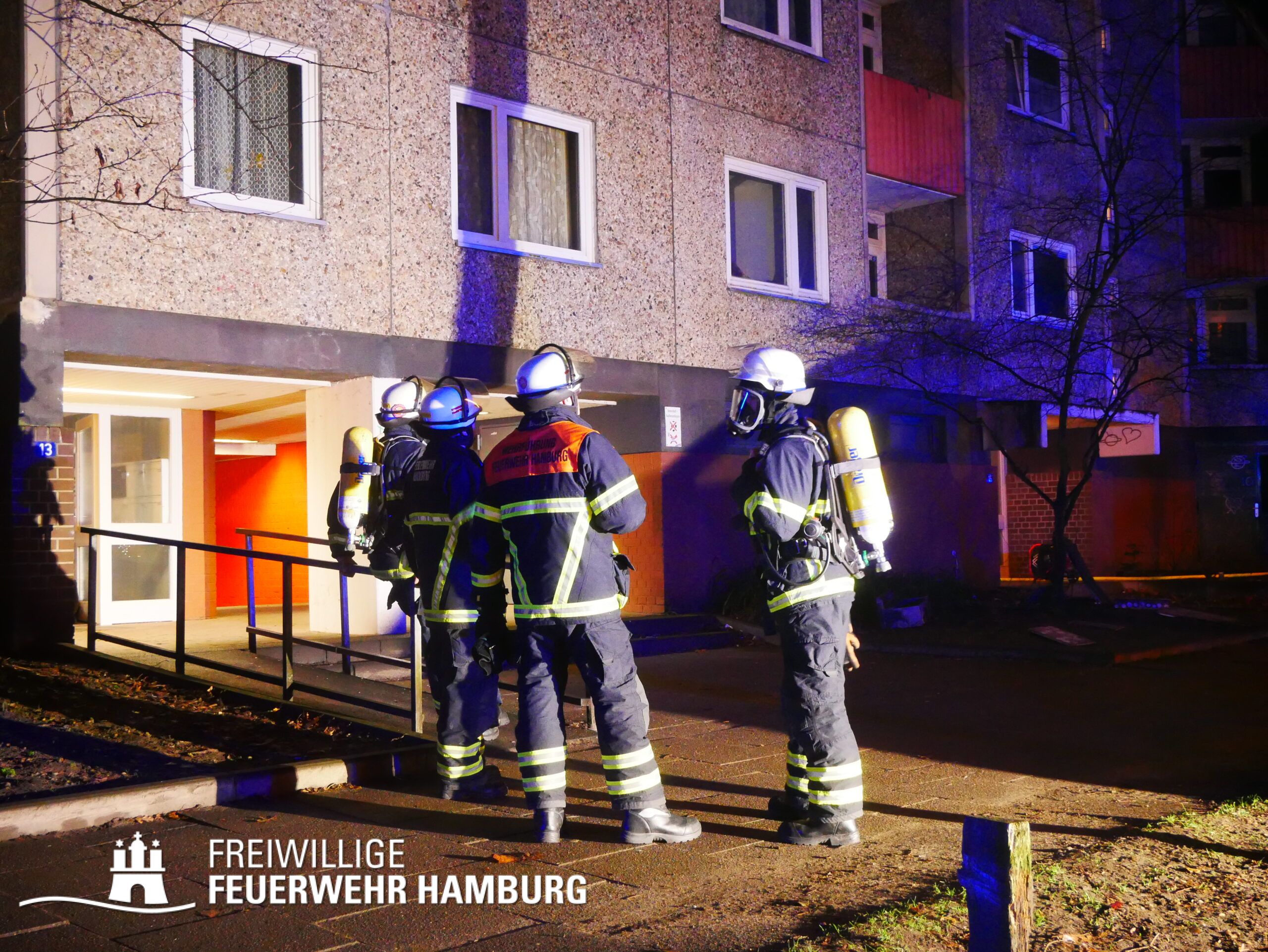 Ein Küchenbrand in einem Mehrfamilienhaus in Hamburg Steilshoop forderte 3 unsere Wehren gemeinsam mit dem Bereichsführer Alstertal.