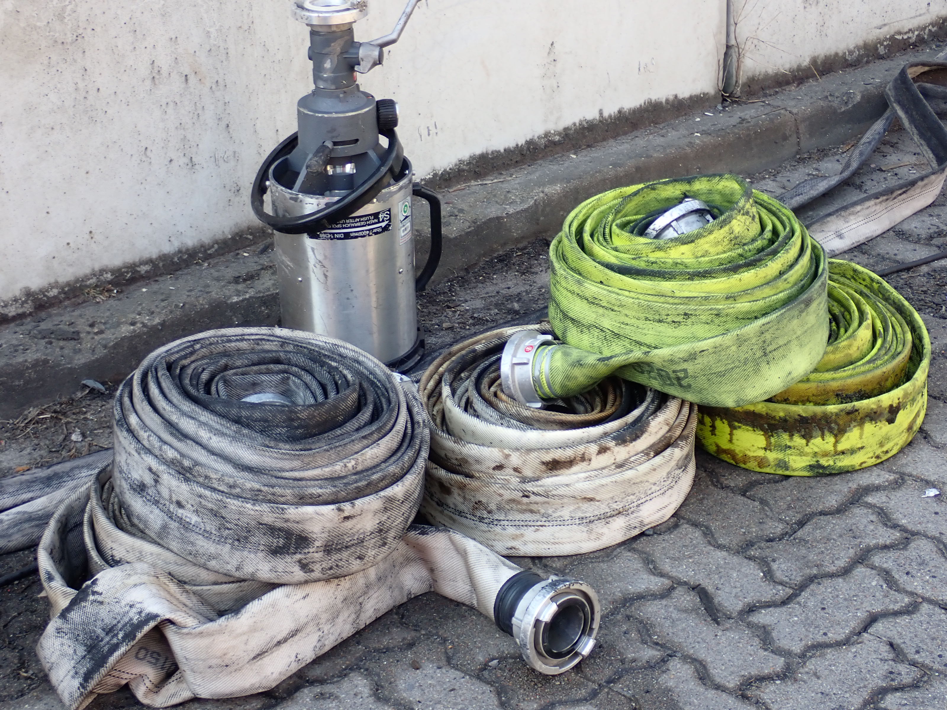 Die Wasserversorgungswehren sorgten mit ihren Schlauchwagen für mehrere Kilometer Wasserversorgung über lange Wegstrecken.