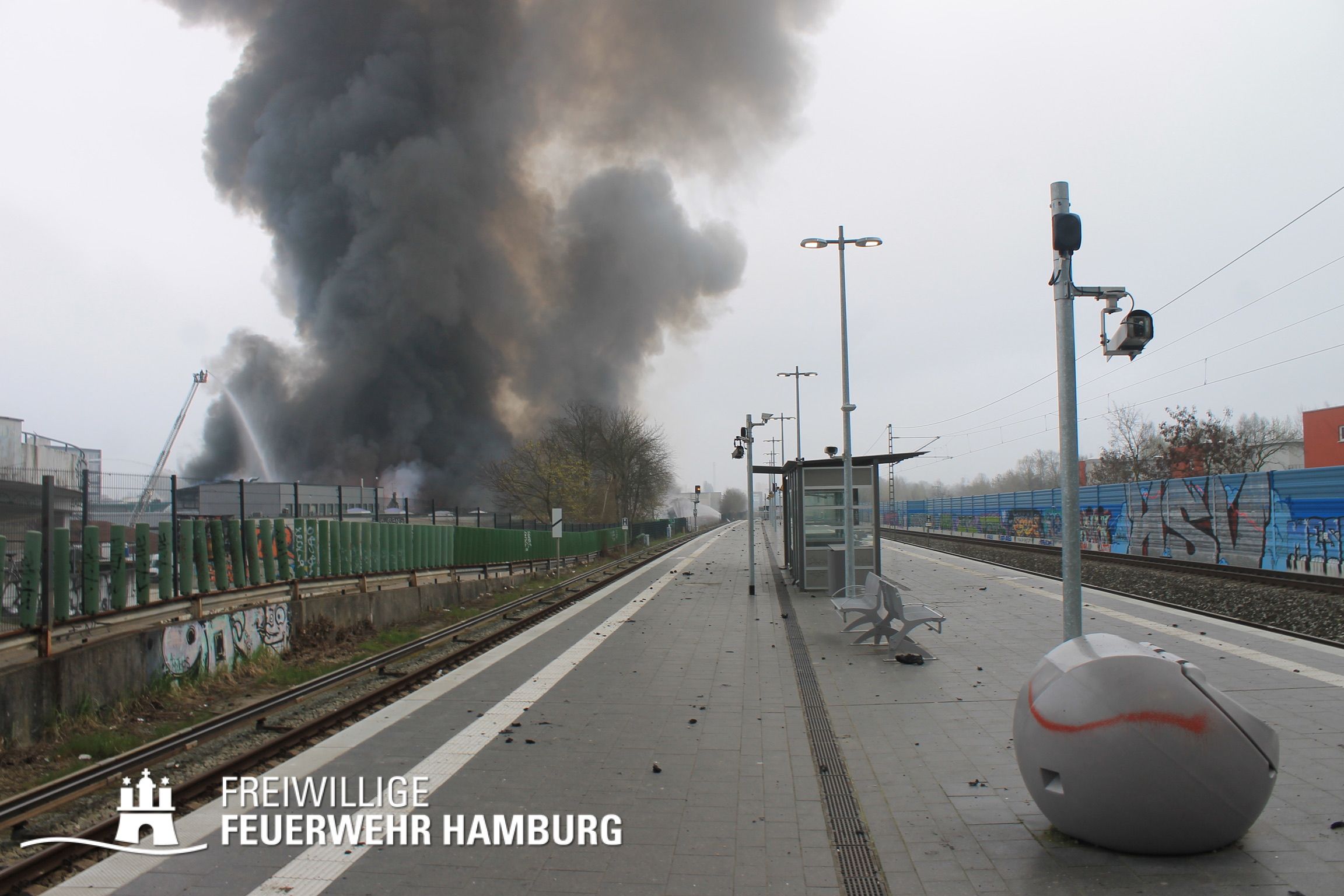 Wind aus dem Osten sorgte dafür, dass die sehr starke Rauchentwicklung über weite Teile der Hamburger Innenstadt zog und Aschebrocken in Faustgröße (teilweise auch größer) bis nach Altona getragen wurden. Über das Modulare Warnsystem MOWAS wurde die höchstmögliche Warnstufe für weite Teile Hamburgs ausgelöst. Genauso wurden über die Warnapps NINA und CellBroadcast viele Hamburgerinnen und Hamburger am Ostersonntag gewarnt. Sie sollten Fenster und Türen geschlossen halten und sich möglichst nicht im Freien aufhalten. Da sich die Einsatzstelle direkt an der S-Bahn- und Fernbahn-Linien von Hamburg in Richtung Osten befand, wurden diese gesperrt.