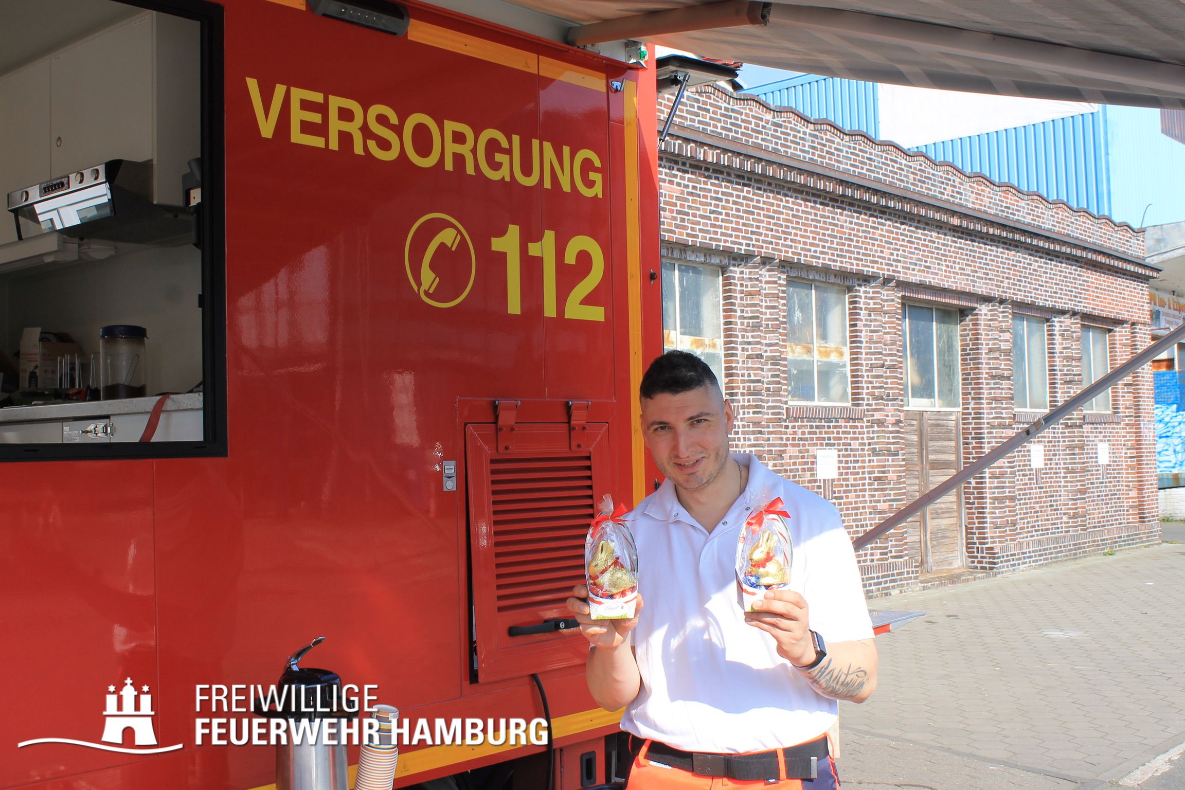 Die Versorgungswehren sorgten für das leibliche Wohl mit Kalt- und Warmgetränken sowie Snacks und Suppen. Auch Schoko-Osterhasen wurden – es war schließlich das Osterwochenende -verteilt.