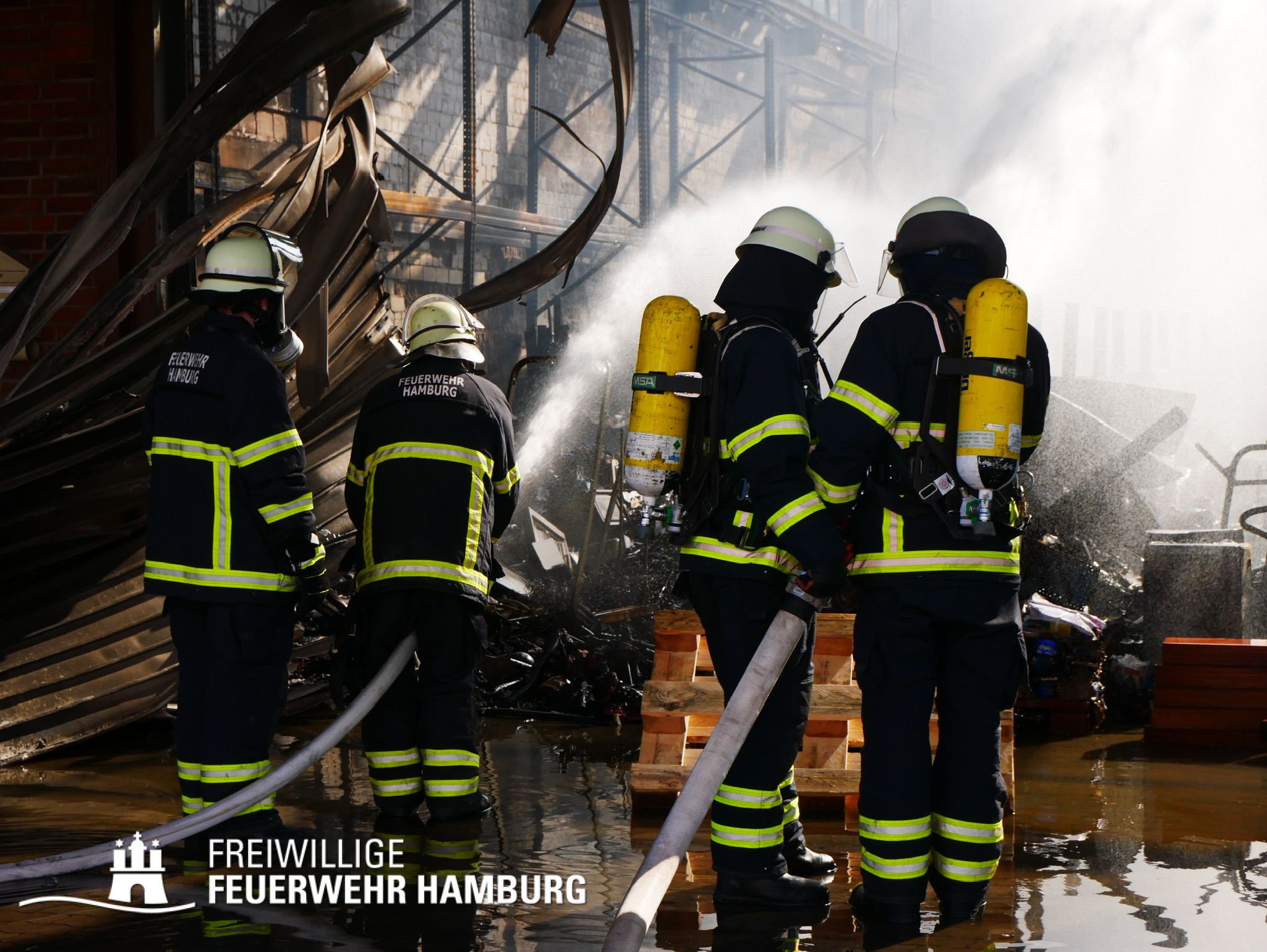 Dieser Einsatz zeigte einmal mehr die Größe und Stärke der Feuerwehr Hamburg. Egal ob Einsatzkräfte vor Ort oder im rückwärtigen Bereich, jeder hat seinen Teil zu diesem immens großen Einsatz beigetragen. Auch zu erwähnen ist z. B. die Technik- und Logistikabteilung F03 der Feuerwehr Hamburg. Hier haben die Kollegen schon am Ostersonntag in ihren Werkstätten dafür gesorgt, dass Einsatzmaterial gereinigt und getauscht werden konnte. Allein an Atemschutzausrüstung wurden etwa 340 Atemluftflaschen und 500 Atemschutzmasken verbraucht. Im Ganzen waren knapp 800 Einsatzkräfte der Feuerwehr Hamburg an diesem Einsatz beteiligt. Die Nachlösch- und Aufräumarbeiten zogen sich noch über die ganze Woche. Eine Abrissfirma räumte im Wochenverlauf die Schuttberge, sodass die Feuerwehr gezielt Glutnester löschen konnte.
