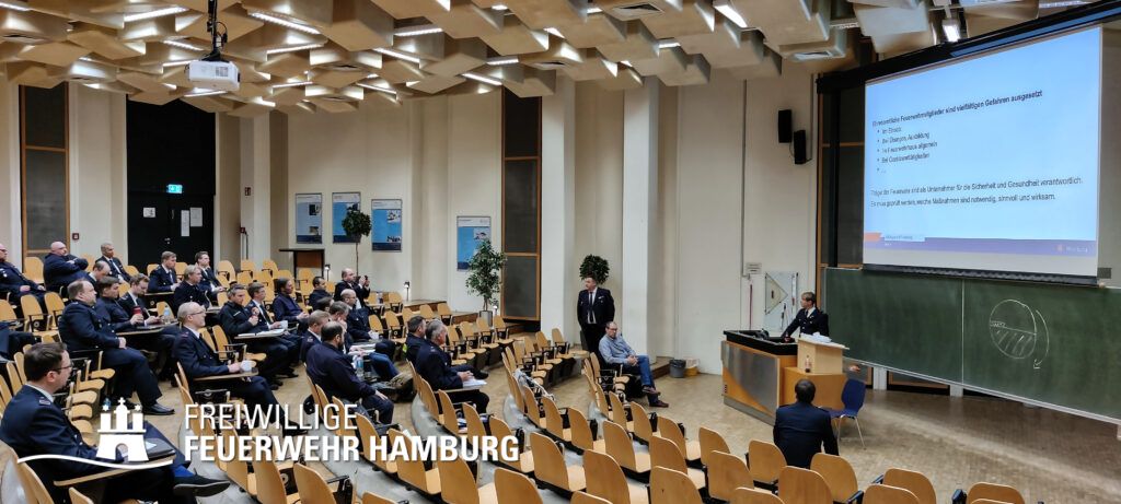 Anschließend gab Dirk Rixen, Ansprechpartner der Hanseatischen Feuerwehr-Unfallkasse Nord (HFUK Nord) einen Einblick in das Unfallgeschehen der vergangenen zwei Jahre um auf besondere Unfallschwerpunkte hinzuweisen. Da die HFUK Nord Unfallversicherungsträger der Freiwilligen Feuerwehr Hamburg ist, wurden jedoch auch Unfallmeldungen und der Ablauf einer Unfallsachbearbeitung thematisiert.