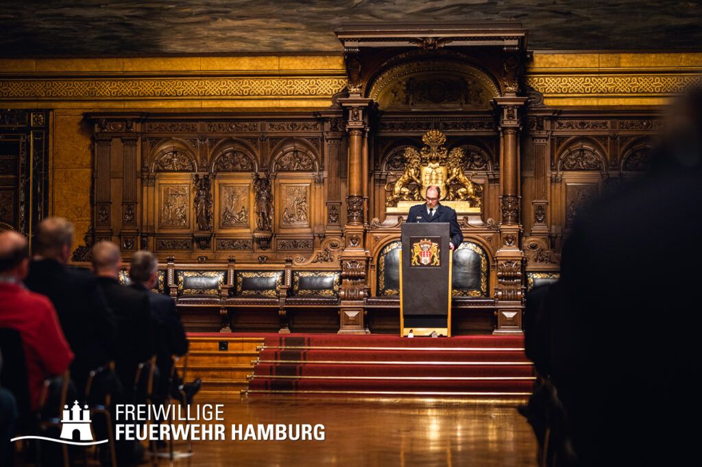 Ein Termin auf den sich wohl jedes Mitglied der Freiwilligen Feuerwehr Hamburg freut - das Gelöbnis im großen Festsaal des Rathauses.