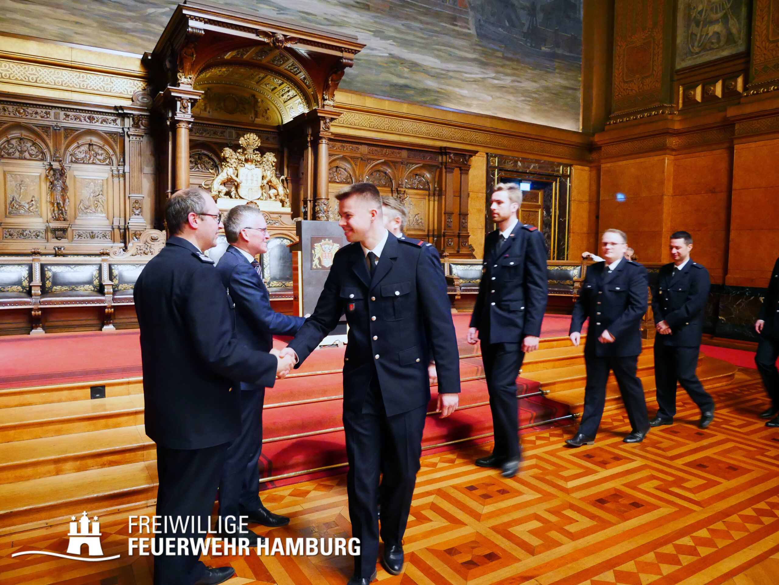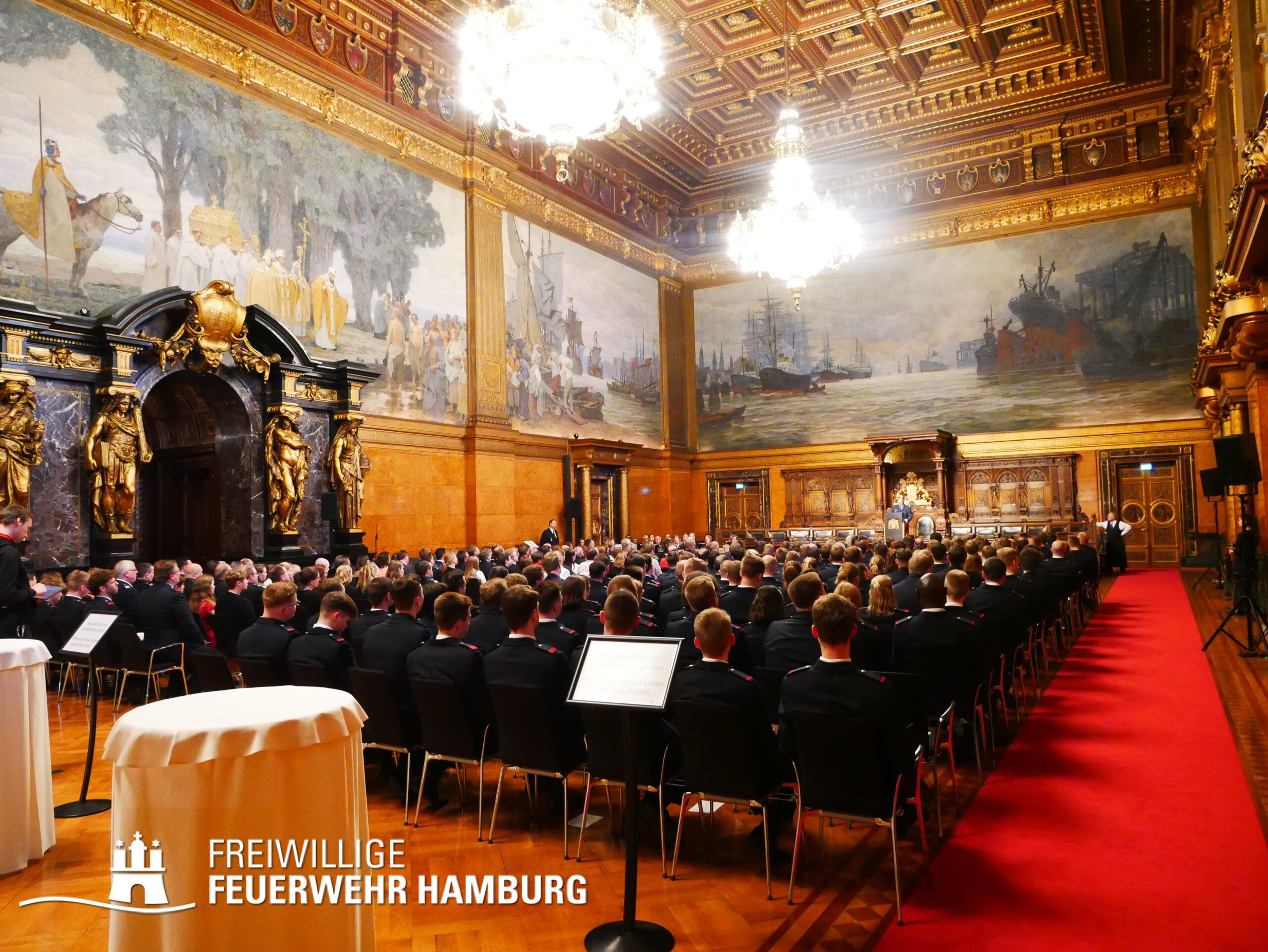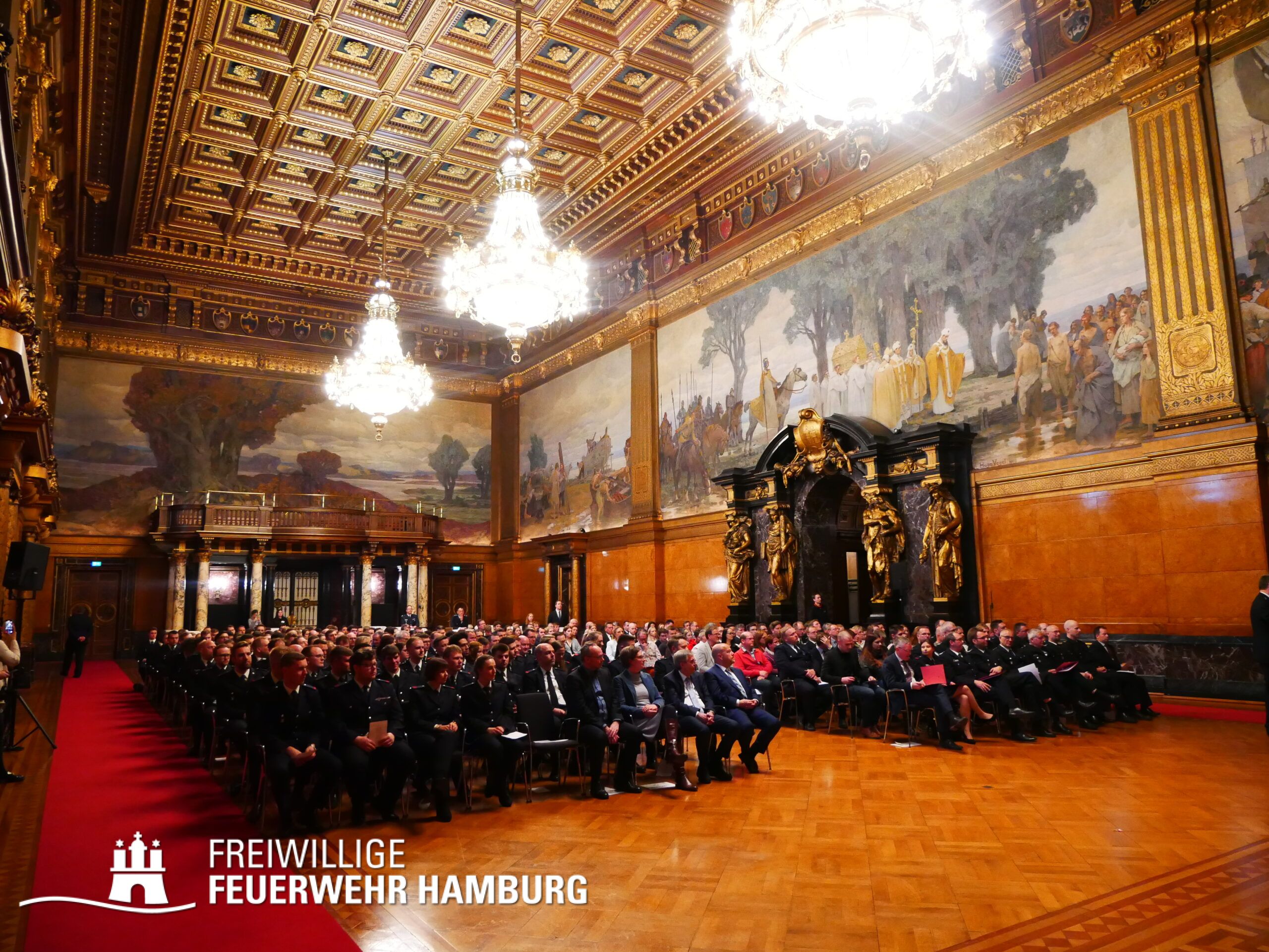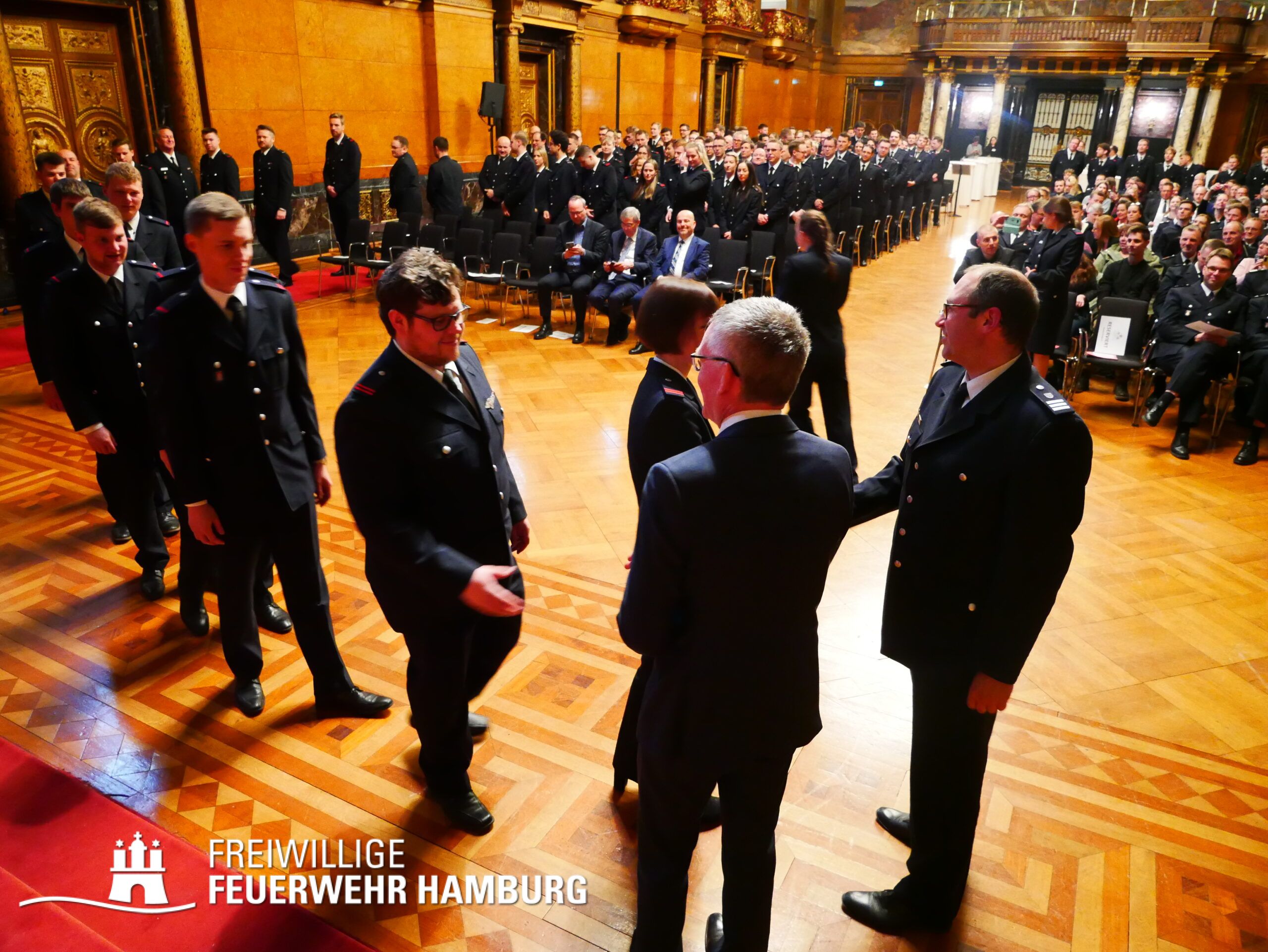 Ein Termin auf den sich wohl jedes Mitglied der Freiwilligen Feuerwehr Hamburg freut - das Gelöbnis im großen Festsaal des Rathauses.