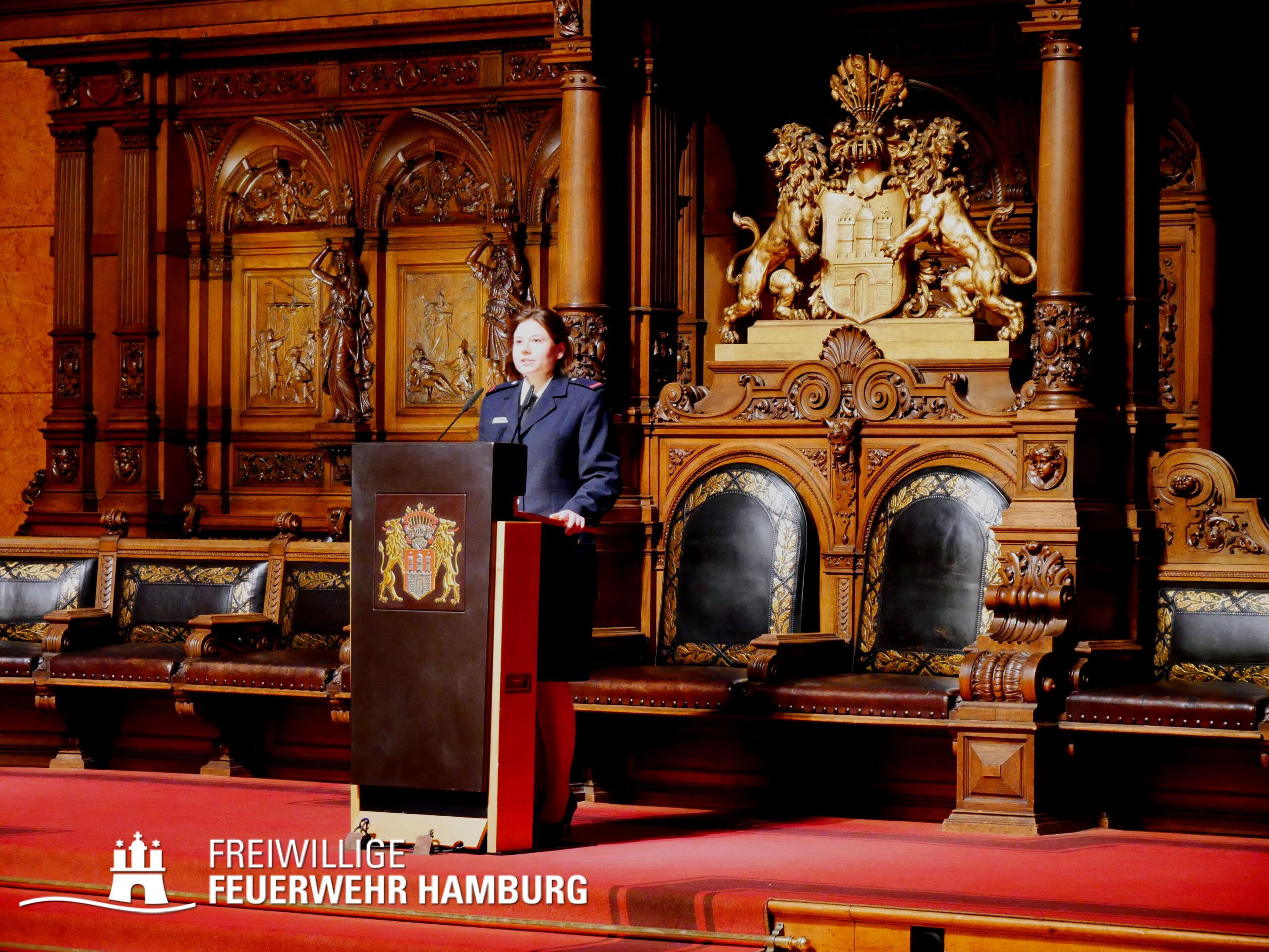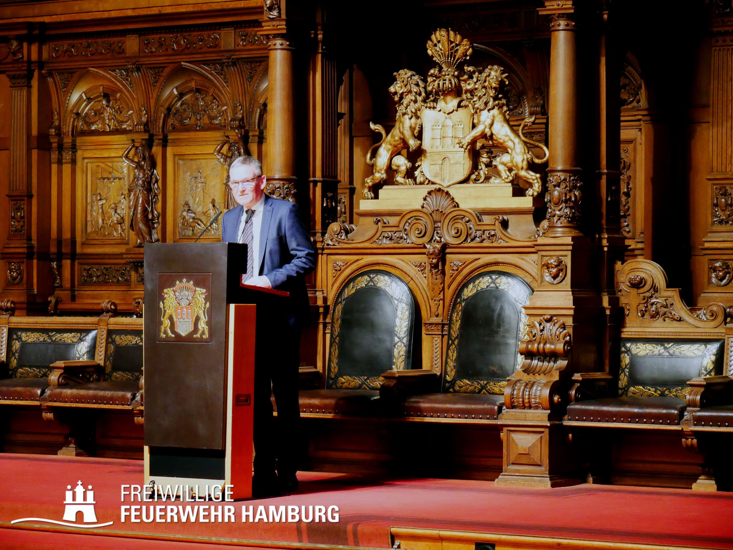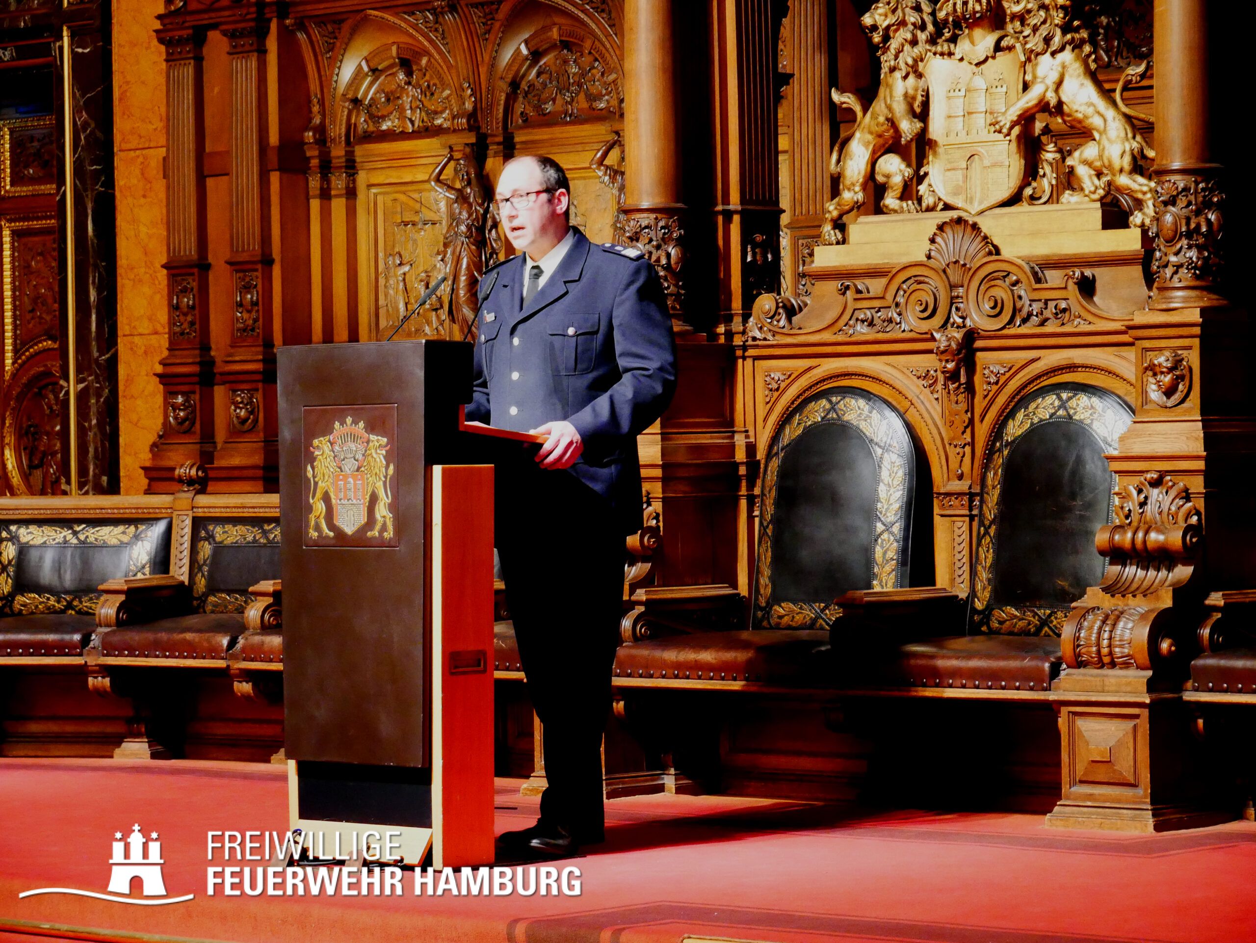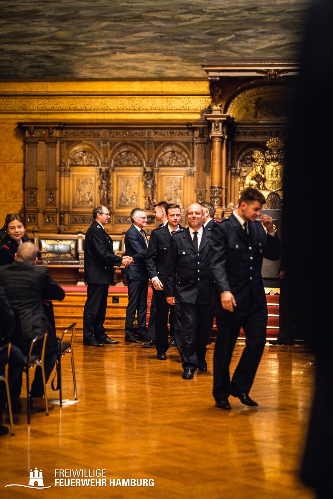 Ein Termin auf den sich wohl jedes Mitglied der Freiwilligen Feuerwehr Hamburg freut - das Gelöbnis im großen Festsaal des Rathauses.