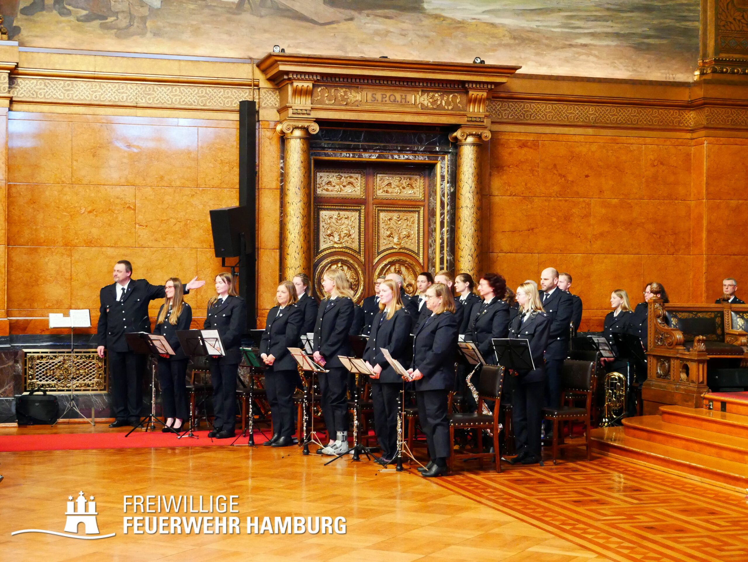 Der große Festsaal des Hamburger Rathauses war an diesem Abend mal wieder gefüllt mit guter Laune und Motivation, den Hamburger Bürgerinnen und Bürgern in Notsituationen zu helfen. Der Musikzug der FF Bramfeld rundete den Abend musikalisch ab.