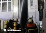 Auf der Gebäuderückseite wurden mittels 2 B-Rohren und einem C-Rohr eine Riegelstellung zu den Nachbargebäuden aufgebaut, hier unterstützten die FF Winterhude und FF Lokstedt bei der Brandbekämpfung. Auf der Vorderseite des Gebäudes konnte über ein weiteres B-Rohr ebenfalls eine Riegelstellung aufgebaut werden, welches durch die FF Alsterdorf besetzt wurde. Weiterhin setzte die FF Winterhude und die FF Alsterdorf mehrere Trupps unter Atemschutz mit 2 C-Rohren im Innengriff ein. Die FF Lokstedt unterstützte bei der Brandbekämpfung über eine Drehleiter ebenfalls mit 2 C-Rohren.