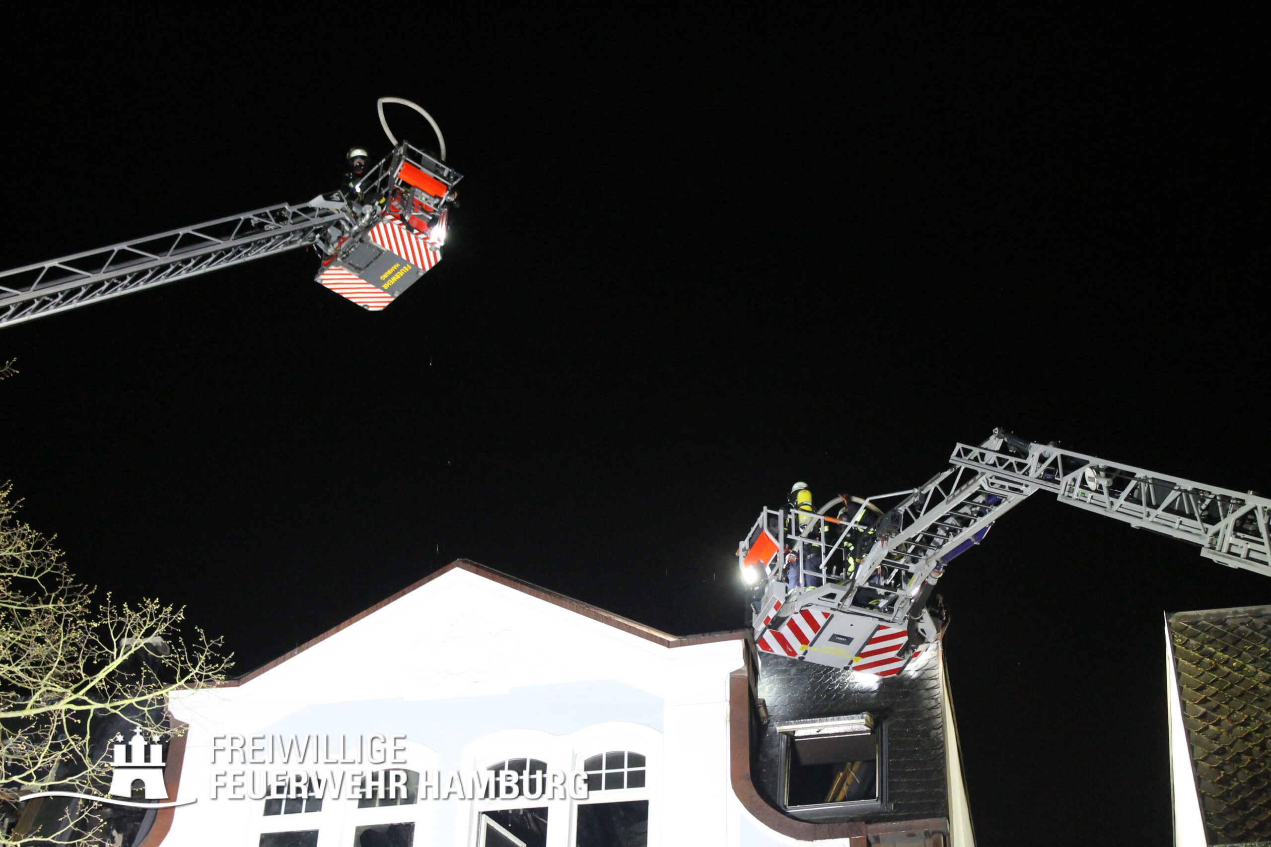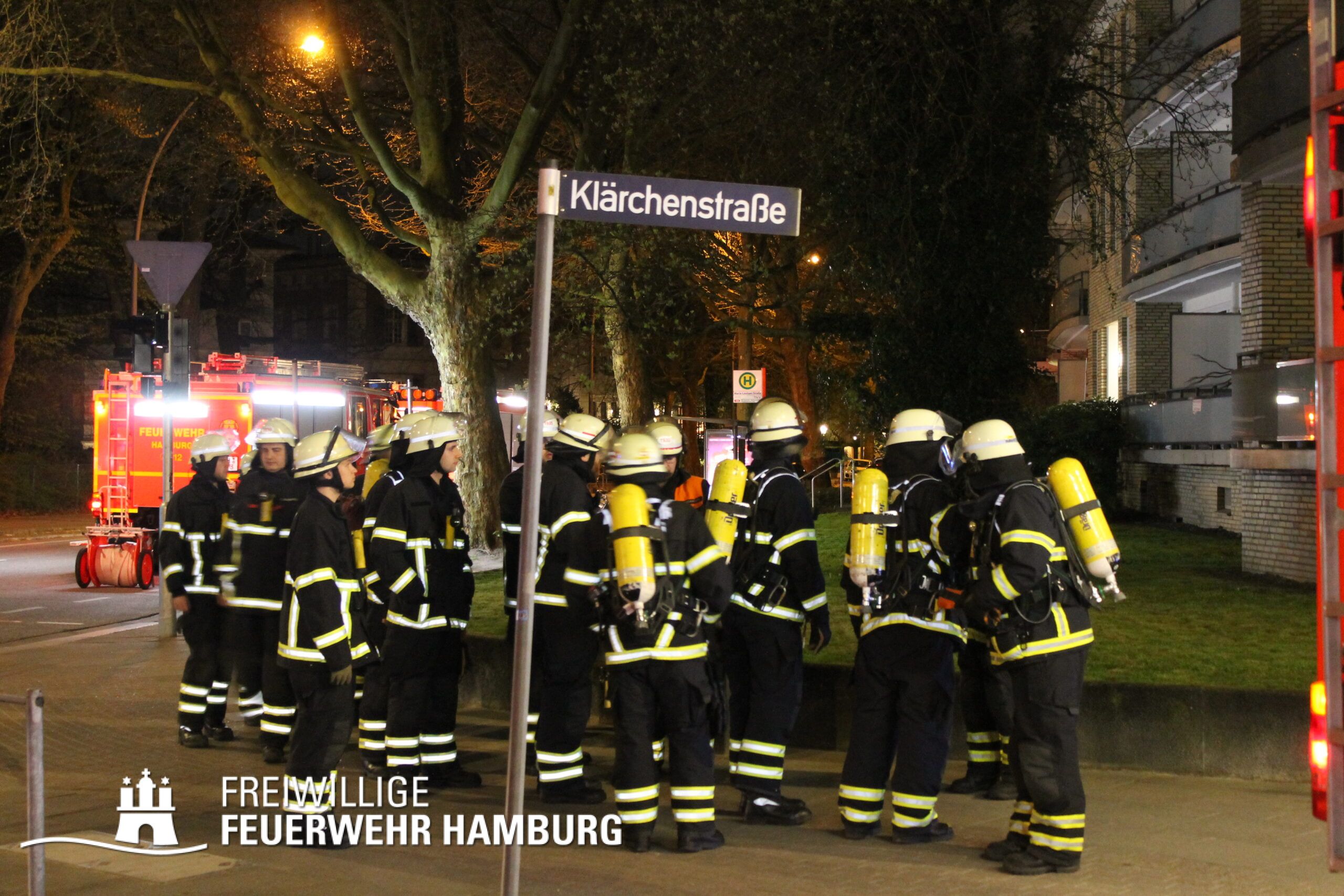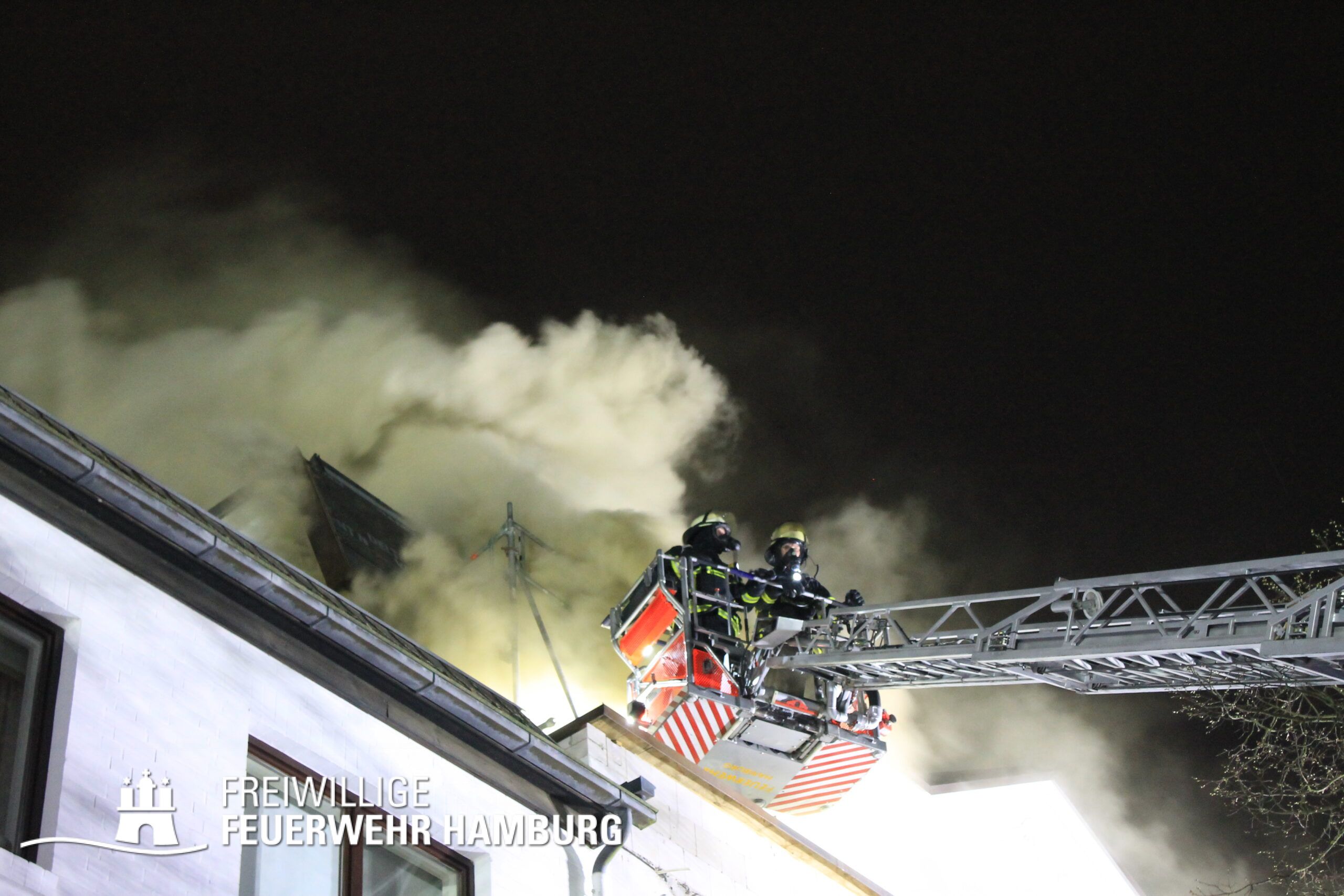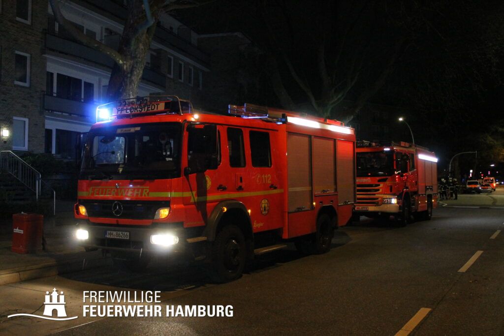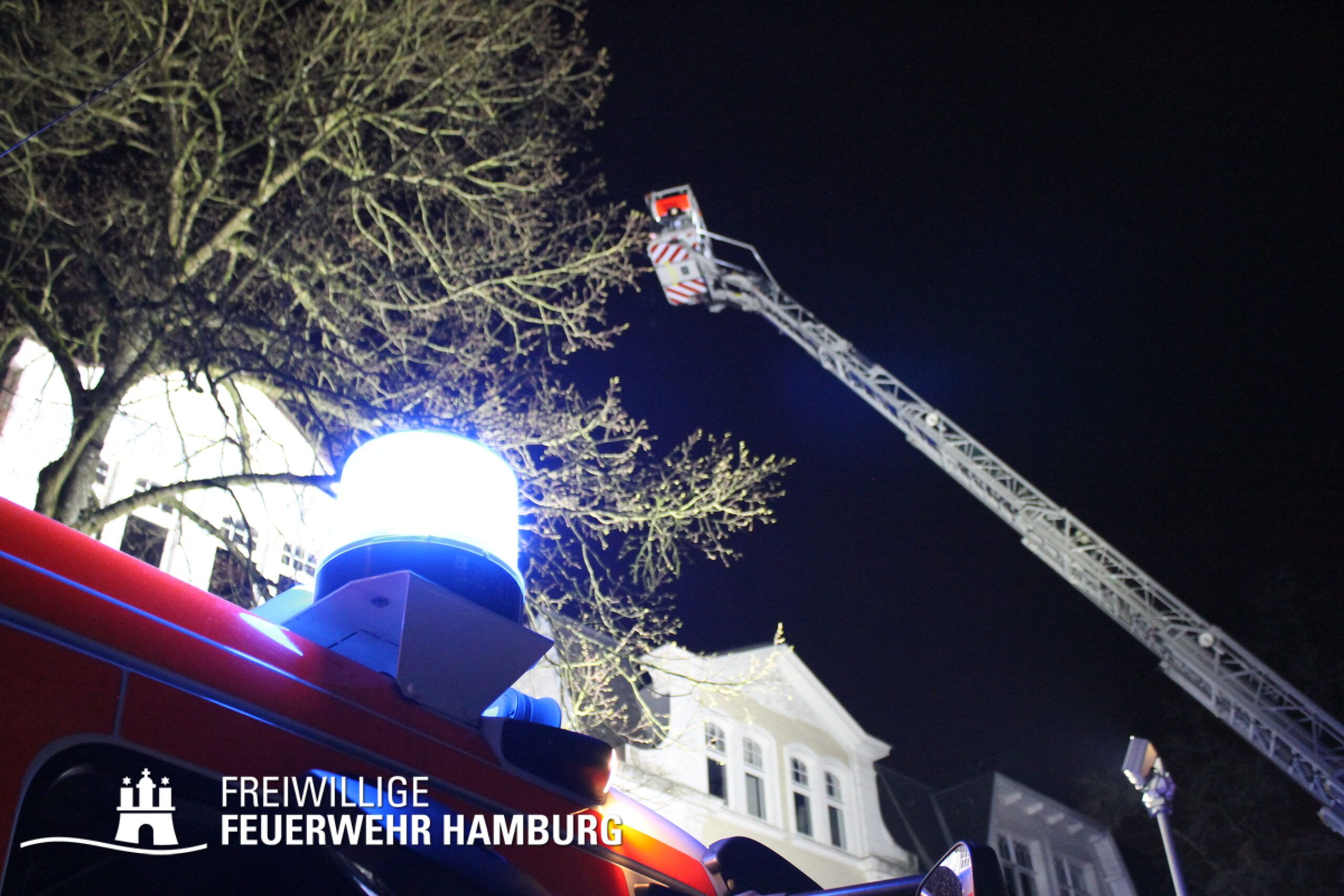 Am Mittwochabend wurde die Freiwillige Feuerwehr Winterhude und der Löschzug der Feuer und Rettungswache Barmbek in die Klärchenstraße im Stadtteil Winterhude gerufen. In einem Mehrfamilienhaus, welches gerade saniert wird, haben Anwohner eine Verrauchung im Dachbereich gemeldet. Als die ersten Einsatzkräfte an der Einsatzstelle eintrafen, brannte es im Dachgeschoss eines dreigeschossigen Mehrfamilienhauses. Vor Ort wurde den Einsatzkräften mitgeteilt, dass sich möglicherweise noch Personen im Gefahrenbereich aufhalten könnten. Durch diese Information und um eine Brandausbreitung auf angrenzende Gebäude zu verhindern, erhöhte der Einsatzleiter die Alarmstufe auf FEU2Y („Feuer, zwei Löschzüge, mit Menschenleben in Gefahr“). Im Verlauf des ersten Angriffs stellte sich heraus das keine Personen im Gebäude waren.