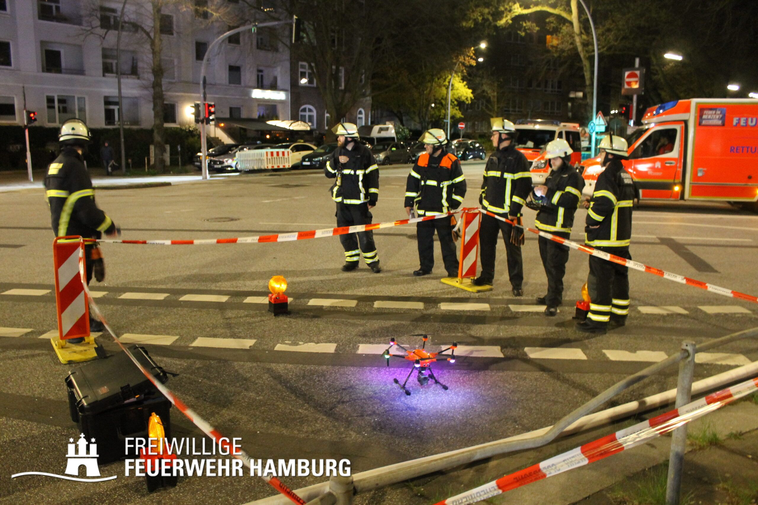 Nach etwa zwei Stunden konnte das Feuer bis auf einzelne Glutnester im Dachbereich gelöscht werden. Hierbei unterstützte die FF Eppendorf bei der Aufnahme der Dachhaut. Die FF Wandsbek-Marienthal setzte ihre Drohne mit Wärmebildkamera zur Suche von Glutnestern ein und stellte mit ihrem GW-Fernmeldeausstattung und dem Anhänger Führung und Lage Räumlichkeiten für die Einsatzleitung. Durch die FF Ottensen-Bahrenfeld wurden Snacks und Getränke an die Einsatzkräfte ausgeteilt.