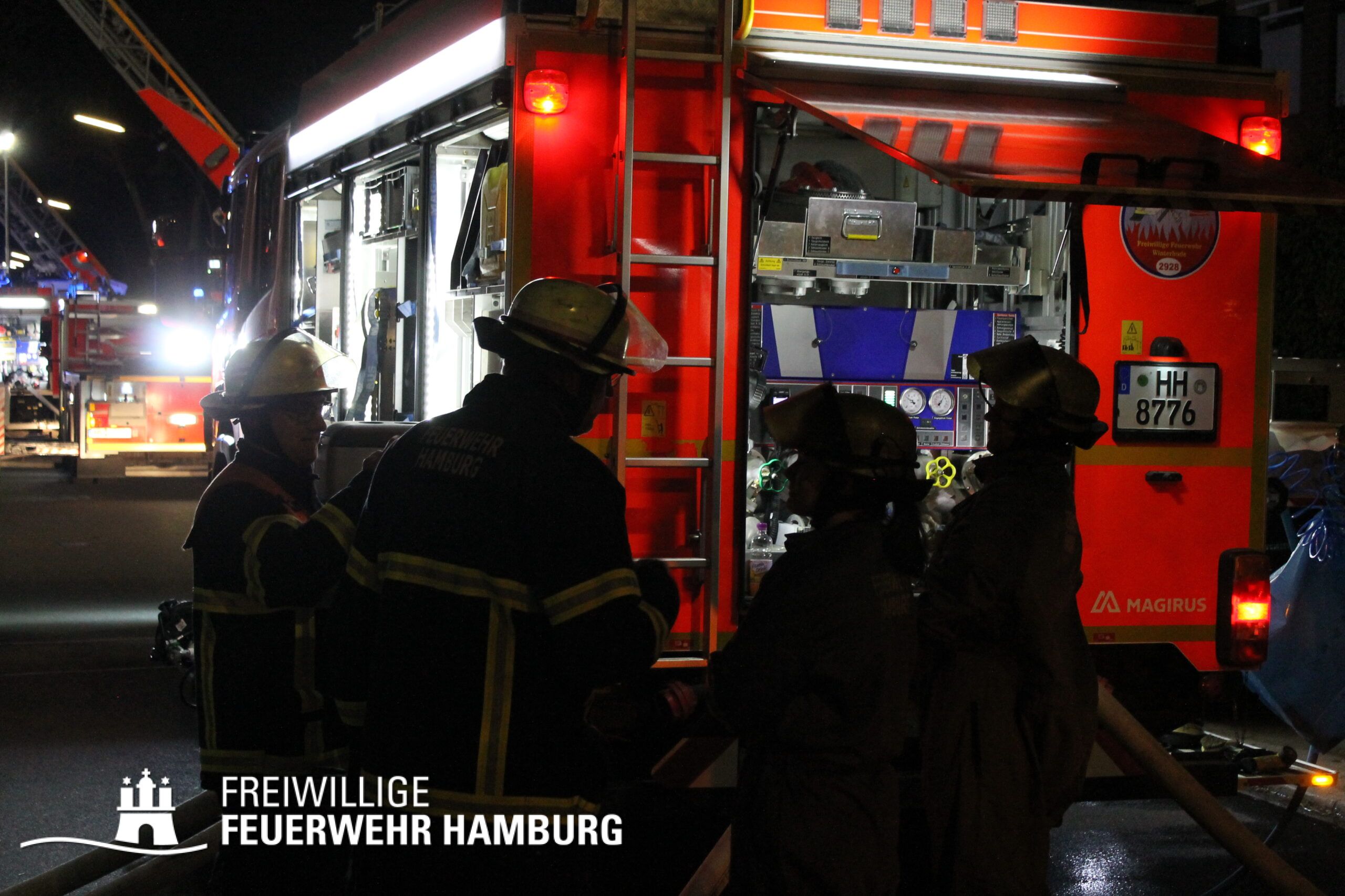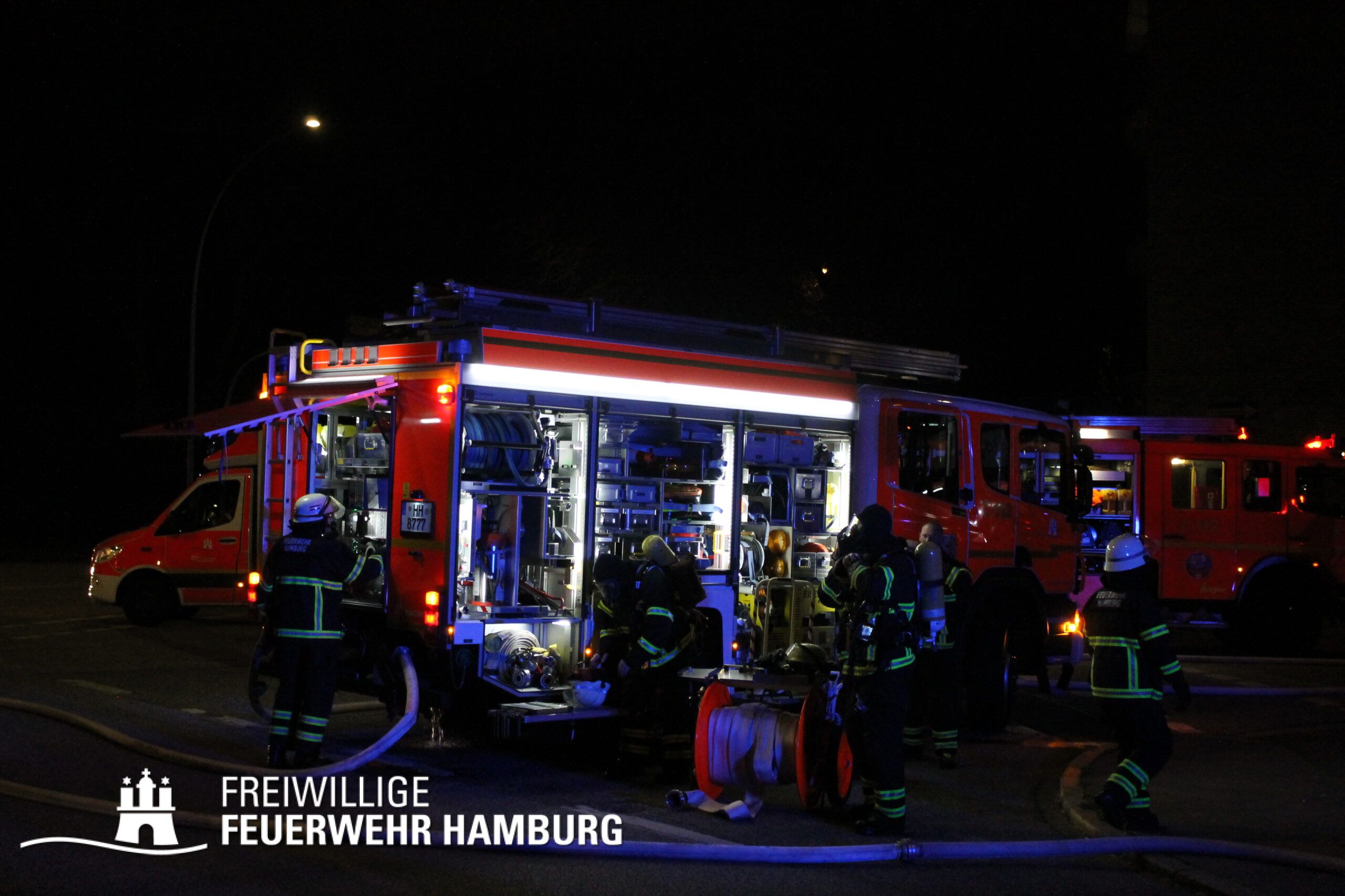 Nach ca. 7. Stunden konnten die letzten Einsatzkräfte die Einsatzstelle verlassen. Die Feuerwehr Hamburg war mit ca. 130 Kräften der Berufsfeuerwehr und der Freiwilligen Feuerwehr vor Ort.