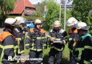 Die FF Sasel führte mit den Kräften der Berufsfeuerwehr Sasel einen umfassenden Löschangriff durch und stellte mehrere Trupps unter Atemschutz. Zusätzlich bauten sie eine Wasserversorgung auf und nahmen Teile des Daches über eine Steckleiter auf. Die FF Volksdorf unterstützte ebenfalls mit Atemschutzgeräteträgern bei der Brandbekämpfung und den Nachlöscharbeiten. Aufgrund der Anstrengung der Einsatzkräfte bei Sonne entschied sich der Bereichsführer Sven Kasch schnell dazu, die Verorgungs-Einheit der FF Ottensen-Bahrenfeld mit Kaltgetränken und Snacks anzufordern. Weiterhin koordinierte Sven Kasch die Kräfte der Freiwilligen Feuerwehr vor Ort.