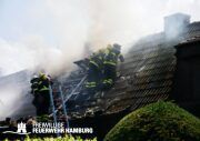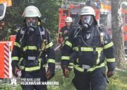 Am Dienstagmittag kam es in einer Doppelhaushälfte in Bramfeld zu einem Feuer. Starker Wind sorgte hier für ein immer wieder anfachen des Feuers. Ein Übergreifen auf die andere Doppelhaushälfte konnte durch das schnelle Handeln der Einsatzkräfte verhindert werden.