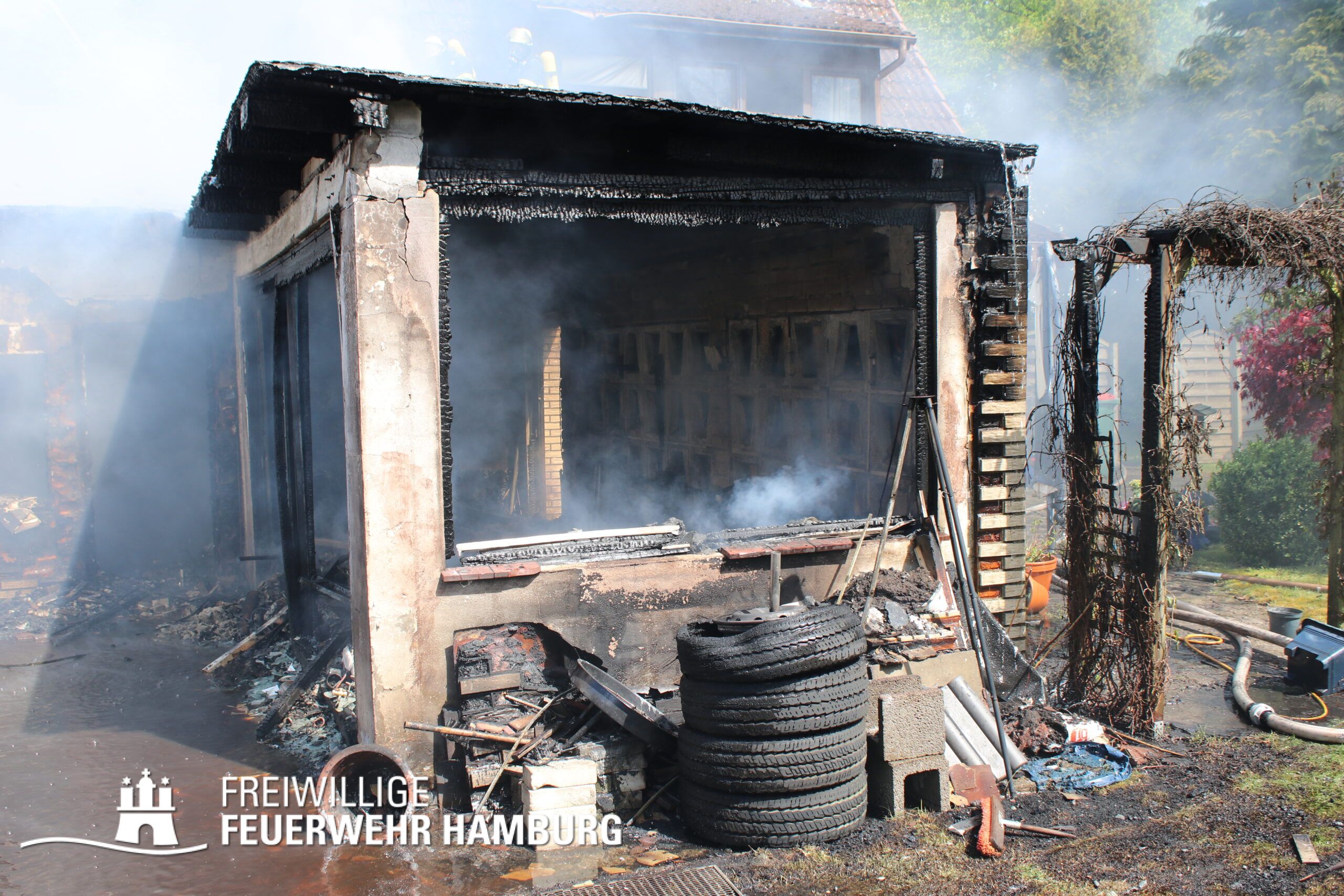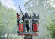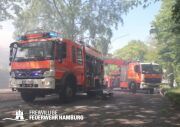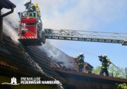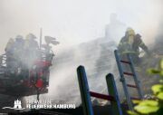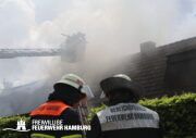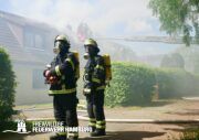 Am Dienstagmittag kam es in einer Doppelhaushälfte in Bramfeld zu einem Feuer. Starker Wind sorgte hier für ein immer wieder anfachen des Feuers. Ein Übergreifen auf die andere Doppelhaushälfte konnte durch das schnelle Handeln der Einsatzkräfte verhindert werden.