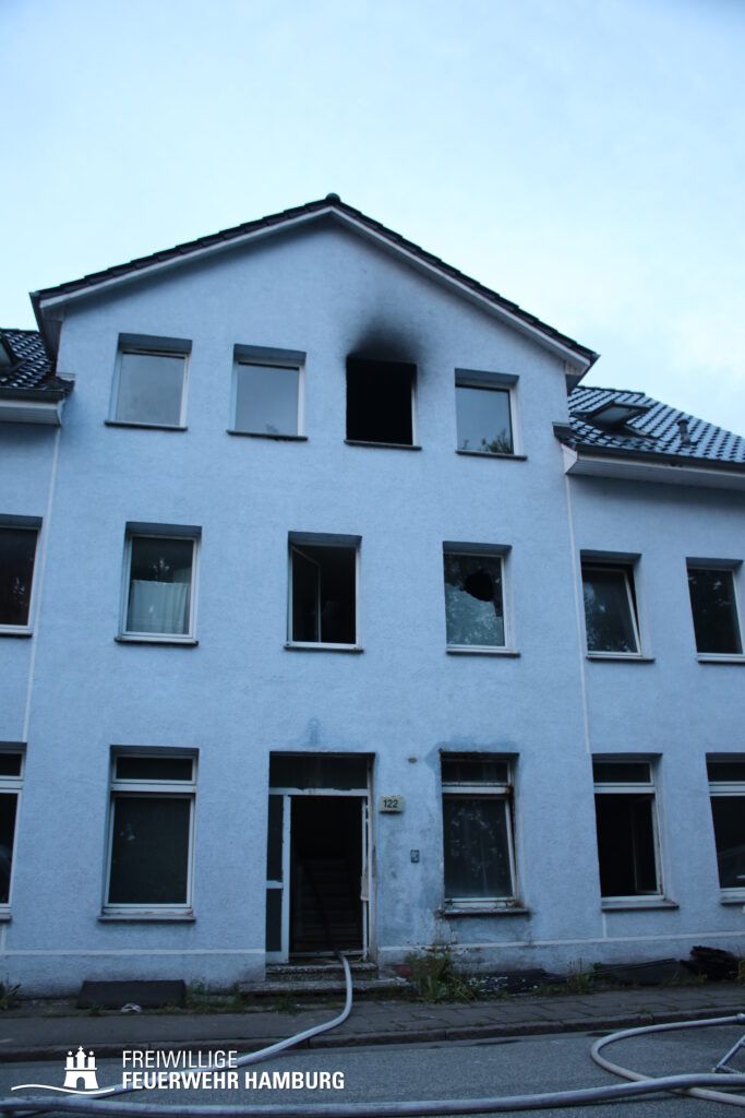 Am Montagabend erhielt die Rettungsleitstelle der Feuerwehr Hamburg mehrere Notrufe aus dem Niedergeorgswerder Deich im Stadtteil Wilhelmsburg. Mehrere Anrufer meldeten Feuer und Rauch aus dem Dach eines leerstehenden Gebäudes. Aufgrund der Anzahl der Anrufer erhöhte der Lagedienst der Einsatzzentrale daher das Alarmstichwort auf FEU2 (Feuer, 2 Löschzüge).