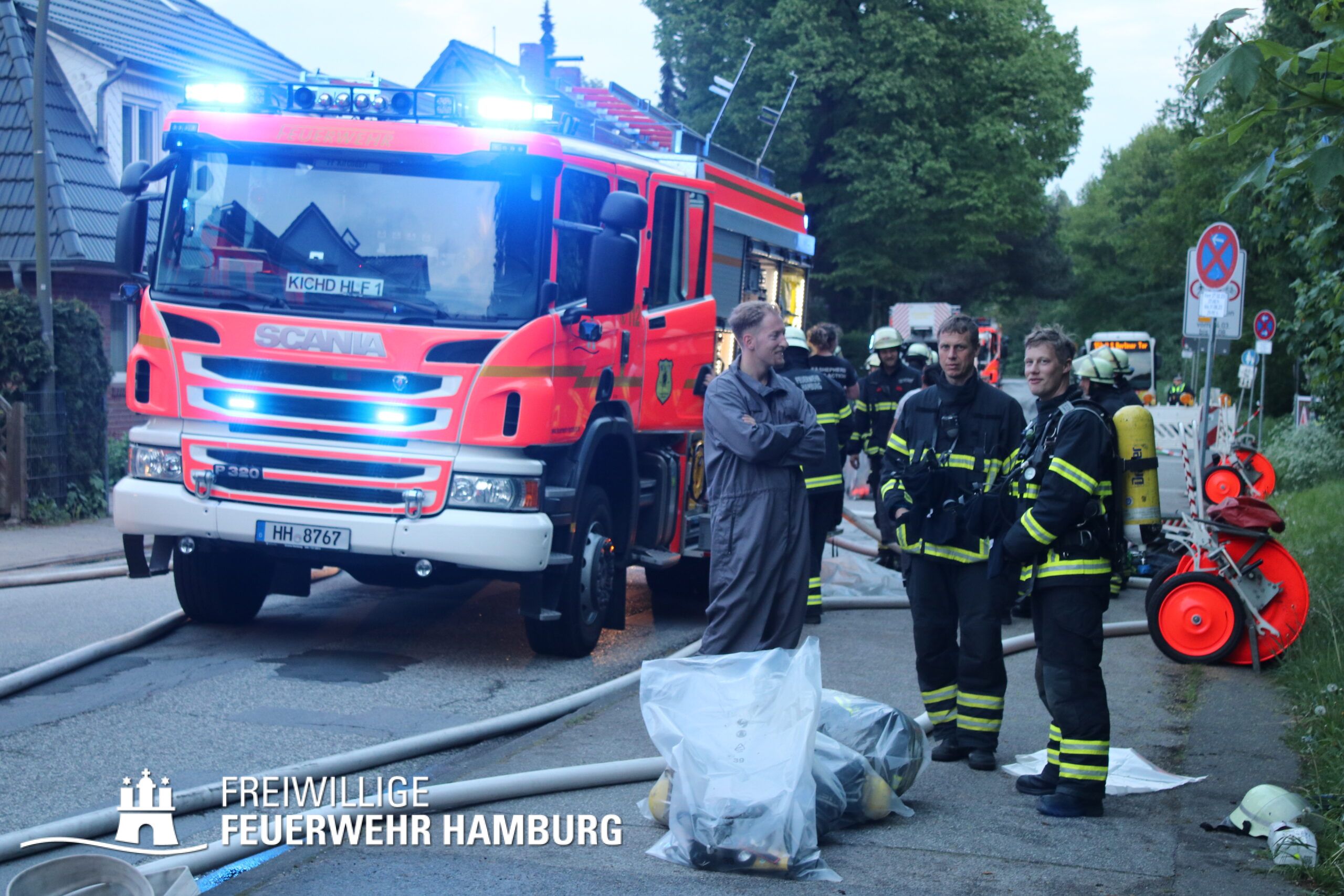 Am Montagabend erhielt die Rettungsleitstelle der Feuerwehr Hamburg mehrere Notrufe aus dem Niedergeorgswerder Deich im Stadtteil Wilhelmsburg. Mehrere Anrufer meldeten Feuer und Rauch aus dem Dach eines leerstehenden Gebäudes. Aufgrund der Anzahl der Anrufer erhöhte der Lagedienst der Einsatzzentrale daher das Alarmstichwort auf FEU2 (Feuer, 2 Löschzüge).