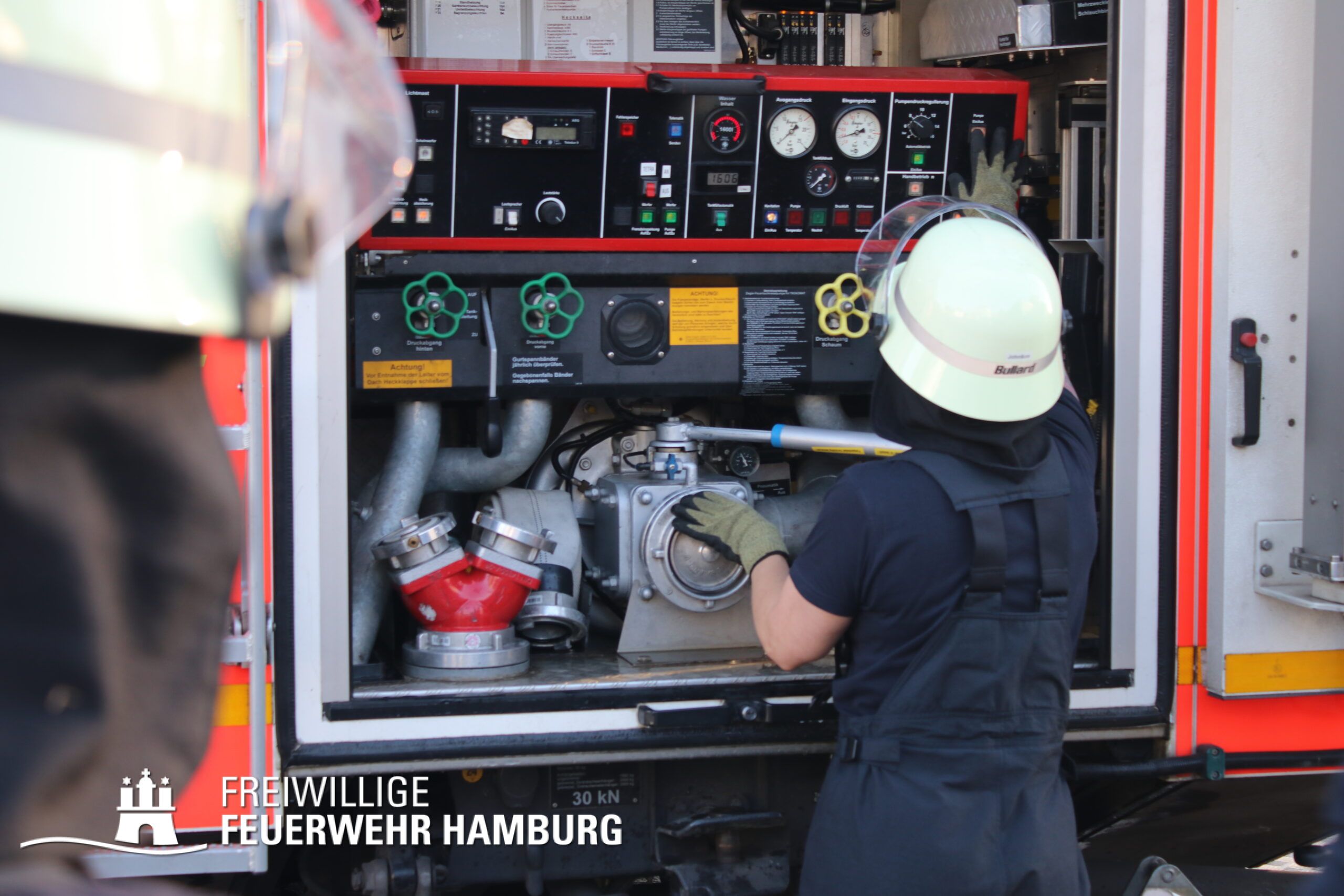 Pumpe, Aggregate und die Technik des Löschfahrzeuges bedienen muss gelernt sein.