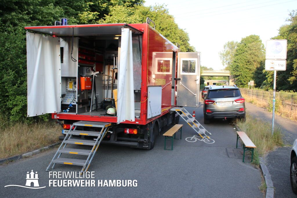Die FF Kirchsteinbek war mit beiden Löschfahrzeugen auf der vorderen Seite des Feldes eingesetzt. Hier unterstützten die GW-R1 der FF Neudorf und FF Billstedt Horn bei der Brandbekämpfung. Die FF Öjendorf und FF Neudorf stellten mit ihren LF 16 KatS eine Wasserversorgung her. Die FF Billstedt-Horn übernahm auf der Feldrückseite die Brandbekämpfung gemeinsam mit der BF Billstedt und dem LF 16/12 der FF Öjendorf. Die FF Bille setzte von ihrem GW-FM ihre Drohne für Luftaufnahmen ein. Der GW-Versorgung der FF Eissendorf sorgte mit Snacks und Kaltgetränken für etwas Erholung an der Einsatzstelle. Der Bereichsführer Bergedorf führte gemeinsam mit dem Landesbereichsführer Vertreter Johannes Engmann die Einsatzleitung seitens der FF Hamburg.