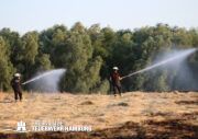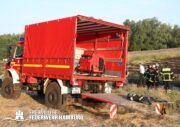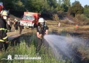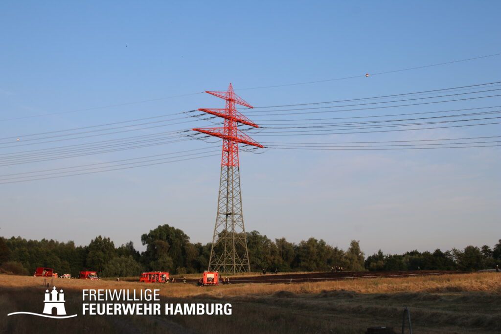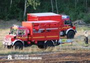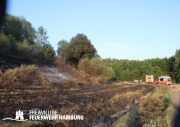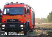 Die momentane Trockenheit und Hitze verlangt unseren Feuerwehren in Hamburg gerade viel ab. Immer wieder kommt es zu Bränden auf Wiesen oder in Wäldern. So auch heute gegen kurz vor 18 Uhr. Die Leitstelle alarmierte die zunächst die FF Kirchsteinbek gemeinsam mit der Löschgruppe der Berufsfeuerwehr Billstedt, ergänzt wurde das ganze durch den GW-R1 mit Waldbrandkomponente der FF Billstedt-Horn. Eine richtige Anfahrt gestaltete sich schwierig, so dass etwas länger die richtige Zuwegung gesucht werden musste. Vor Ort wurde ein Feuer auf einem Feld mit massiver Brandausbreitung vorgefunden. Sofort wurde ein Löschangriff vorgenommen und weitere Kräfte nachalarmiert. Das Feld brannte auf etwa 20 000qm und drohte sich weiter auszubreiten. Über einen Feldweg gab es einen Flammenüberschlag auf einen Wall sowie andere Teile eines Feldes.