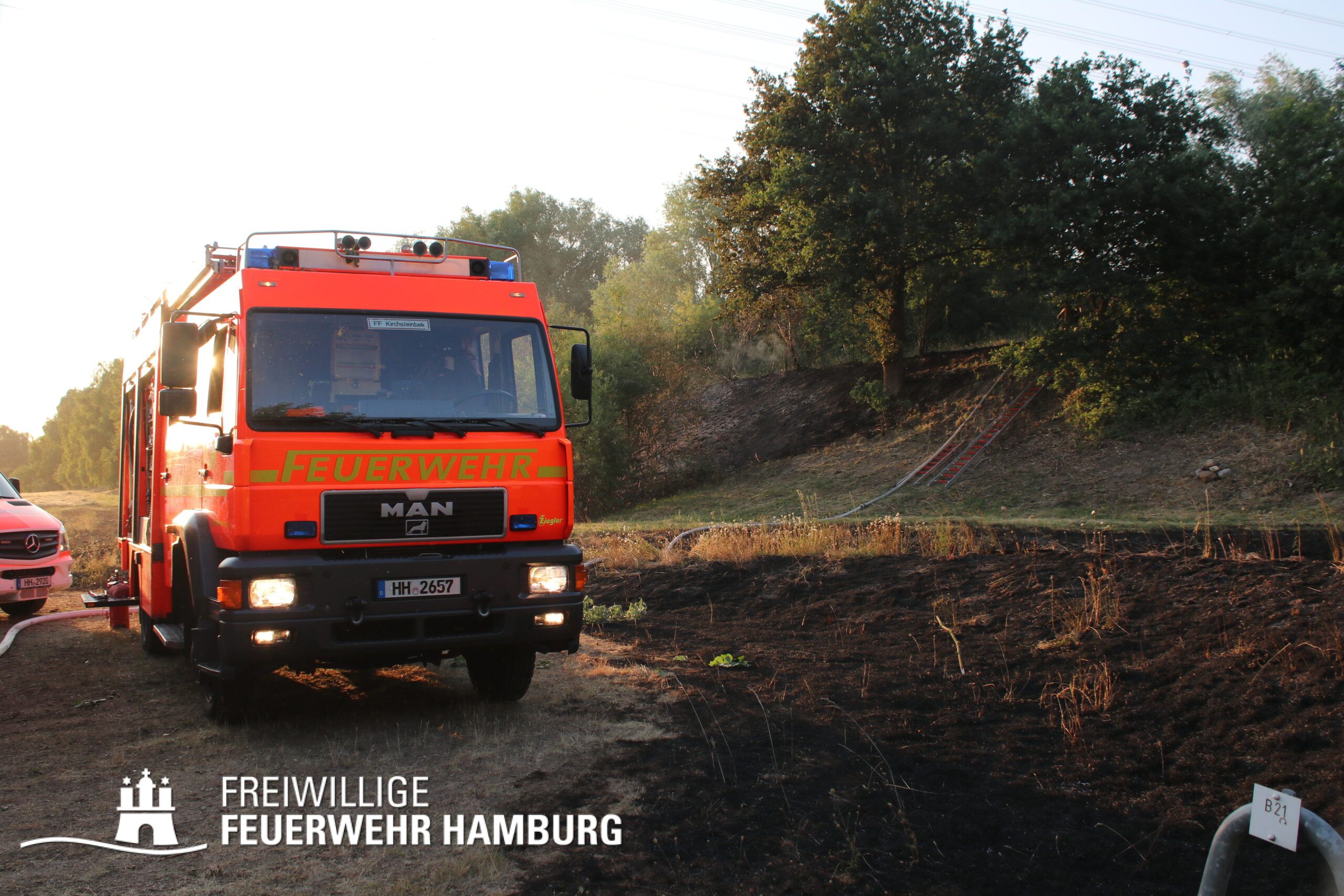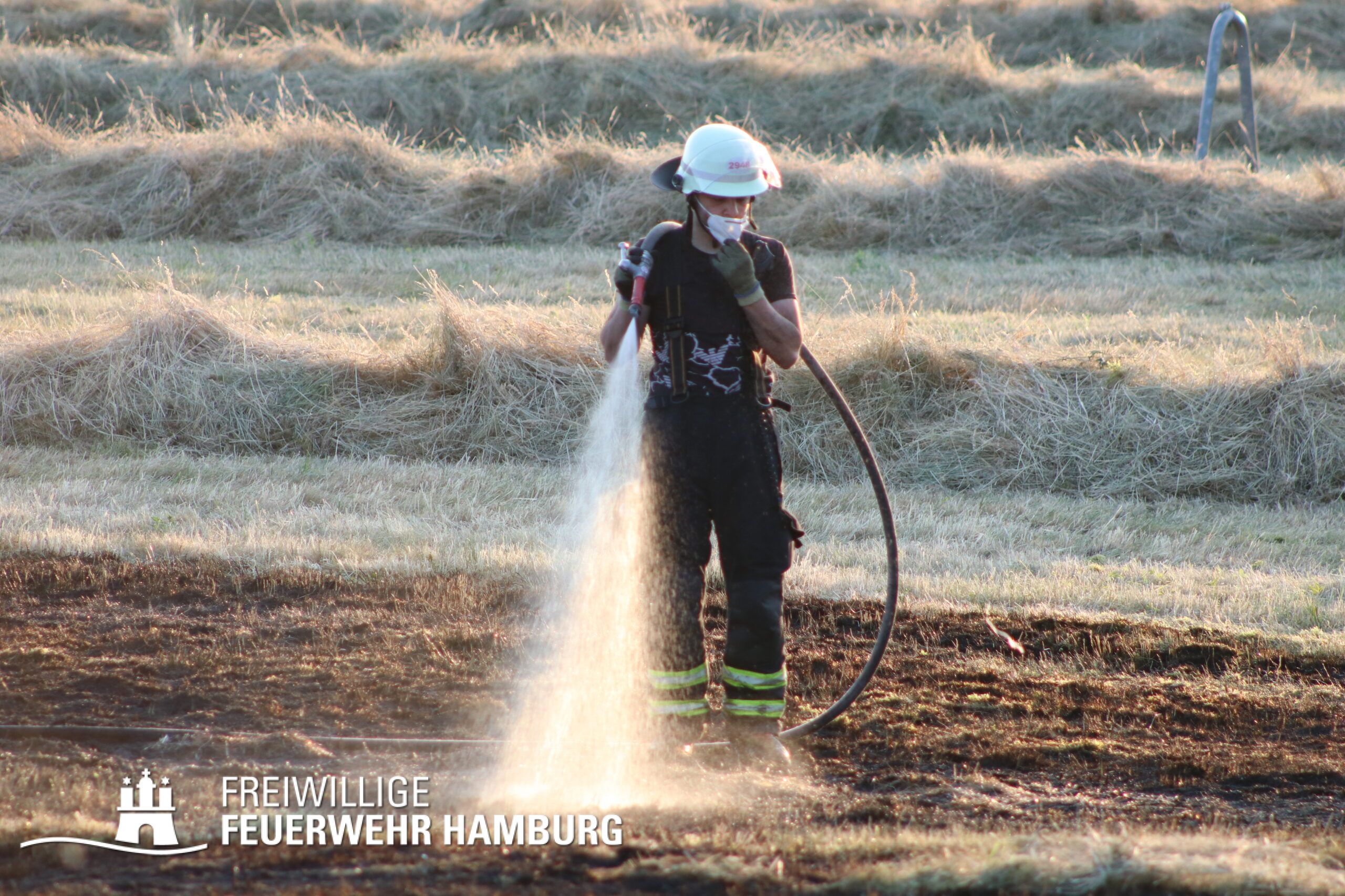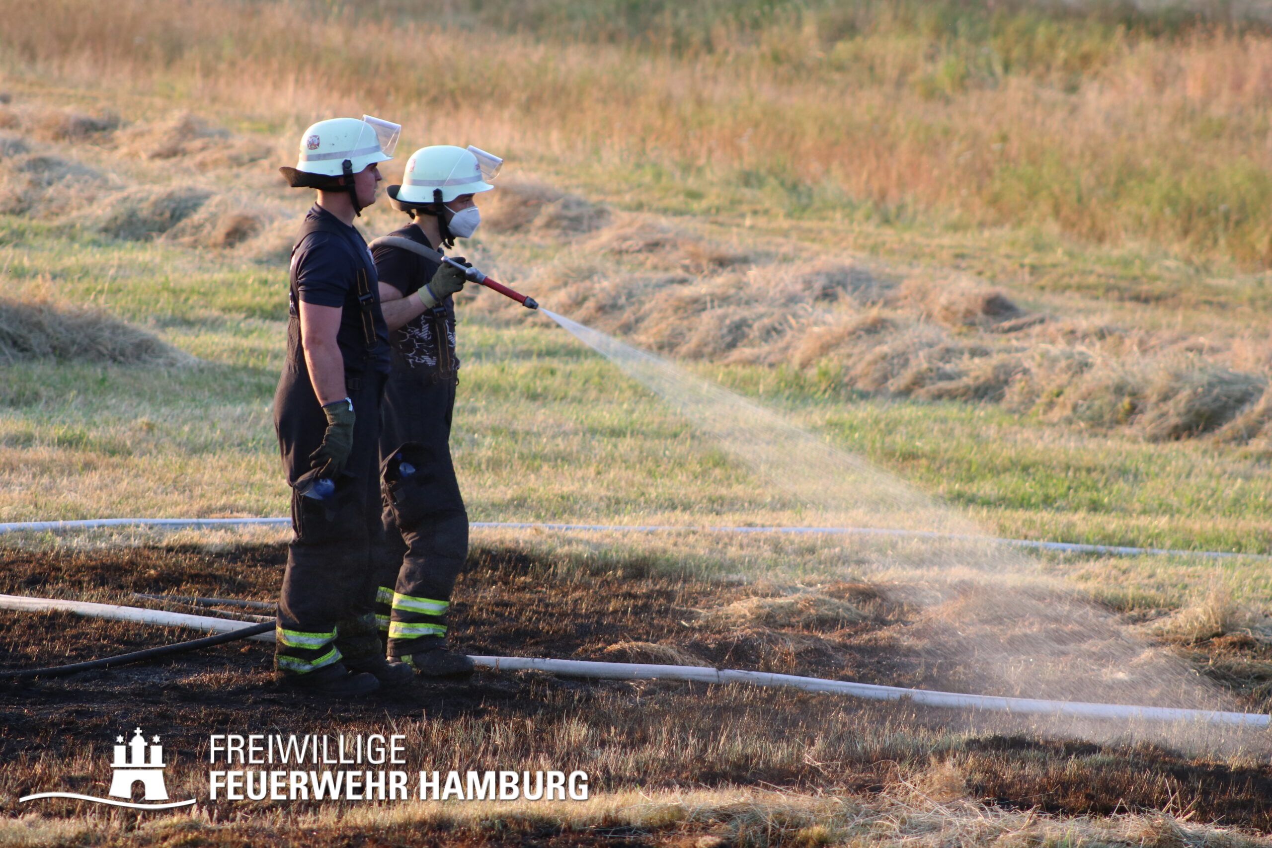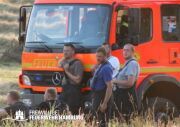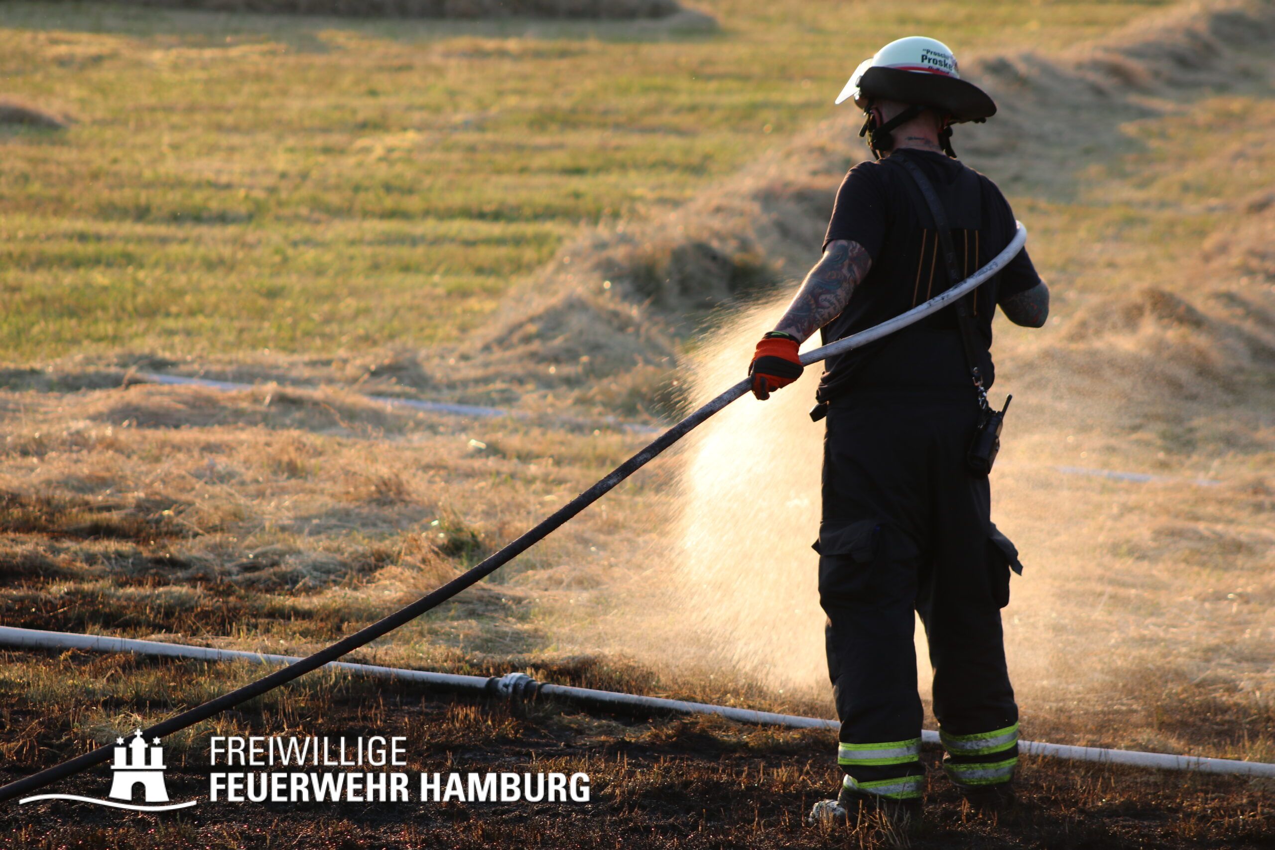 Die momentane Trockenheit und Hitze verlangt unseren Feuerwehren in Hamburg gerade viel ab. Immer wieder kommt es zu Bränden auf Wiesen oder in Wäldern. So auch heute gegen kurz vor 18 Uhr. Die Leitstelle alarmierte die zunächst die FF Kirchsteinbek gemeinsam mit der Löschgruppe der Berufsfeuerwehr Billstedt, ergänzt wurde das ganze durch den GW-R1 mit Waldbrandkomponente der FF Billstedt-Horn. Eine richtige Anfahrt gestaltete sich schwierig, so dass etwas länger die richtige Zuwegung gesucht werden musste. Vor Ort wurde ein Feuer auf einem Feld mit massiver Brandausbreitung vorgefunden. Sofort wurde ein Löschangriff vorgenommen und weitere Kräfte nachalarmiert. Das Feld brannte auf etwa 20 000qm und drohte sich weiter auszubreiten. Über einen Feldweg gab es einen Flammenüberschlag auf einen Wall sowie andere Teile eines Feldes.