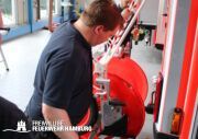 Der Donnerstag stand ganz im Zeichen der Einweisung. Hier ging es nach dem Frühstück los, sich mit der Technik der Kabine, sprich dem Mercedes Fahrgestell, auseinander zu setzen. Nach umfangreichen Erklärungen durch einen Mitarbeiter der Firma Schlingmann bekamen alle Maschinisten ihre Einweisung an die Pumpe des HLF20. Auch hier gibt es einige Neuerungen zu den alten Pumpen. Z.b. verfügt das Fahrzeug über einen fest verbauten 120L Schaumtank. Die Leitern können über eine Leiterentnahmehilfe vom Dach geholt werden, ohne das Dach zu betreten. Da die Maschinisten aus den Wehren ihre Wehr auf das Fahrzeug schulen müssen, ist diese Einweisung sehr wichtig. Gegen Mittag ging es dann aufgeteilt auf die Fahrzeuge in Richtung Hamburg. Hier wurden 2 Fahrzeuge bei Mercedes-Benz und 1 Fahrzeug beim Technikzentrum der Feuerwehr Hamburg abgestellt, um noch ein paar restliche kleine Arbeiten durchzuführen. Sobald die Fahrzeuge dort fertig sich, erfolgt am Technikzentrum eine Einweisung für alle Maschinisten der Wehren. Diese wird durch die Kameraden des Stabes FF03 begleitet und durchgeführt.