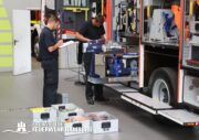 Der Mittwoch startete mit einem gemeinsamen Frühstück im Hotel. Danach ging es wieder zu den Fahrzeugen, an den die Firma Schlingmann die letzten Restarbeiten behoben hatte. Nach einer kurzen Kontrolle kamen schon die 3 Maschinisten der FF Kraul, FF Neudorf und FF Spadenland gemeinsam mit Sven Gerdau und Adrian Pajonk vom Stab FF03 aus Hamburg angereist. Nach einer kurzen Einweisung ging es für die Maschinisten schon an ihr Fahrzeug, um z. B. die Pumpeinrichtung zum Kippen des Führerhauses zu testen. Nach dieser schweißtreibenden Arbeit ging es zum Prüfen auf Vollständigkeit der Beladung. Gemeinsam mit je einem Kameraden aus dem Stab wurde mit Beladelisten jedes Fach des neuen HLF durchgeschaut und Geräte auf Funktion getestet. Da dieses Fahrzeug viele Neuerungen hat, durften neue Geräte auch gleich ausprobiert werden. Durch die umfangreiche Beladung dauerte dies schon bis in den späten Nachmittag. Abends wurden im Hotel beim Abendessen Fachgespräche ausgetauscht.