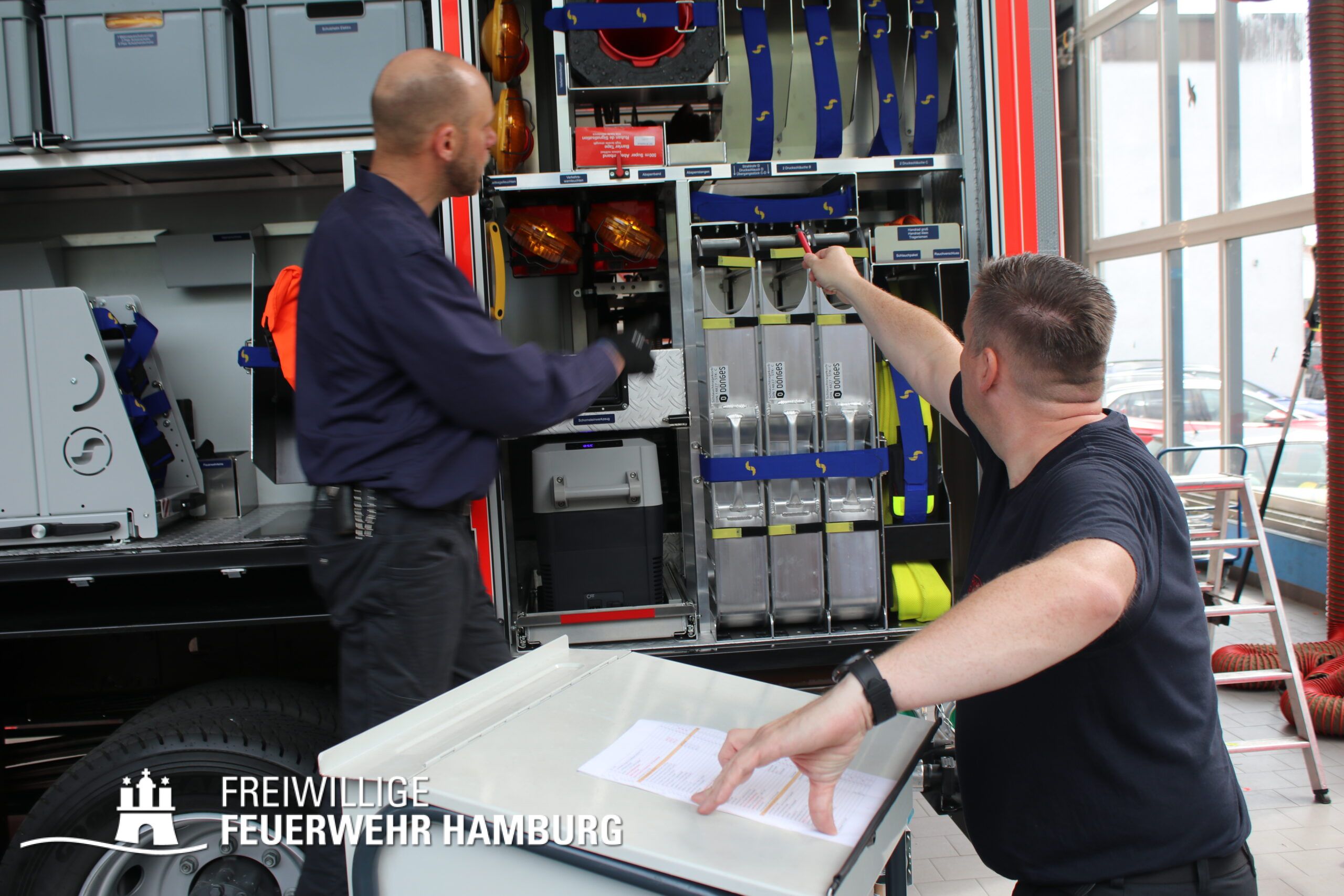 Solch eine Beschaffung von neuen Einsatzfahrzeugen bedarf einer Menge Arbeit, vor allem wenn dies durch Ehrenamtliche passiert. Momentan befinden sich fast jeden Monat 6 Kameraden oder Kameradinnen der FF Hamburg 3 Tage lang in Dissen bei der Firma Schlingmann, um dort Fahrzeuge abzuholen. Die Planung für die neuen HLF20 dauerte ca. 2 Jahre. Auf Messen werden sich von Zeit zu Zeit immer mal Fahrzeuge von diversen Herstellern angeschaut um zu vergleichen, was der Markt so hergibt. Als kleine Vorgabe gab es bei diesem Fahrzeug die neue Generation HLF der Berufsfeuerwehr. Hier wurde sich eng ausgetauscht, damit die Beladungen der BF und FF Fahrzeuge beinahe identisch ist. Dazu kommt noch, dass man sich bei der Auswahl der Beladung an der DIN-Norm für Hilfeleistungslöschfahrzeuge orientiert. Hier wird sich auch mit der Abteilung F02 ausgetauscht, welche sich um Einsatztaktiken kümmert. Verteilt werden die Fahrzeuge bis auf kleine Ausnahmen in der Reihenfolge, wie die alten MAN ausgeliefert wurden. Fast die komplette Beladung wird neu mit dem Fahrzeug ausgeliefert. Die alten Fahrzeuge gehen dann als Reserve an die Berufsfeuerwehr für Sonderbedarfe, Feuerwehrakademie oder werden über Zoll-Auktionen verkauft.