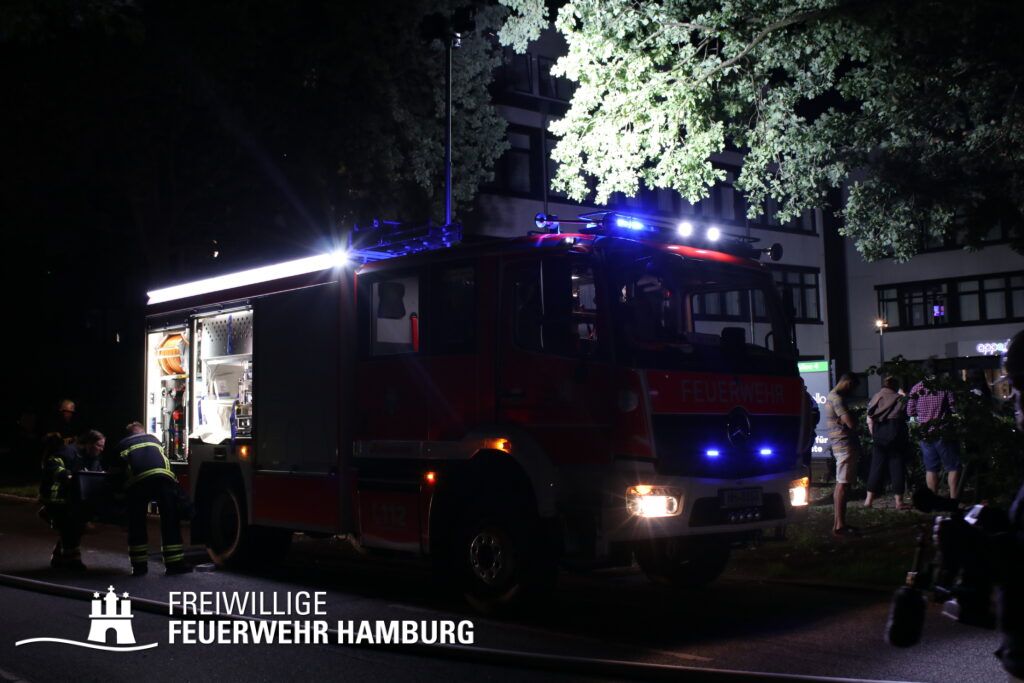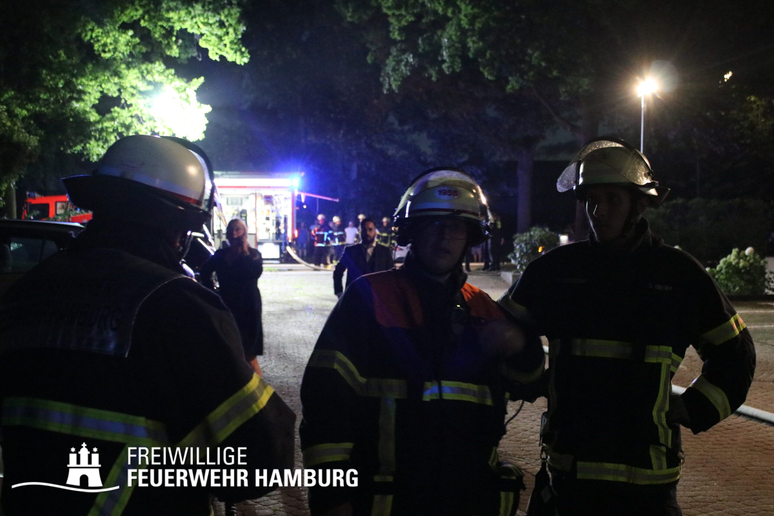 Noch während die BF Alsterdorf gemeinsam mit der FF Alsterdorf bei einer BMA Auslösung im Maienweg war, meldeten die ersten Anrufer das Feuer in der Sportallee. Sofort wurde die FF Groß Borstel alarmiert. Der Löschzug der BF Alsterdorf wurde umgehend über Funk von der Einsatzzentrale angesprochen, ob sie einen weiteren Einsatz übernehmen konnten. Da der Einsatz im Maienweg schon beendet war, übernahmen die Einsatzkräfte den Einsatz und der Zugführer der Berufsfeuerwehr ließ auch die FF Alsterdorf zuordnen. Noch auf der Anfahrt bestätigte der ZF der BF Alsterdorf eine starke Rauchentwicklung und Feuerschein gegenüber der Feuerwache der Berufsfeuerwehr und gab FEU2 (Feuer, 2 Löschzüge). Vor Ort übernahm die BF Alsterdorf den Löschangriff über die Seite der Alsterkrugchaussee gemeinsam mit dem 2 Zug der BF Stellingen. Die FF Groß Borstel und FF Alsterdorf übernahmen die Rückseite zur Sportallee hin. Von dort aus wurde ein Verteiler in Bereitstellung vor dem Hauseingang gesetzt. Mehrere PA-Trupps erkundeten das Hotel von Innen und evakuierten die Hotelgäste und Mitarbeiter.