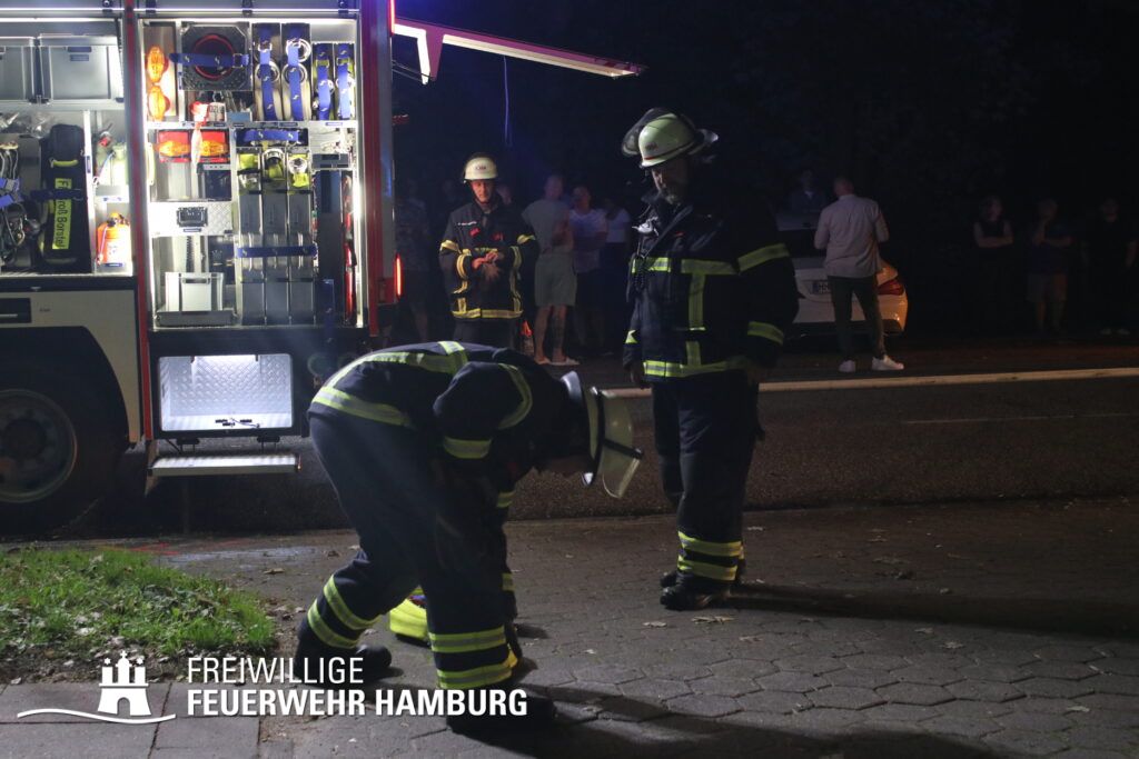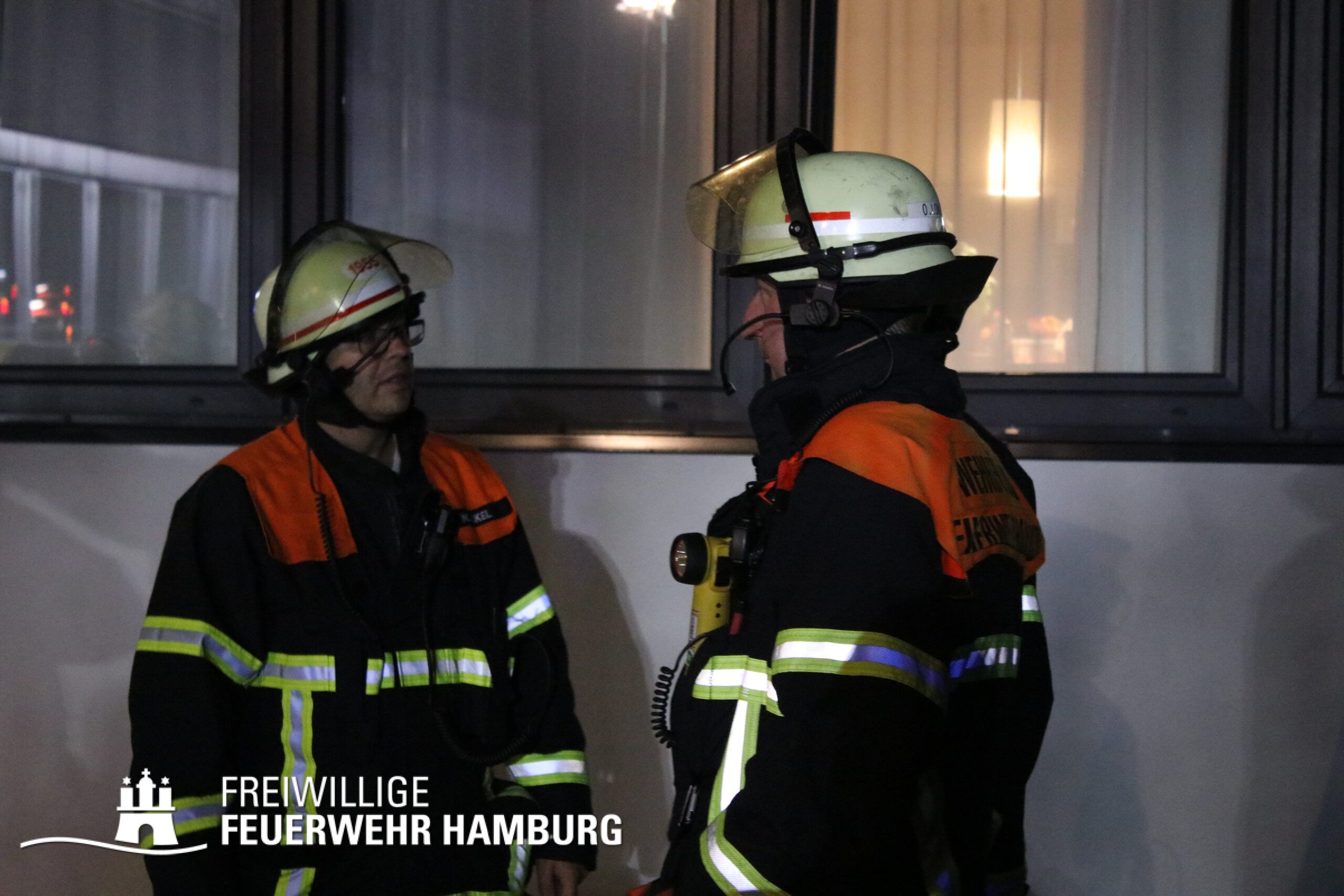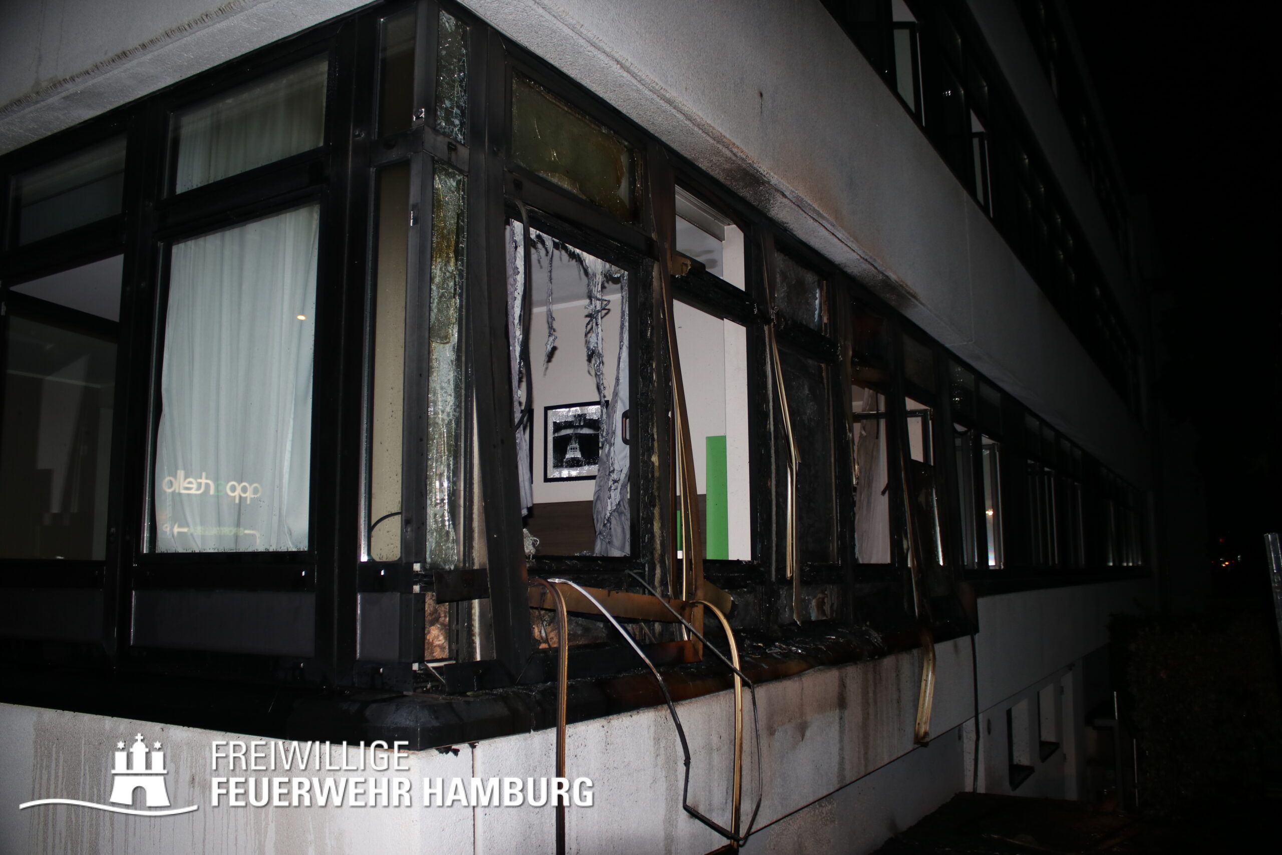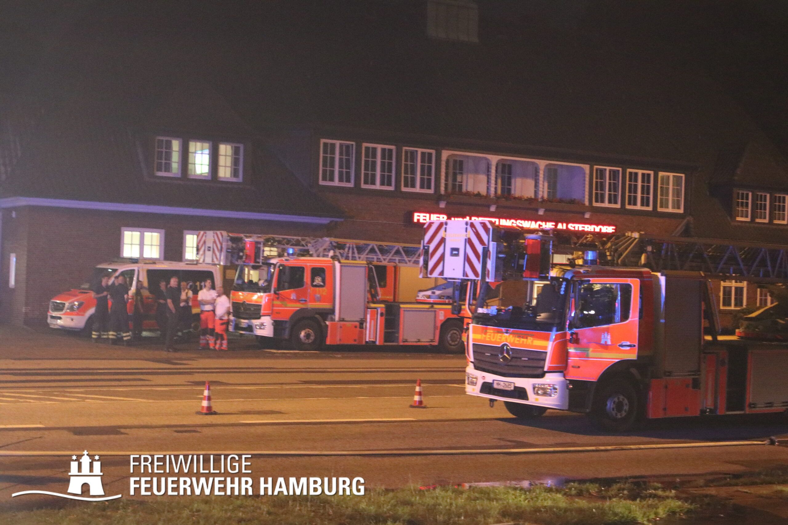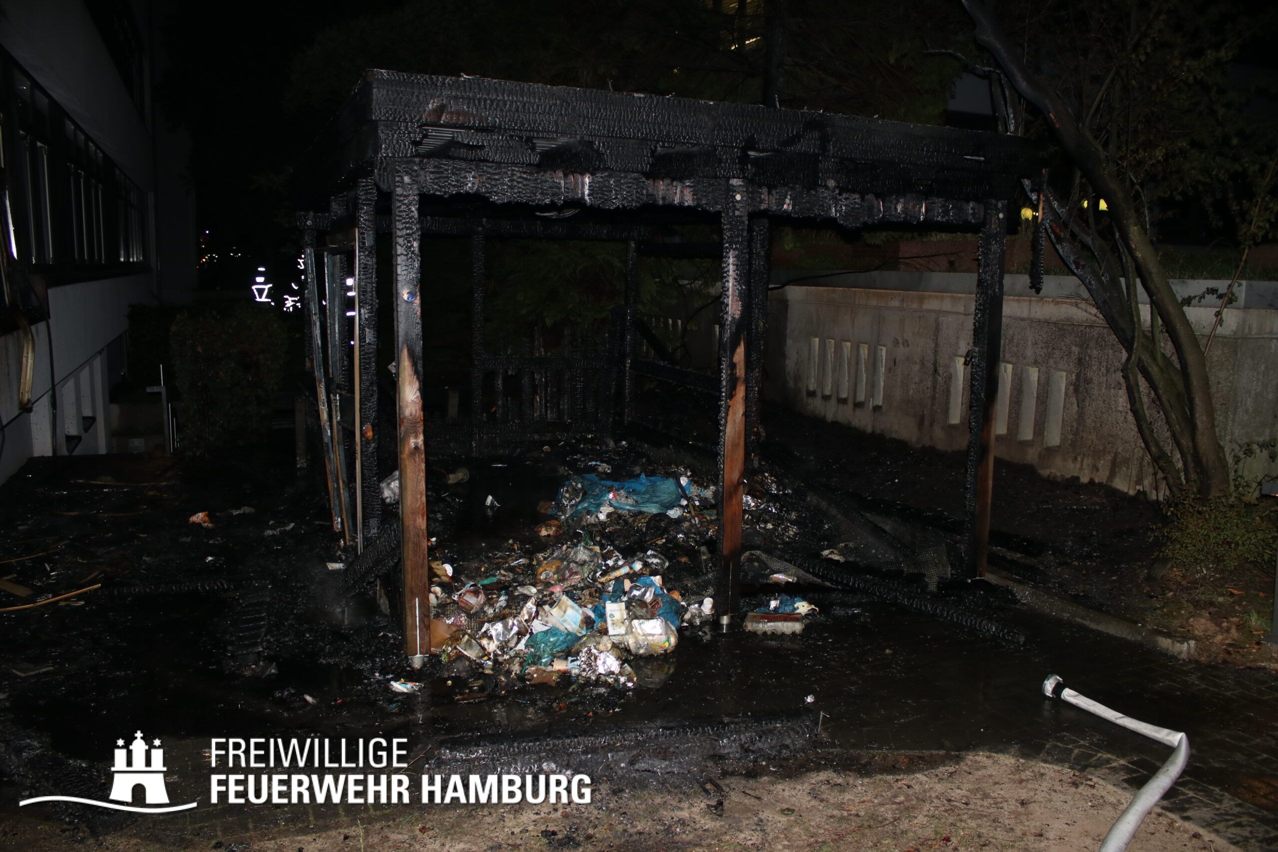 Neben einem Hotel an der Sportallee in Hamburg Groß Borstel brach ein Feuer in einem Unterstand für Müllcontainer aus. Schnell breitete sich das Feuer auf den gesamten Unterstand aus. Durch die enorme Hitzeentwicklung zerbarsten schon einige Fenster des Hotels. Durch die kaputten Scheiben drang schnell gefährlicher Brandrauch in einige Zimmer des Hotels. Schnell löste die Brandmeldeanlage des Gebäudes aus. Mitarbeiter und Gäste welche das Feuer schnell bemerkten versuchten noch, mit Feuerlöschern das Feuer einzudämmen.