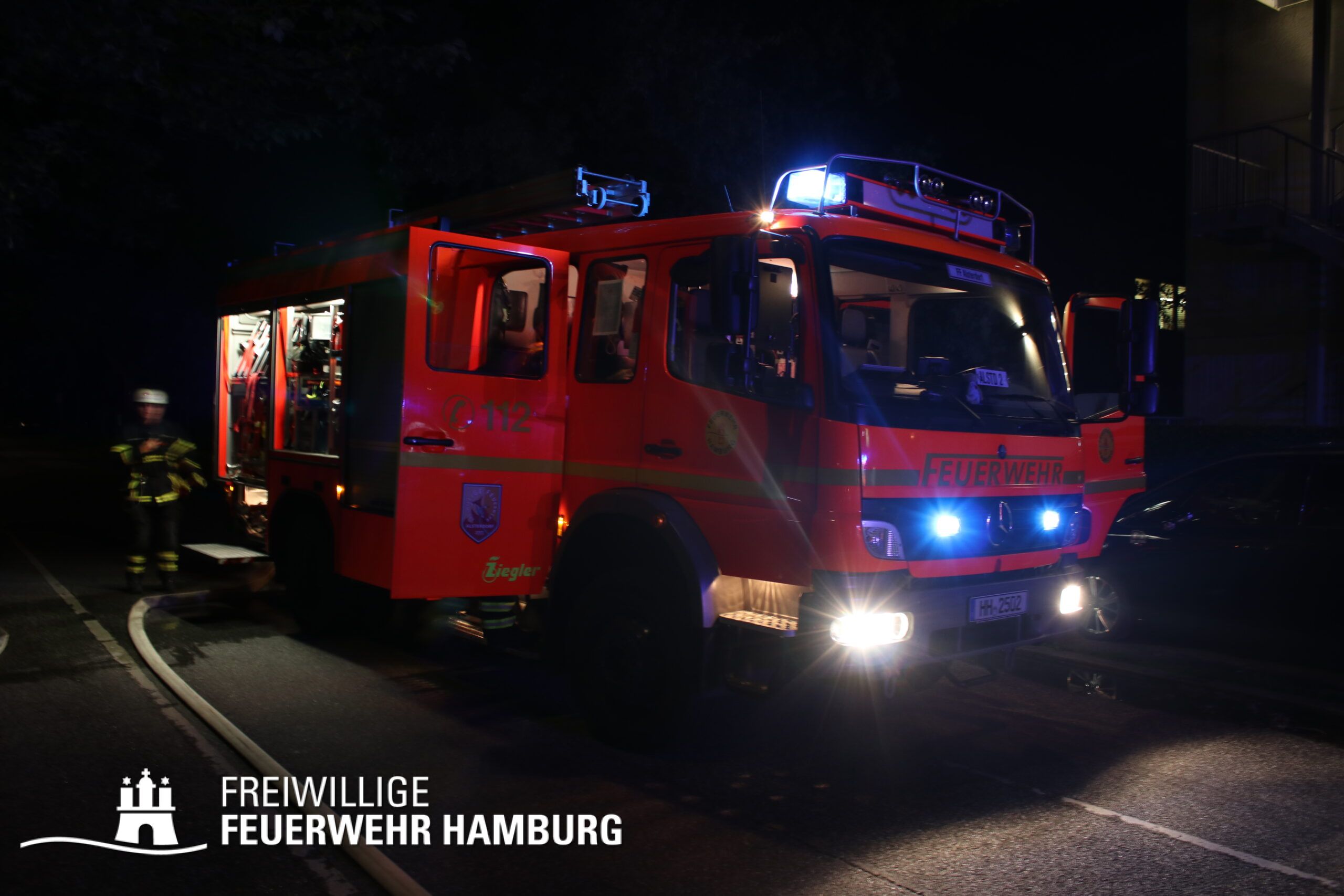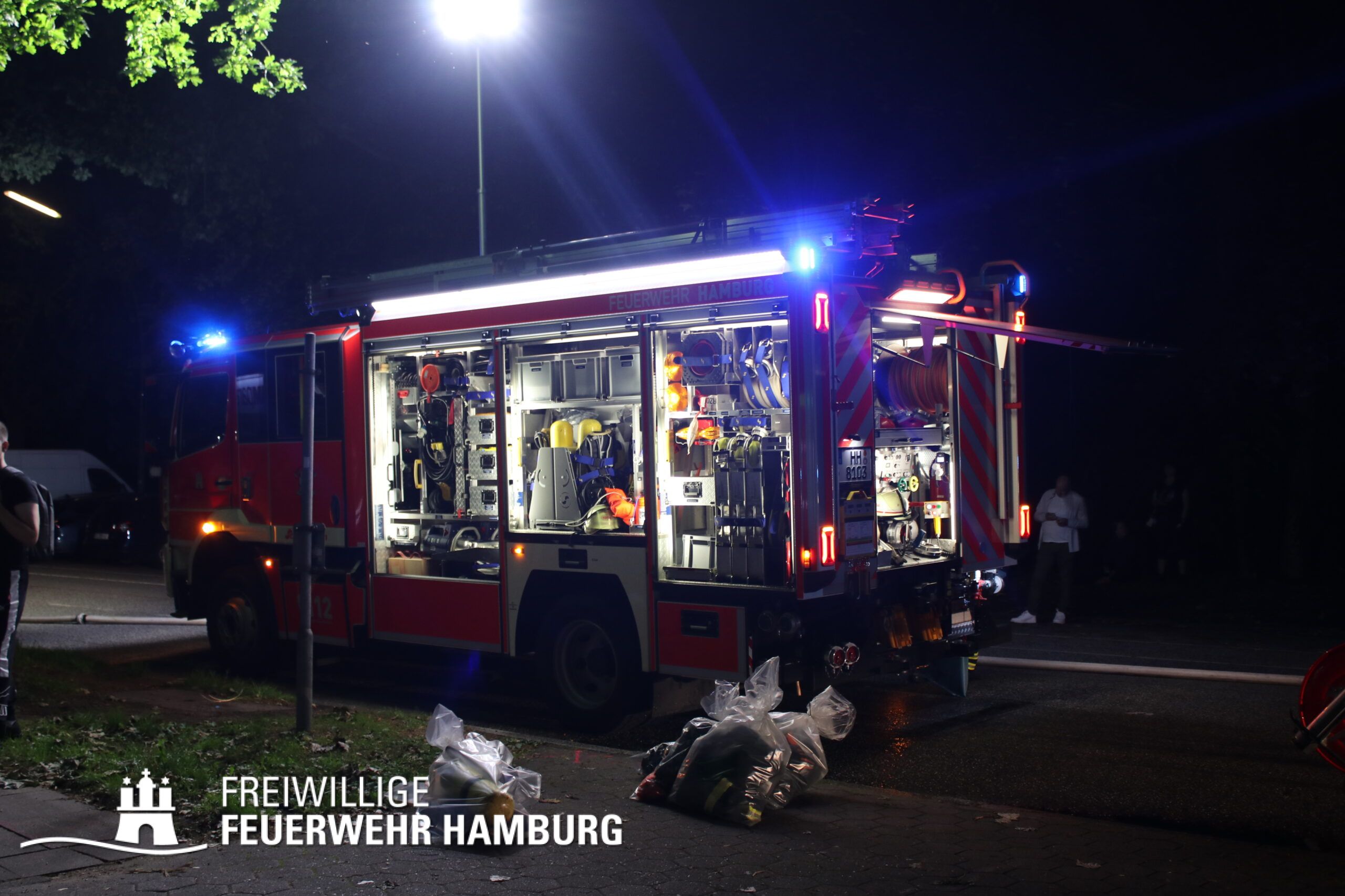 Noch während der Löschzug der BF Alsterdorf gemeinsam mit der FF Alsterdorf bei einer Brandmelderauslösung im Einsatz war, brach in einem Müllunterstand eines Hotels gegenüber der Berufsfeuerwache Alsterdorf ein Feuer aus.