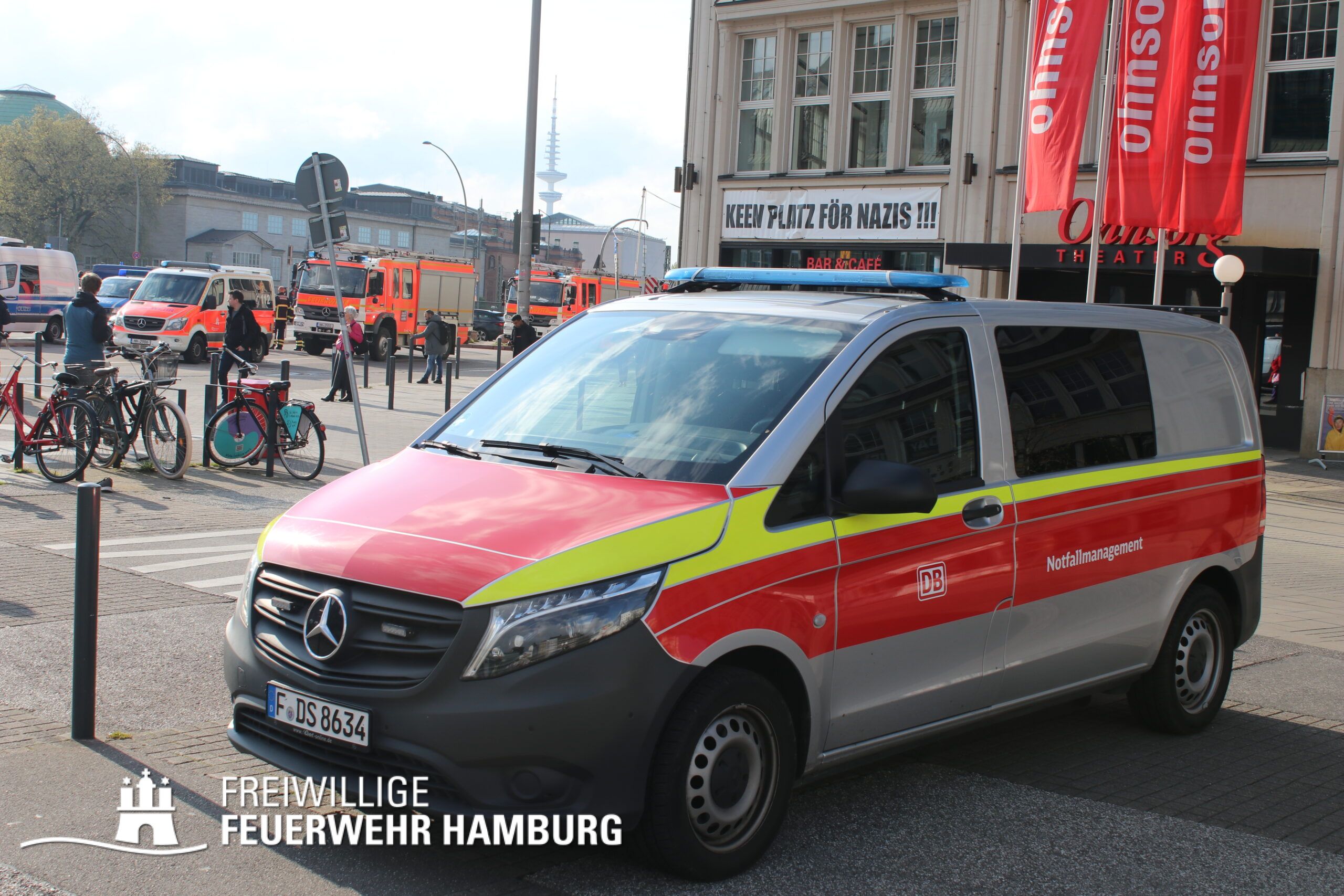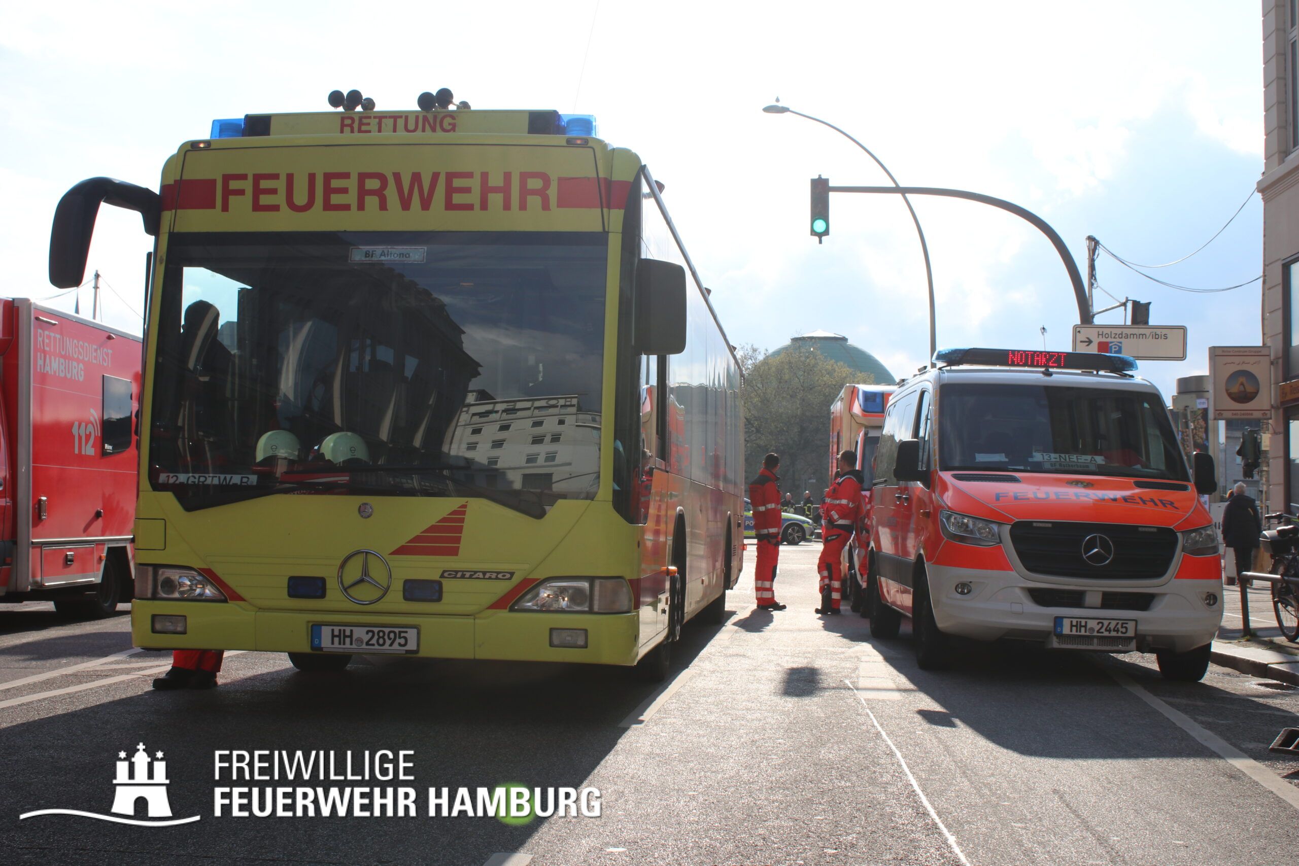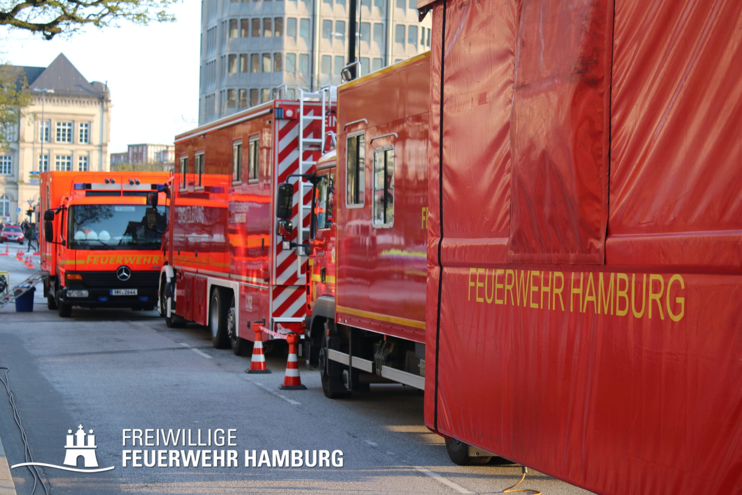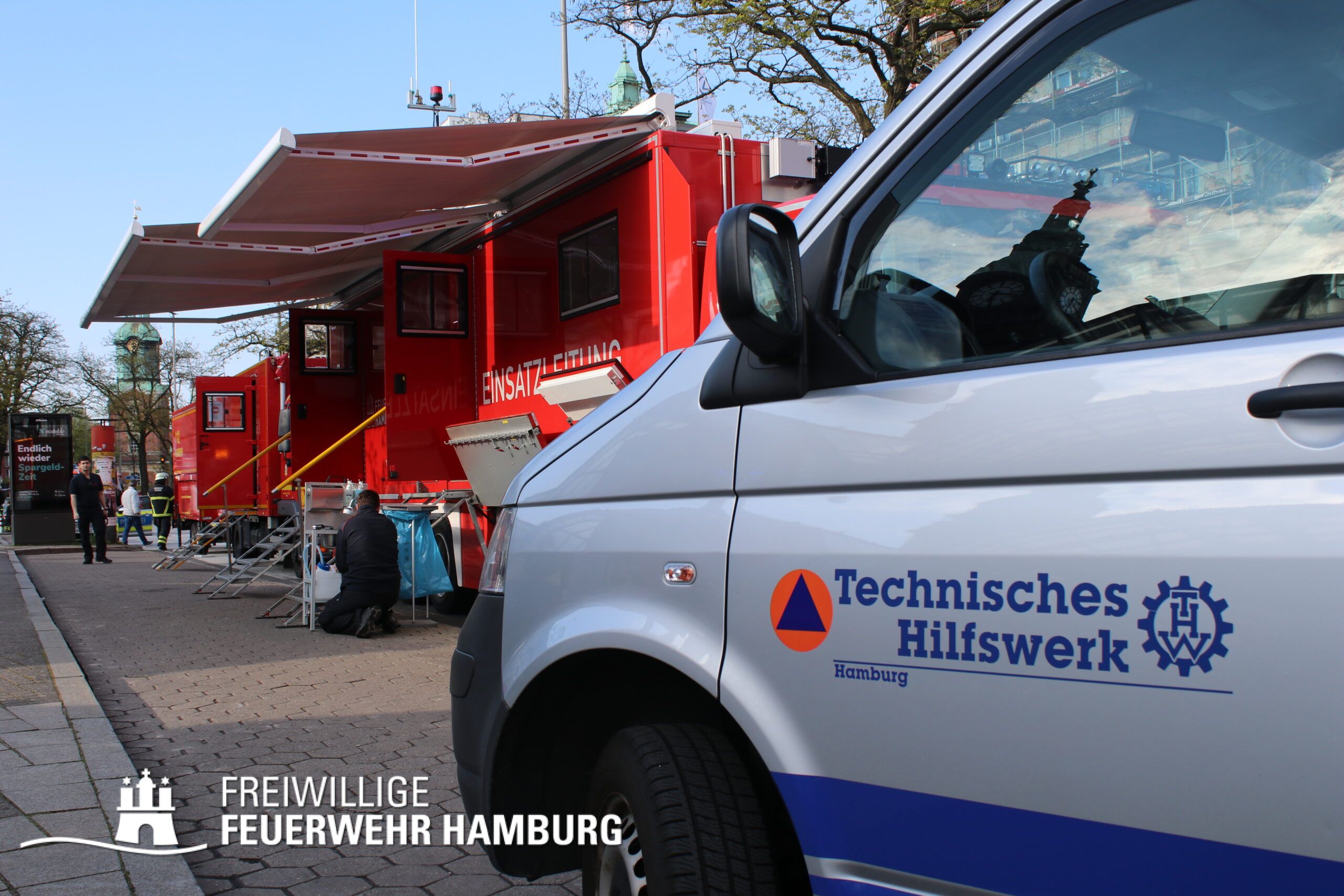 Da am Anfang auch mit austretenden Gefahrstoffen zu rechnen war, wurde ein CBRN-Zug alarmiert, dieser wurde durch den Bereichsführer Eimsbüttel geführt und bestand weiterhin aus dem Dekon-P und dem LF 16 KatS der FF Pöseldorf sowie dem CBRN-Erkkw und dem HLF20 der FF Bergedorf. Dieser Zug war vor Ort nicht erforderlich und konnte daher auf der Anfahrt abbrechen. Um die Einsatzleitung vor Ort zu organisieren wurde der ELW2 der FF Eimsbüttel sowie der GW-FM und der FüLa der FF Wandsbek-Marienthal alarmiert. Die FF Wandsbek-Marienthal ließ außerdem über ihre Drohne Aufnahmen der gesamten Einsatzstelle machen. Der Bereichsführer Wandsbek war vor Ort als Abschnittsleiter für die technische Einsatzleitung eingesetzt. Die FF Ottensen-Bahrenfeld versorgte alle Einsatzkräfte vor Ort mit Snacks und Getränken aus ihrem GW-VSG.