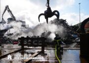 Über betriebseigene Bagger mit Greifarmen konnten Mitarbeiter in enger Zusammenarbeit mit der Feuerwehr die Schrotthaufen auseinander ziehen, damit diese gezielt abgelöscht werden konnten.