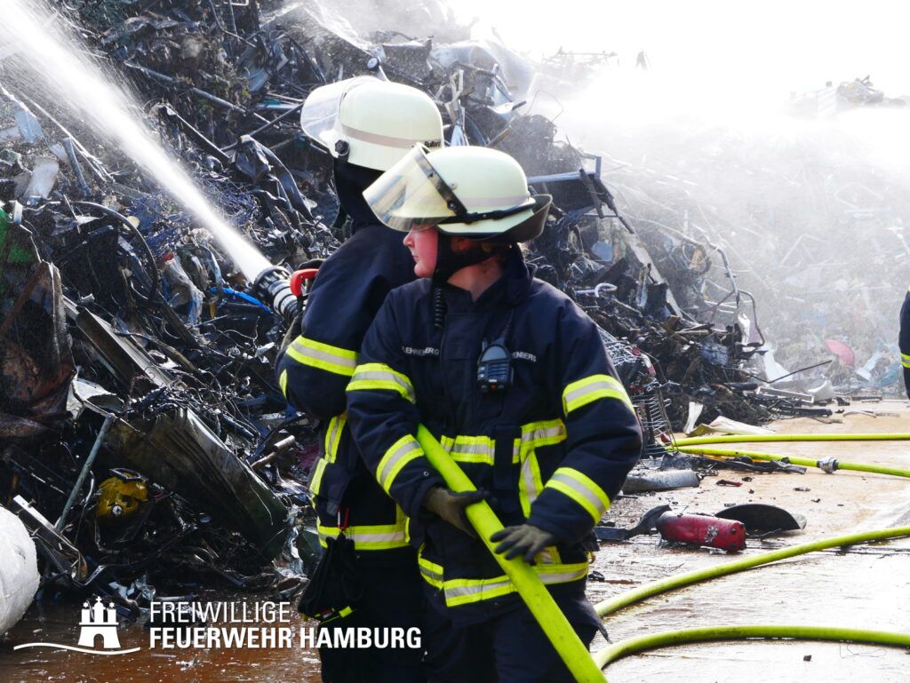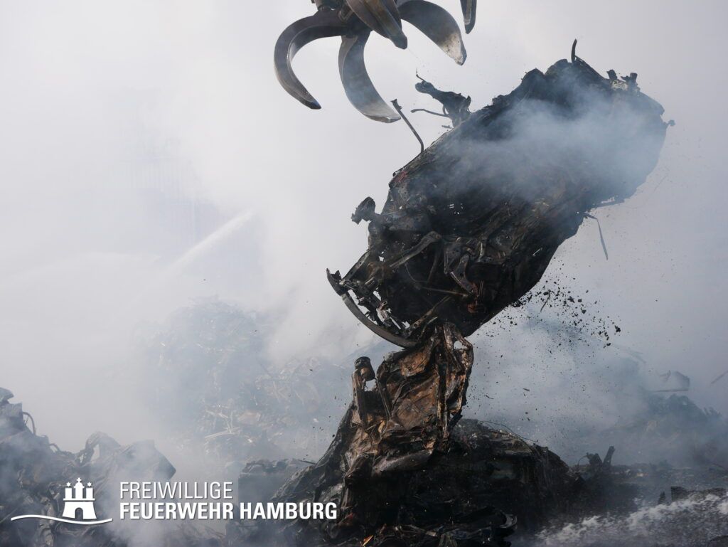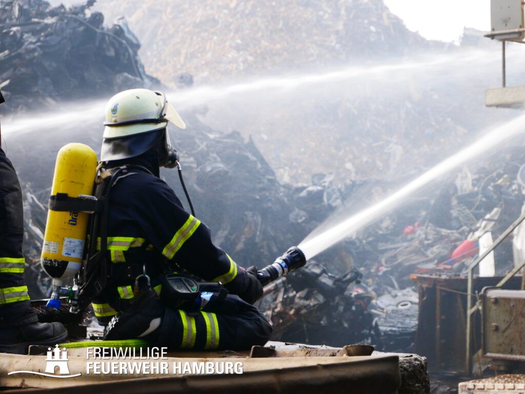 Ein Mitarbeiter meldete über den Notruf der Einsatzzentrale der Feuerwehr Hamburg eine starke Rauchentwicklung auf dem Betriebsgelände einer Firma für Metallschrott. Sofort alarmierte die Einsatzleitzentrale Kräfte der Berufs- und Freiwilliger Feuerwehr.