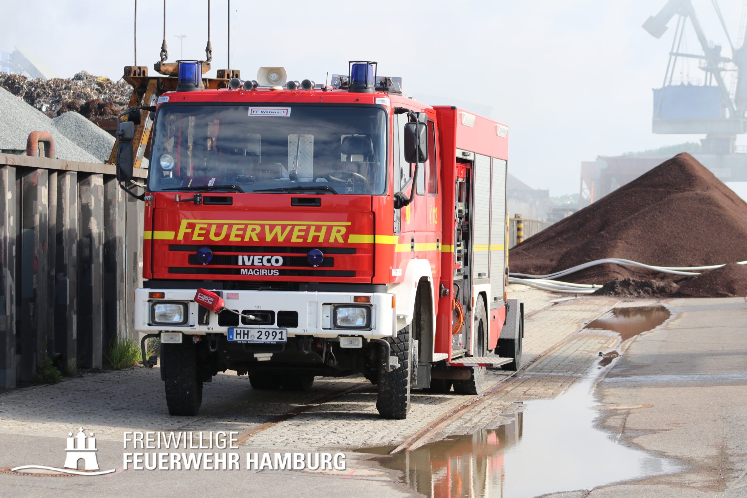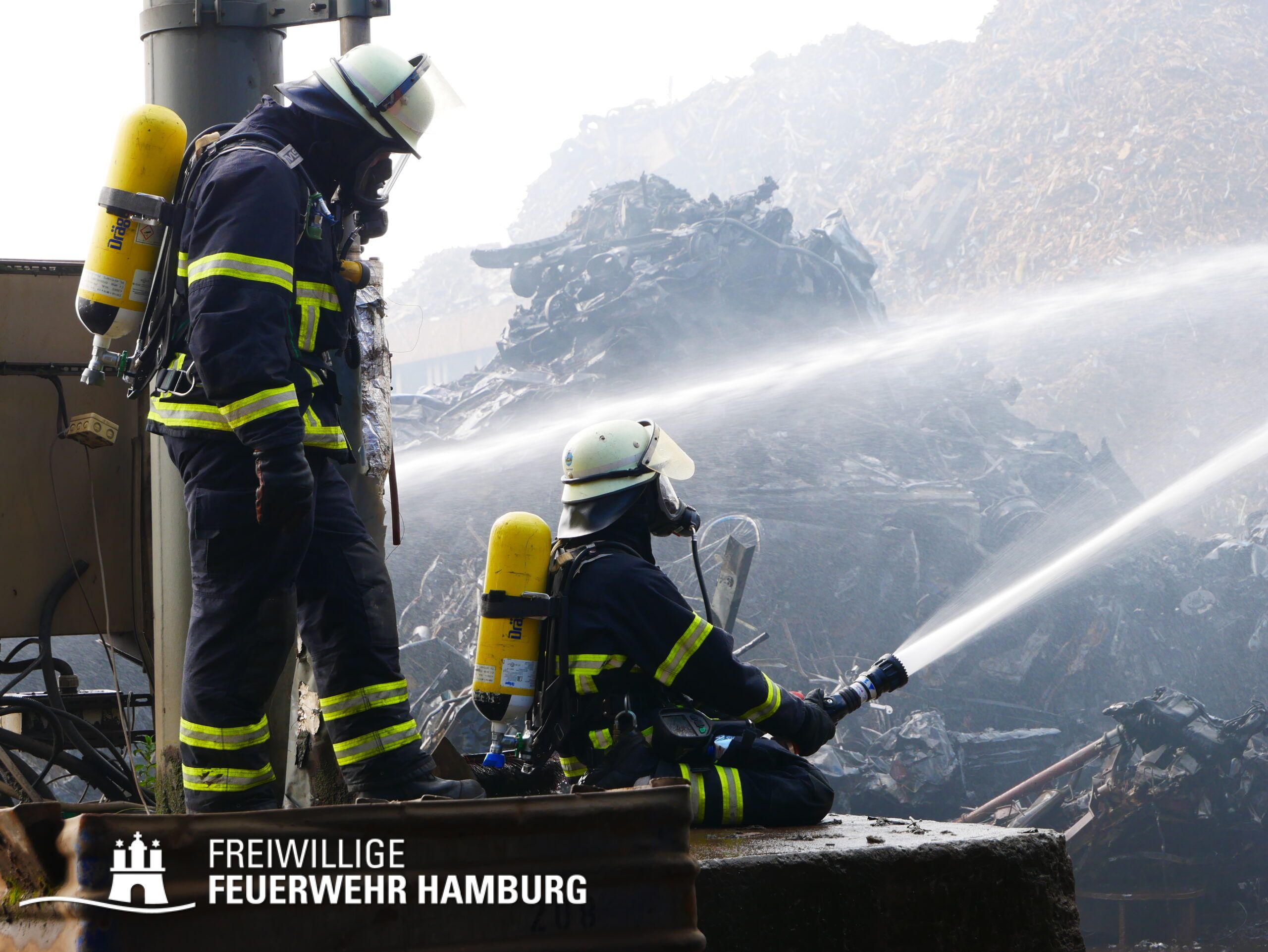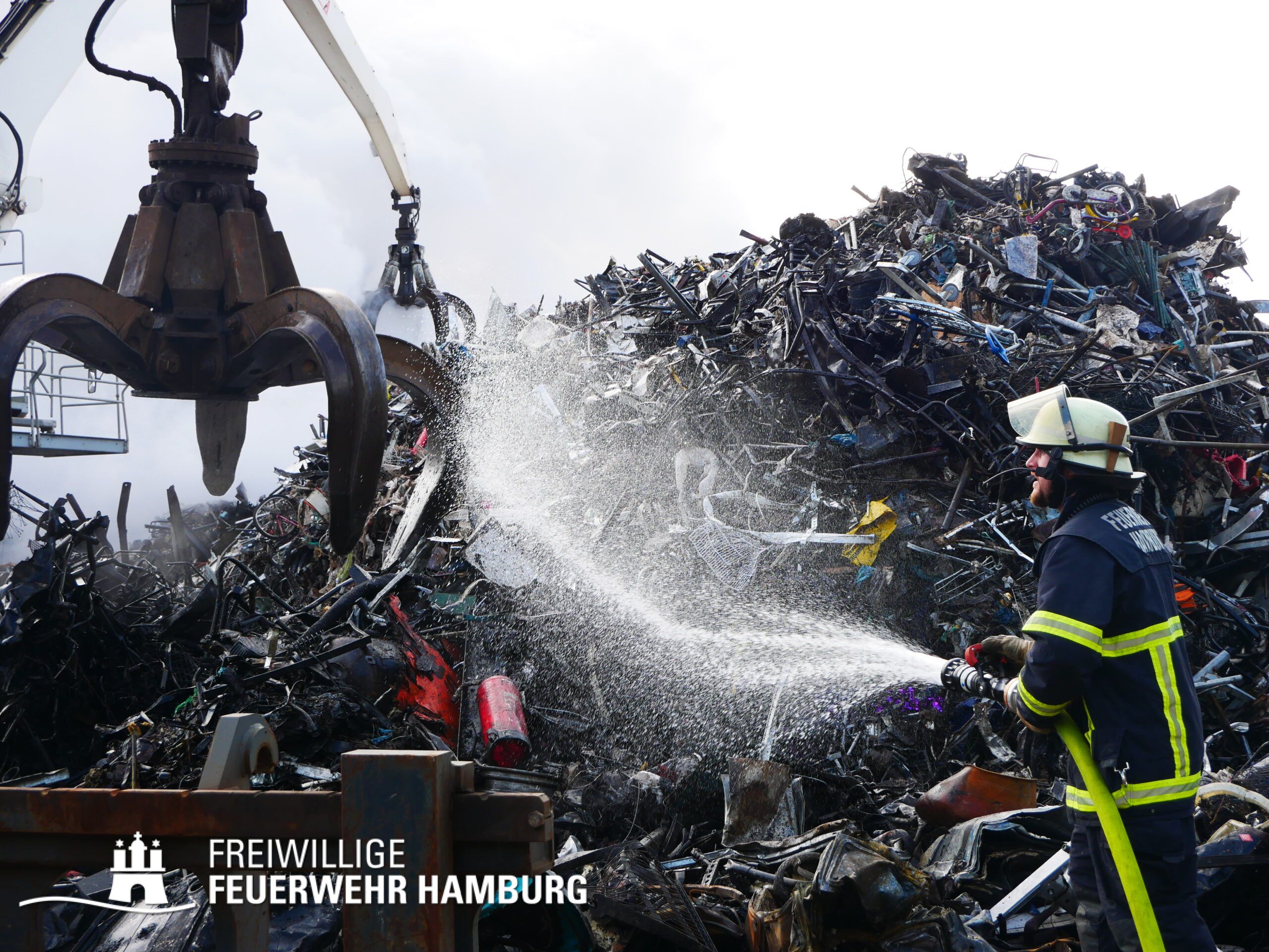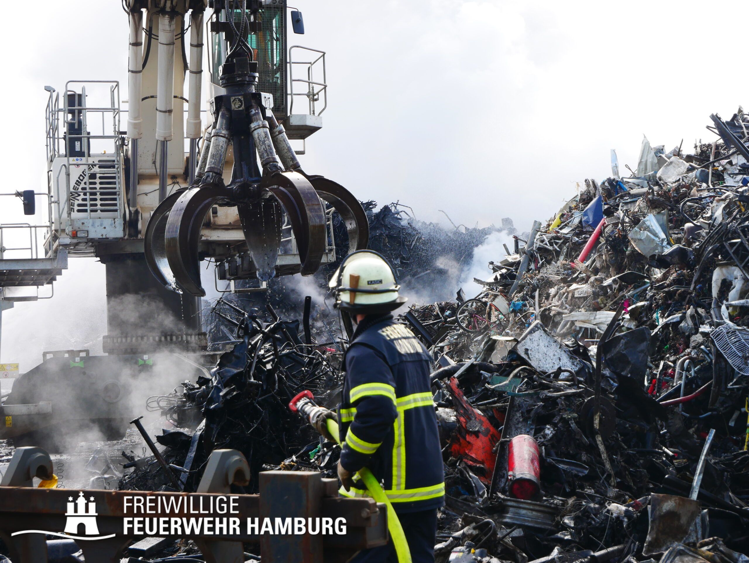 Ein Mitarbeiter meldete über den Notruf der Einsatzzentrale der Feuerwehr Hamburg eine starke Rauchentwicklung auf dem Betriebsgelände einer Firma für Metallschrott. Sofort alarmierte die Einsatzleitzentrale Kräfte der Berufs- und Freiwilliger Feuerwehr.