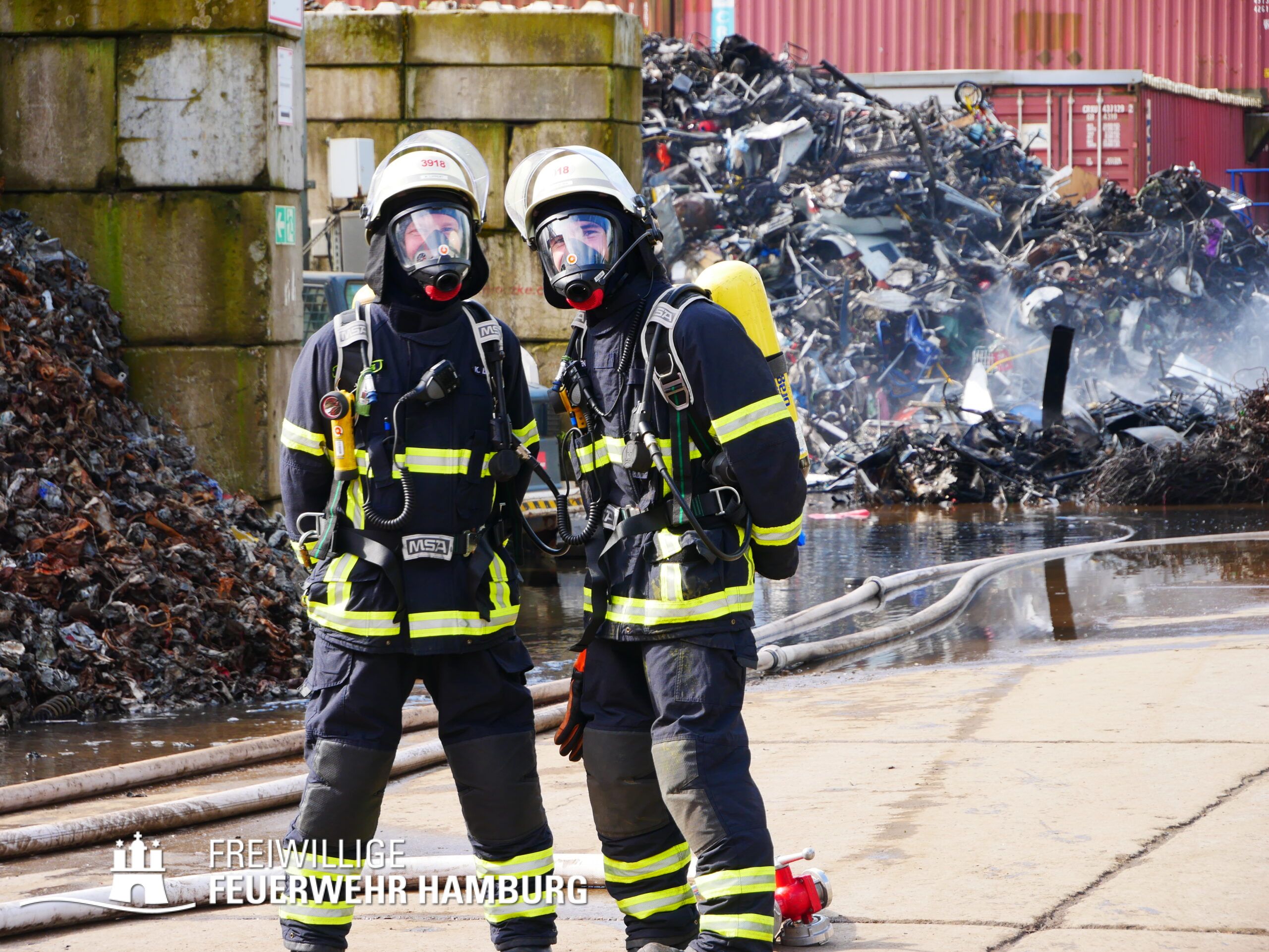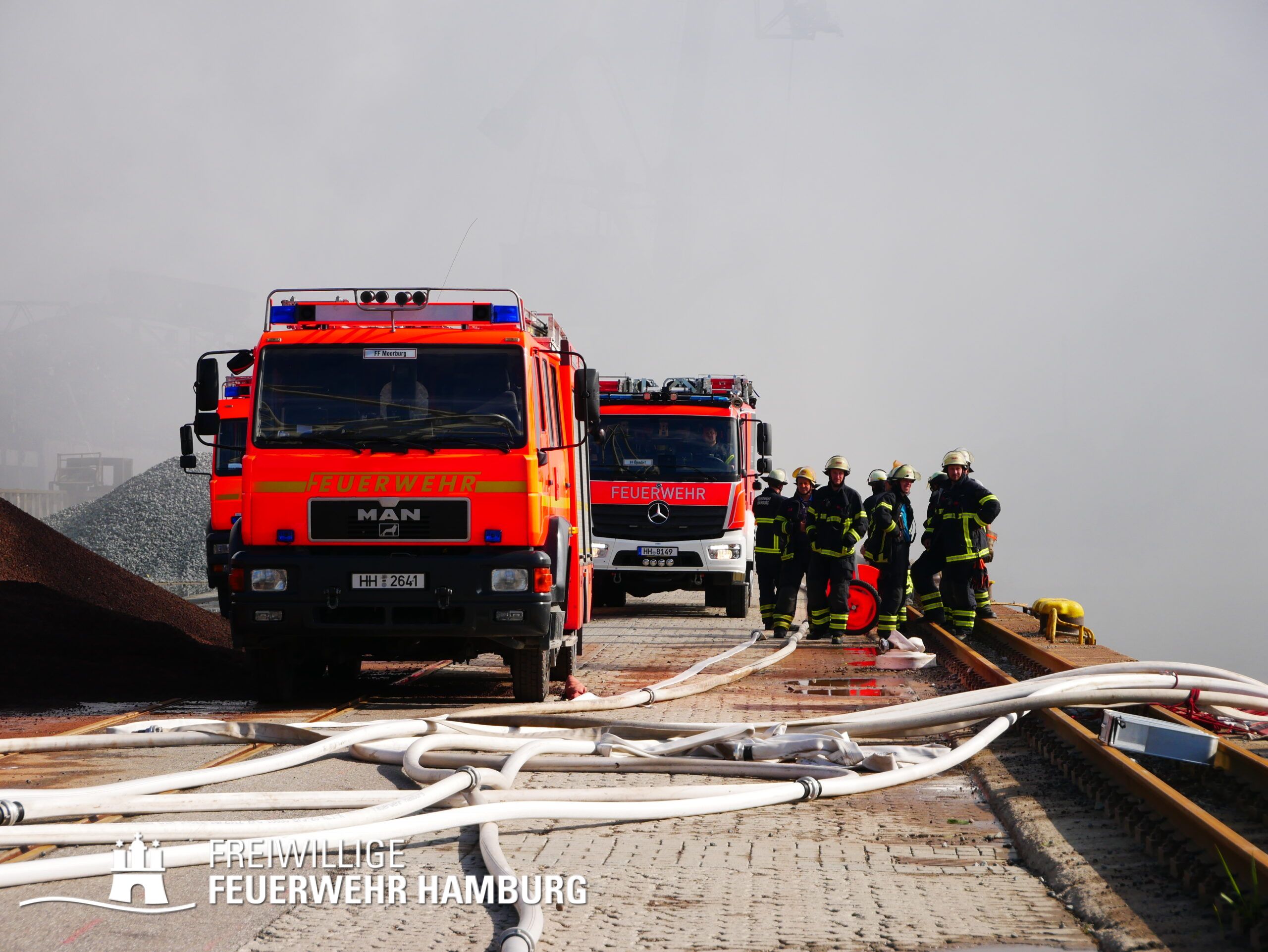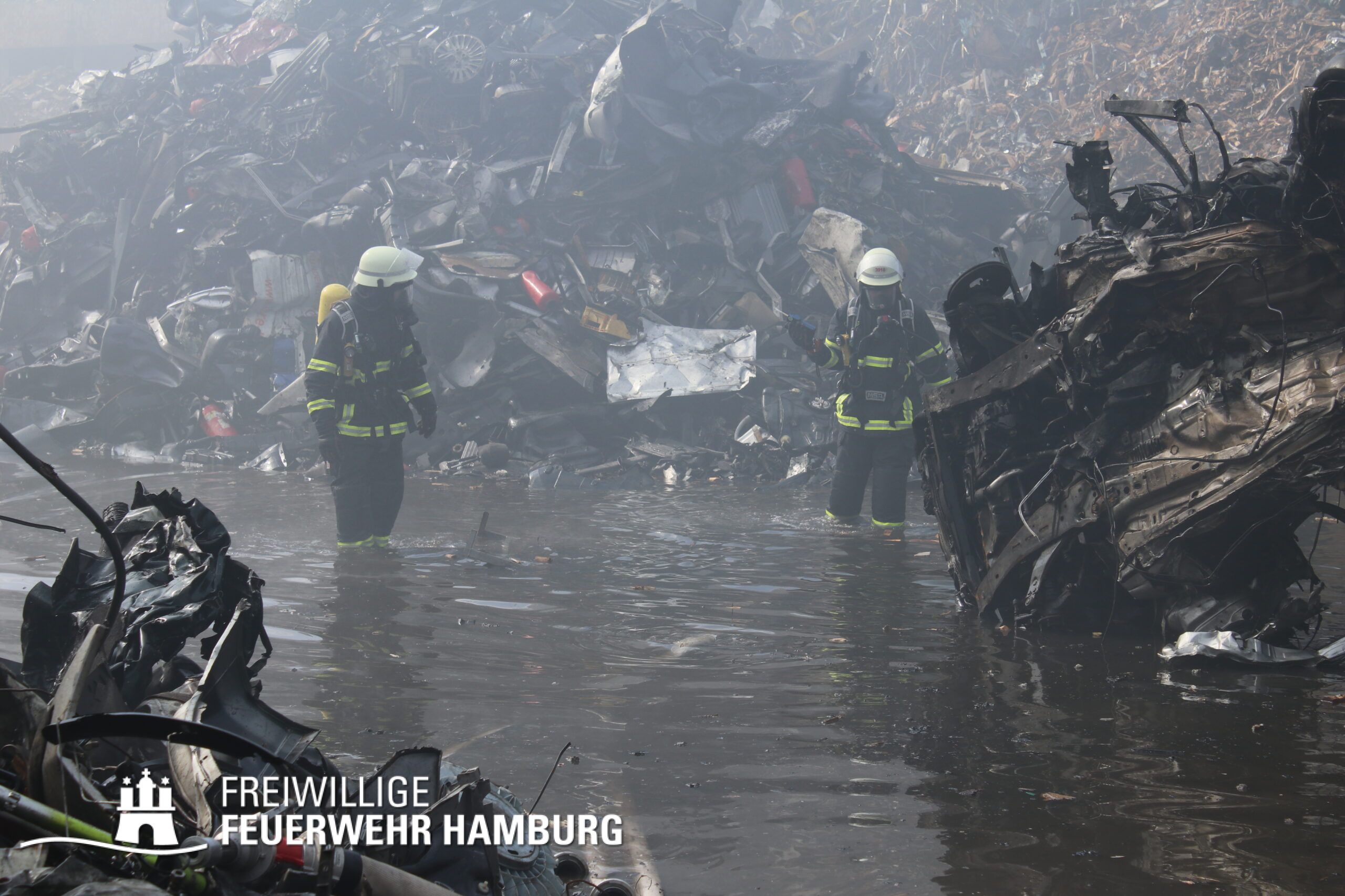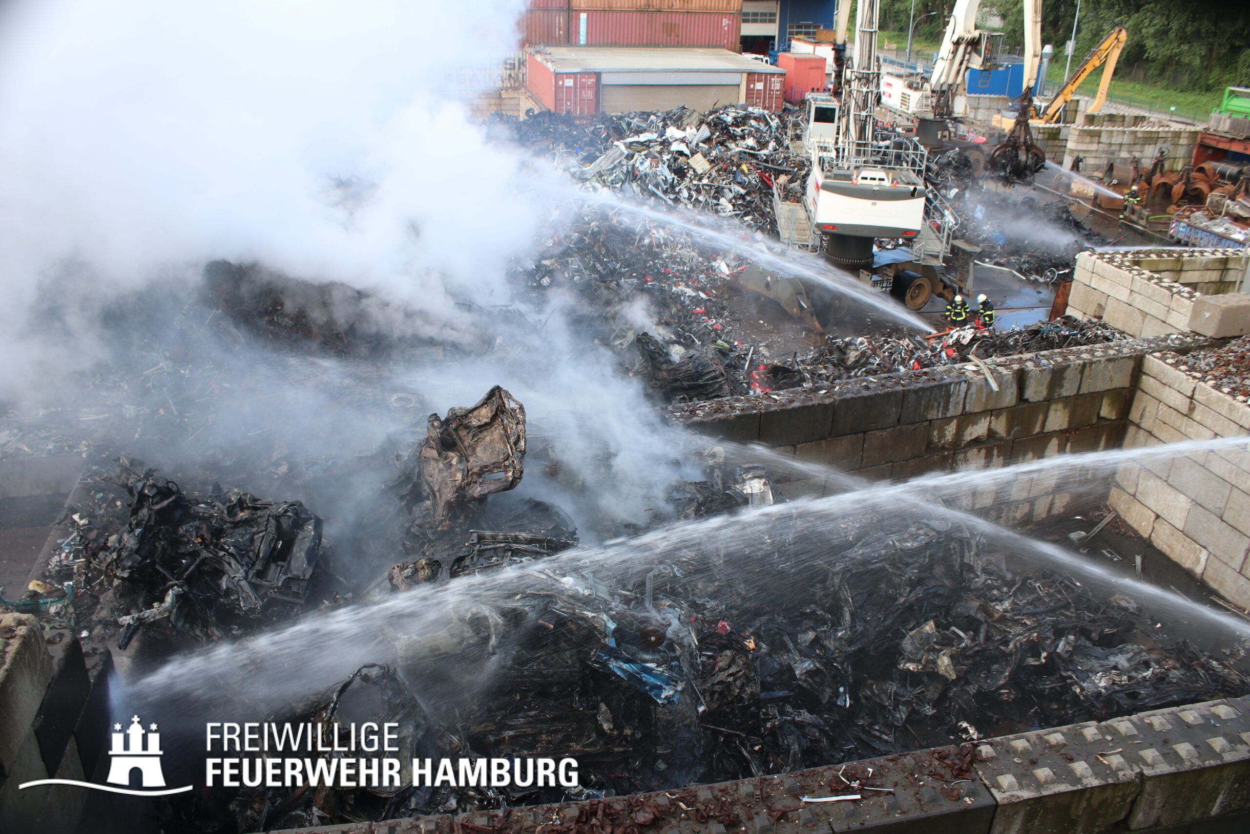 Ein Mitarbeiter meldete über den Notruf der Einsatzzentrale der Feuerwehr Hamburg eine starke Rauchentwicklung auf dem Betriebsgelände einer Firma für Metallschrott. Sofort alarmierte die Einsatzleitzentrale Kräfte der Berufs- und Freiwilliger Feuerwehr.